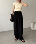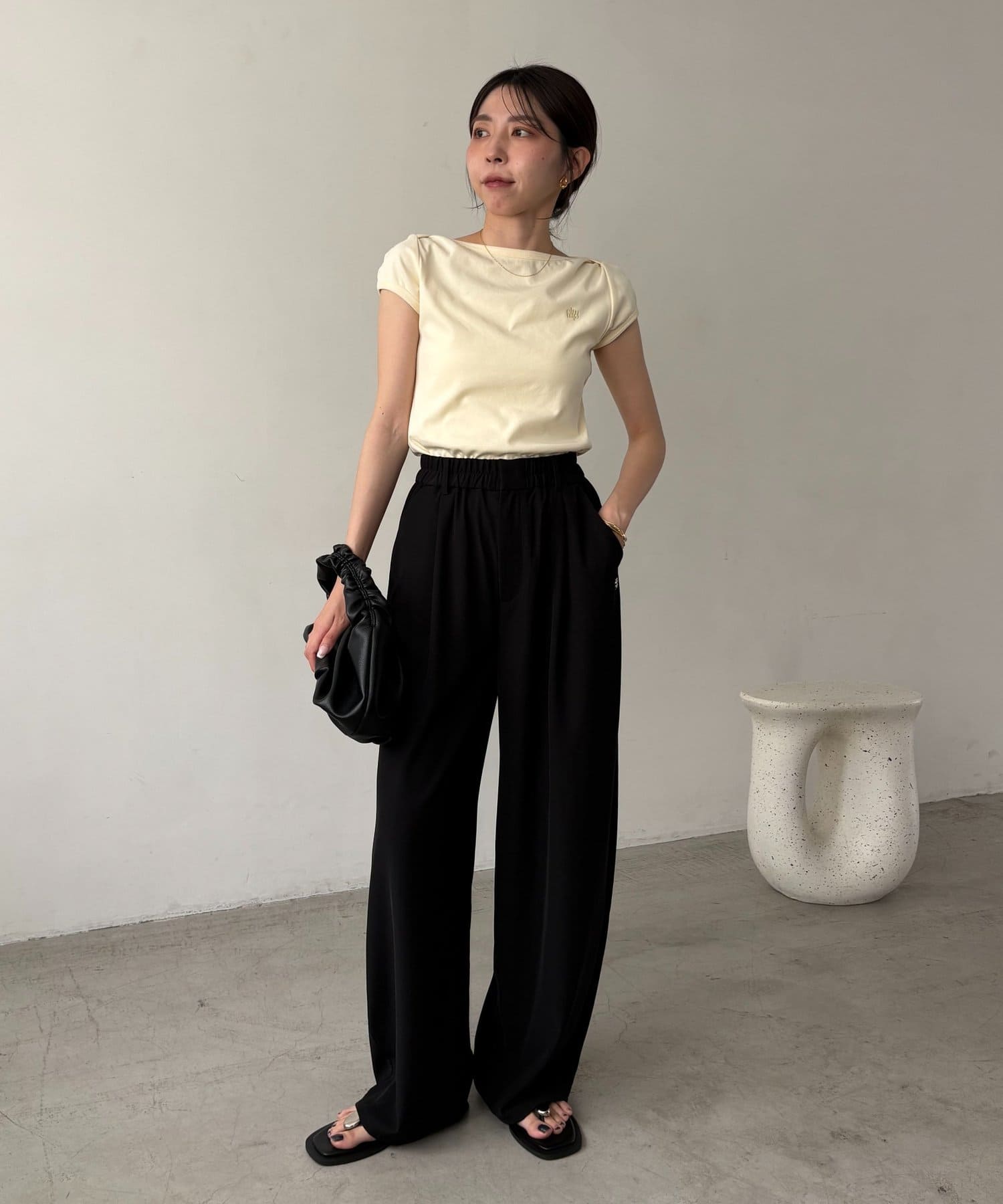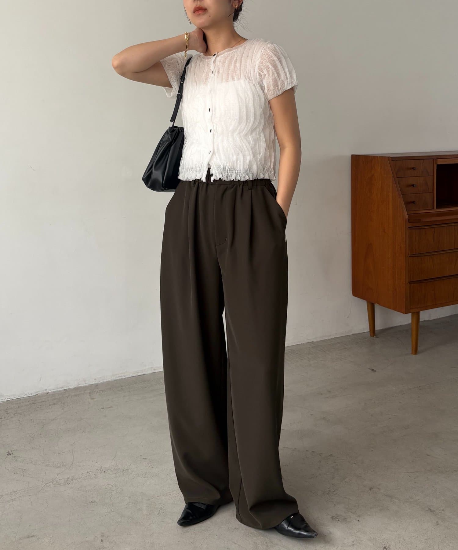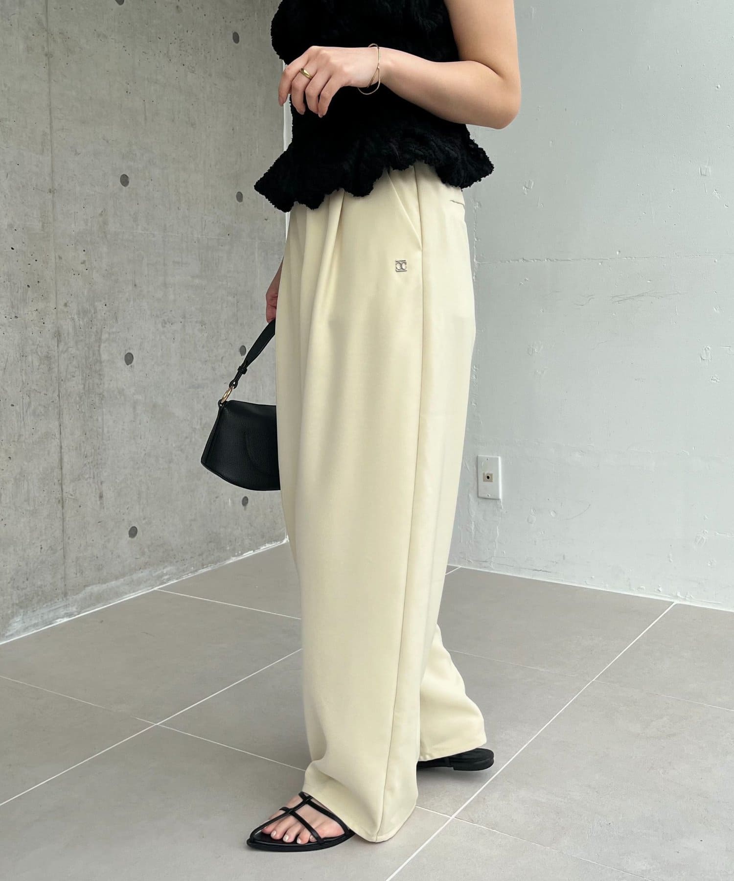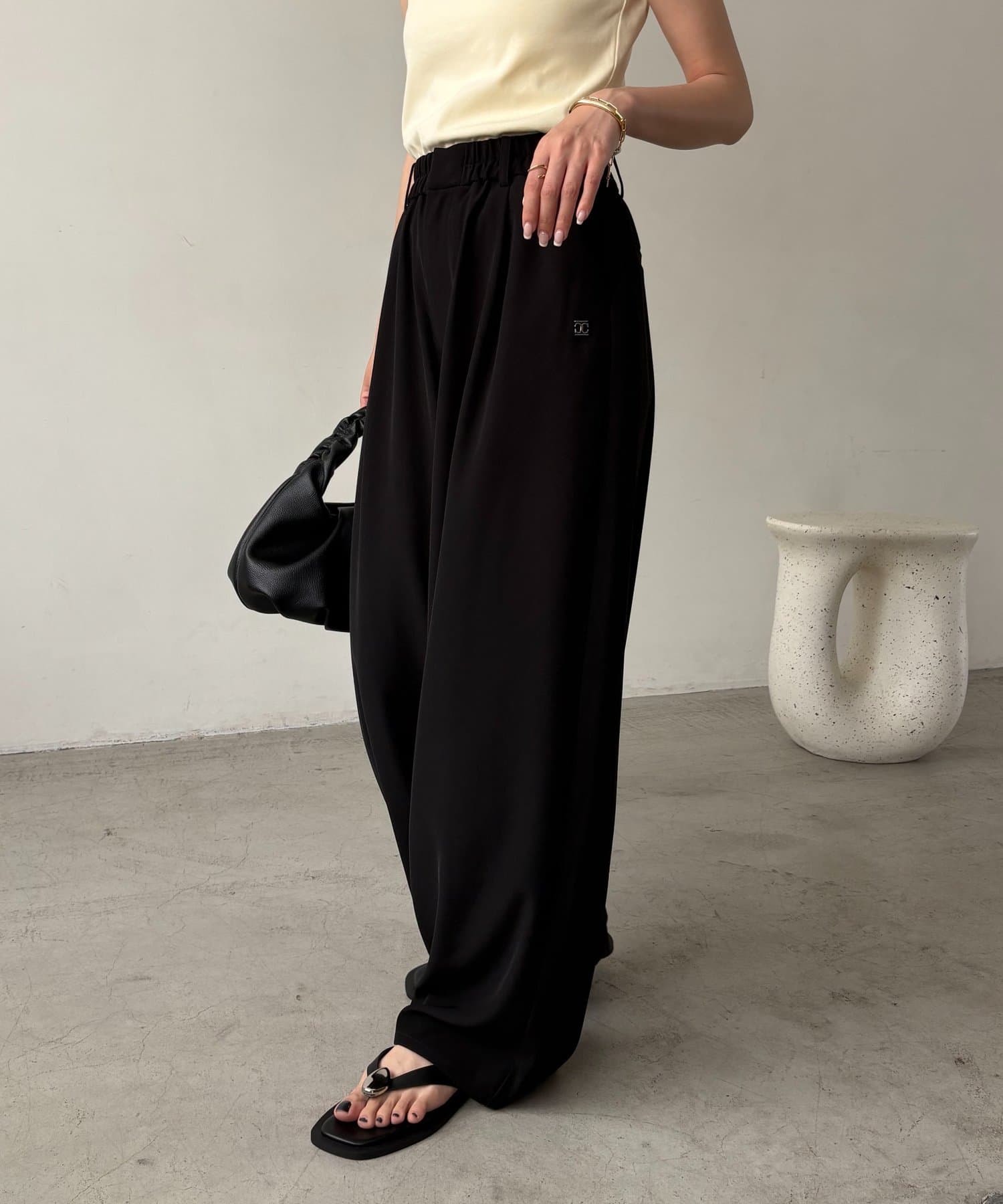 ニュアンスカラーで魅せる、落ち感ワイドパンツ