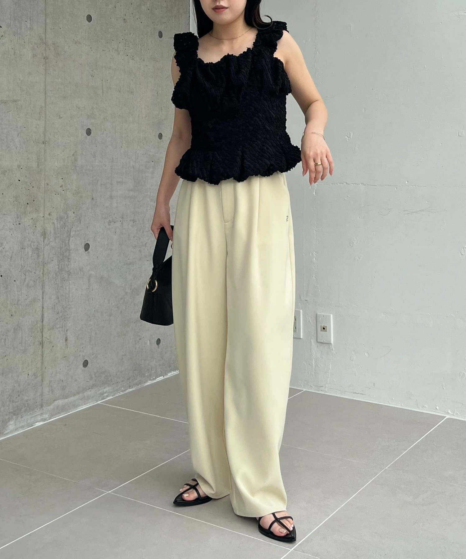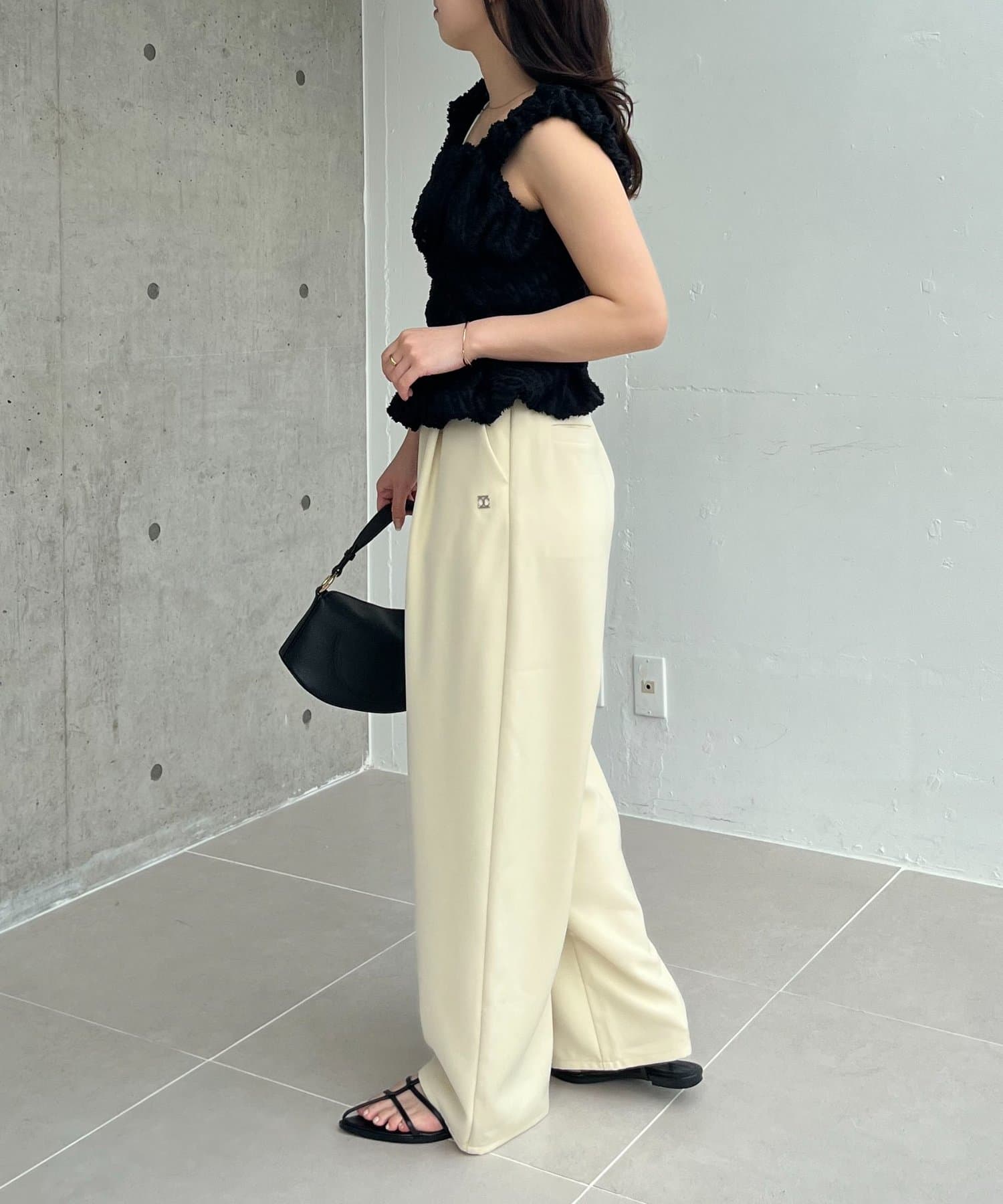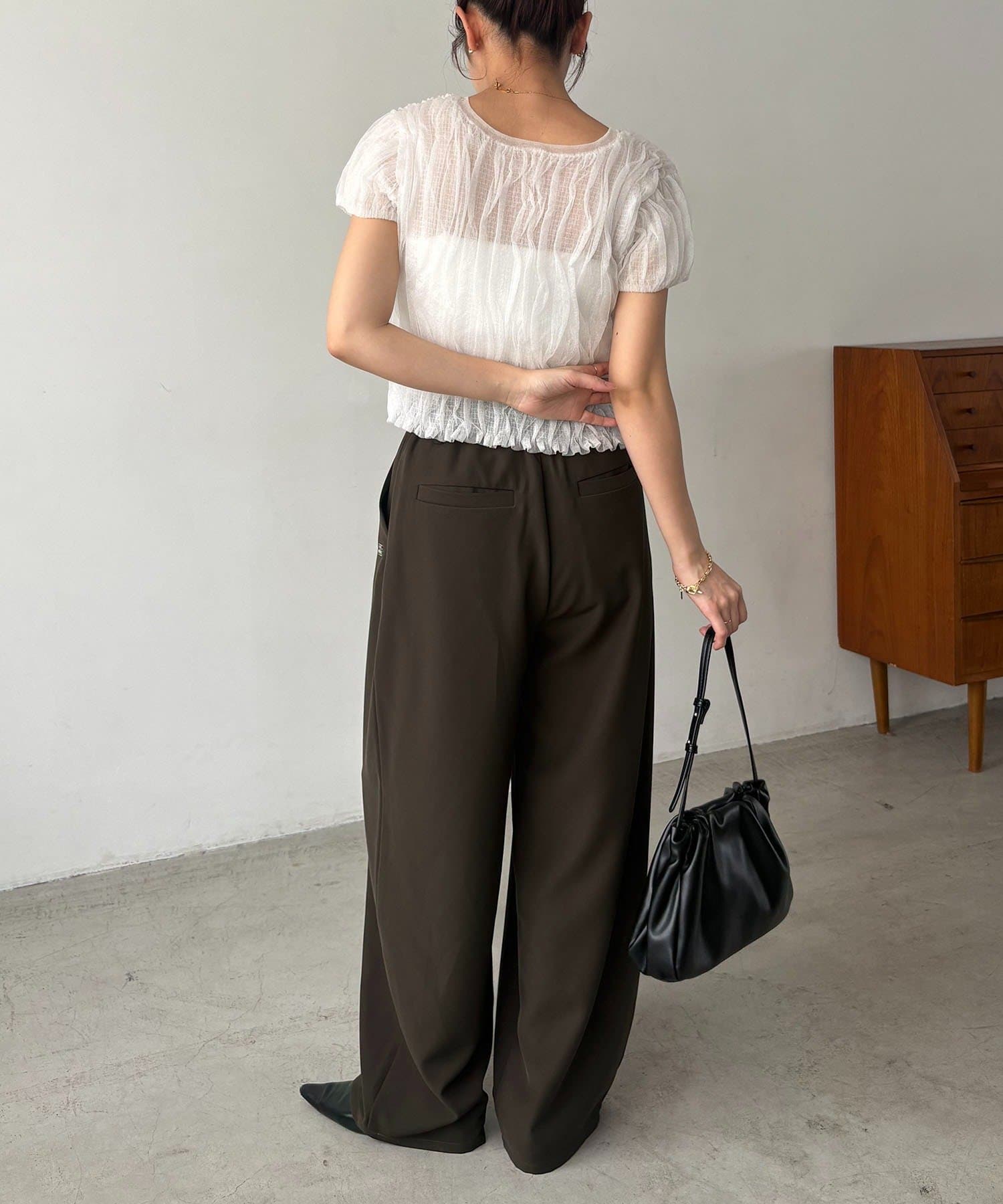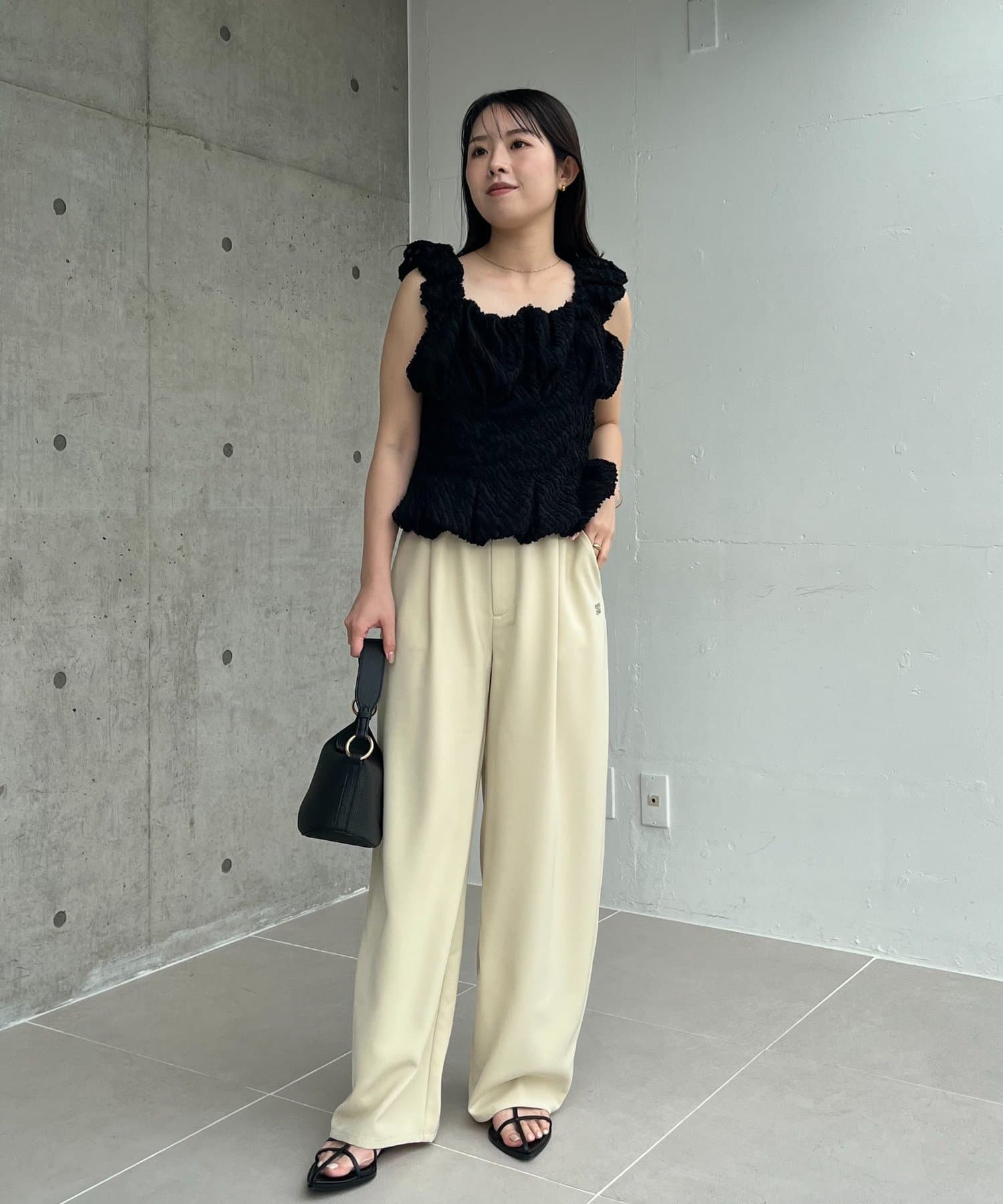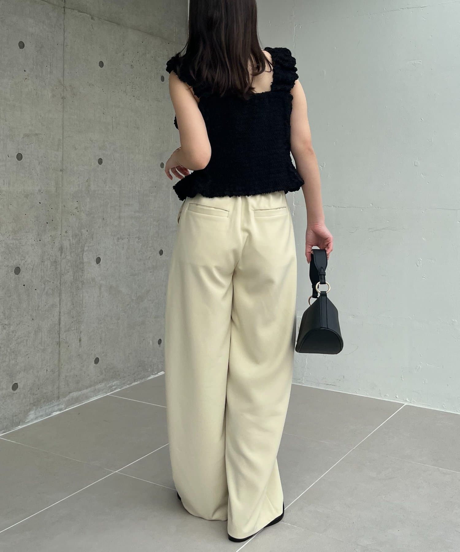 ニュアンスカラーで魅せる、落ち感ワイドパンツ