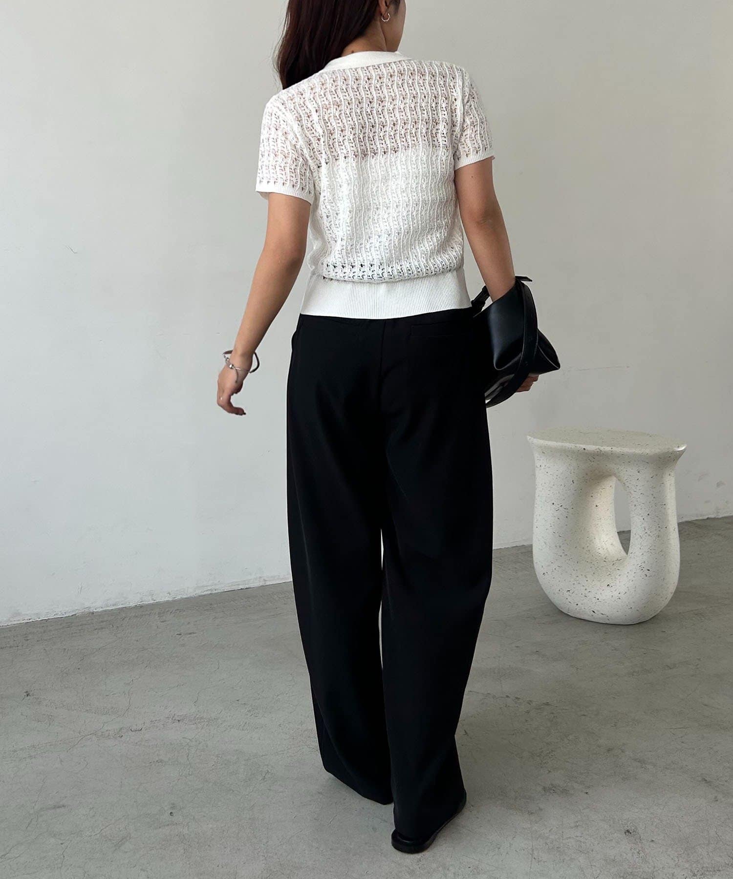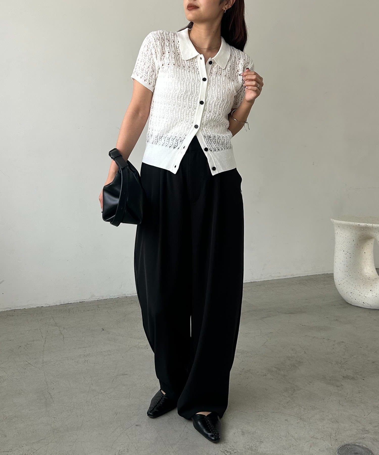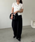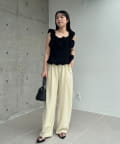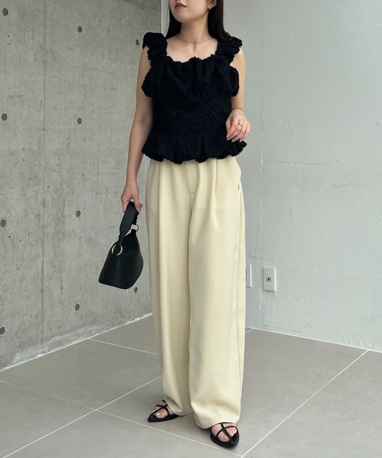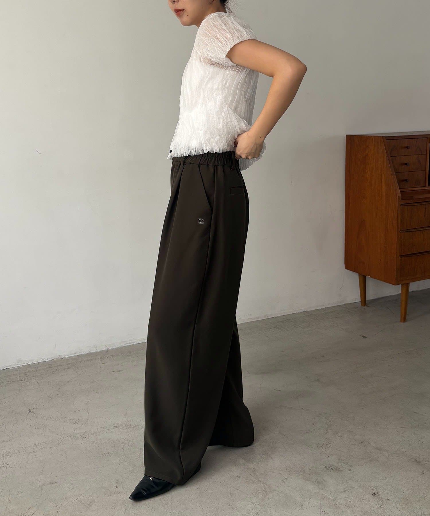 ニュアンスカラーで魅せる、落ち感ワイドパンツ