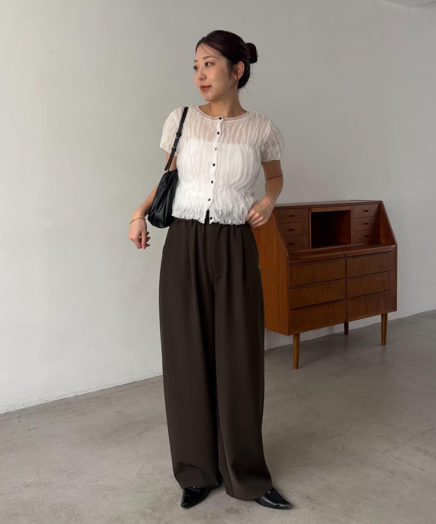 【ブラウン着用アイテム①】シャーリング半袖カーディガン