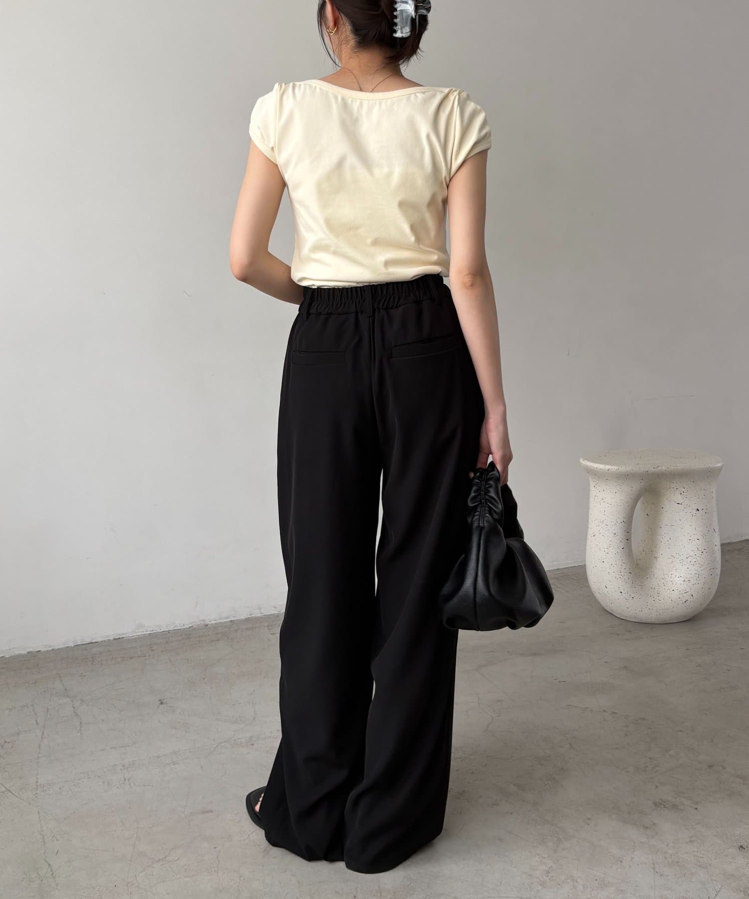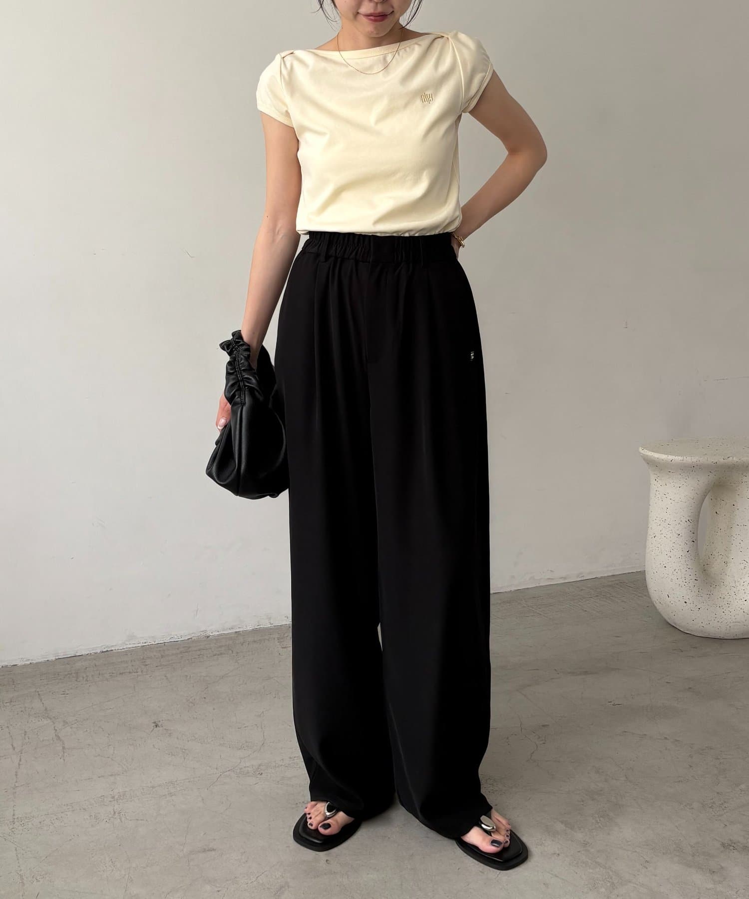 【ブラック着用アイテム①】【Tシャツが苦手な方にも◎】1ポイントボートネックTシャツ