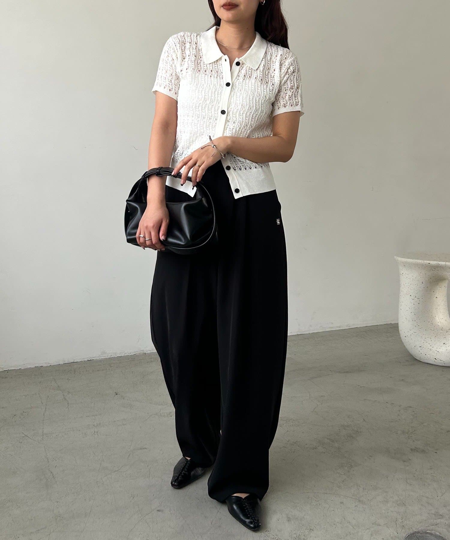 ・シワになりにくい素材感なので、長時間のデスクワークや移動が多い日、旅行シーンにも最適