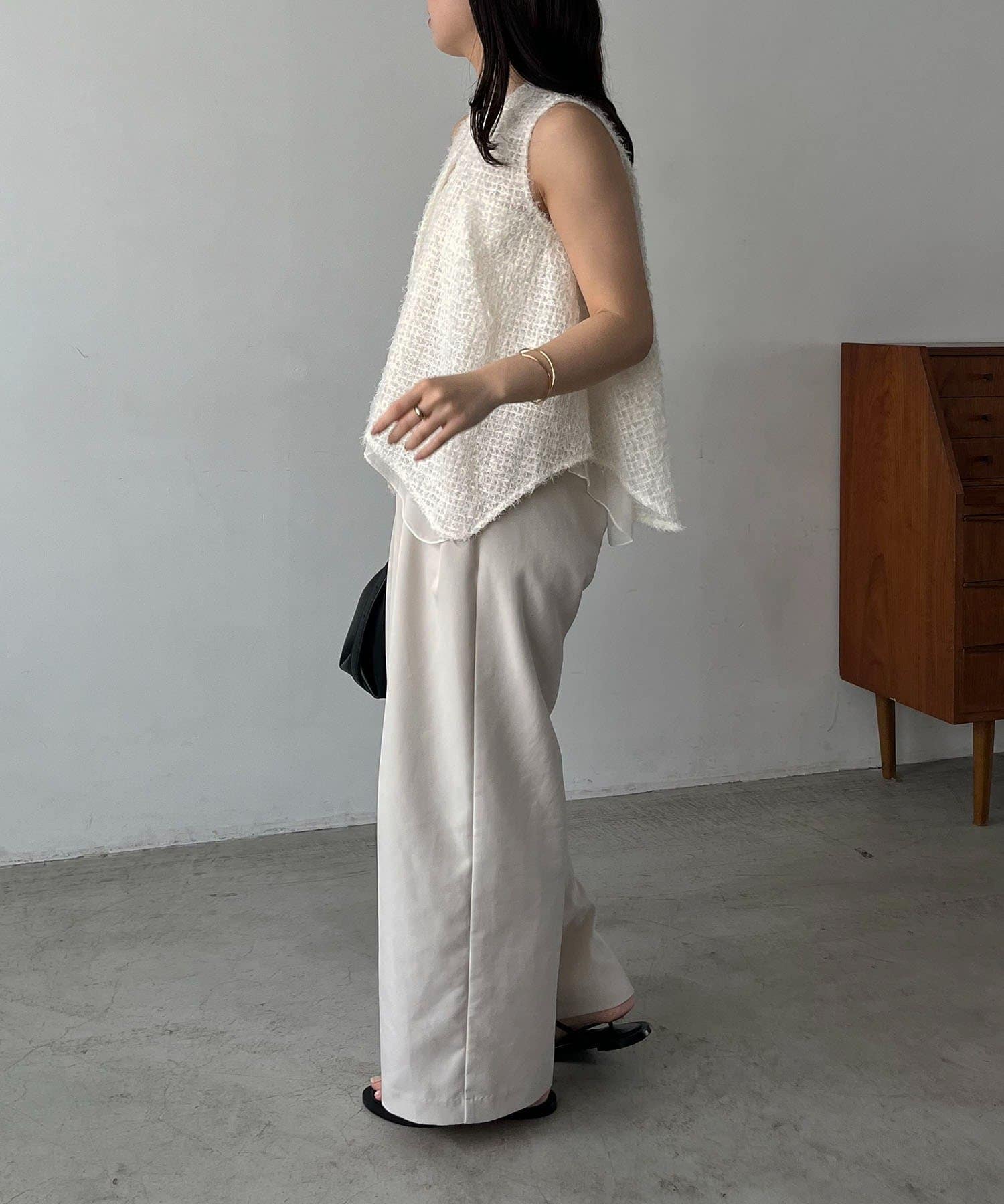 ・肩の開いたアメスリデザインは、腕をすっきりと華奢に見せる効果抜群◎