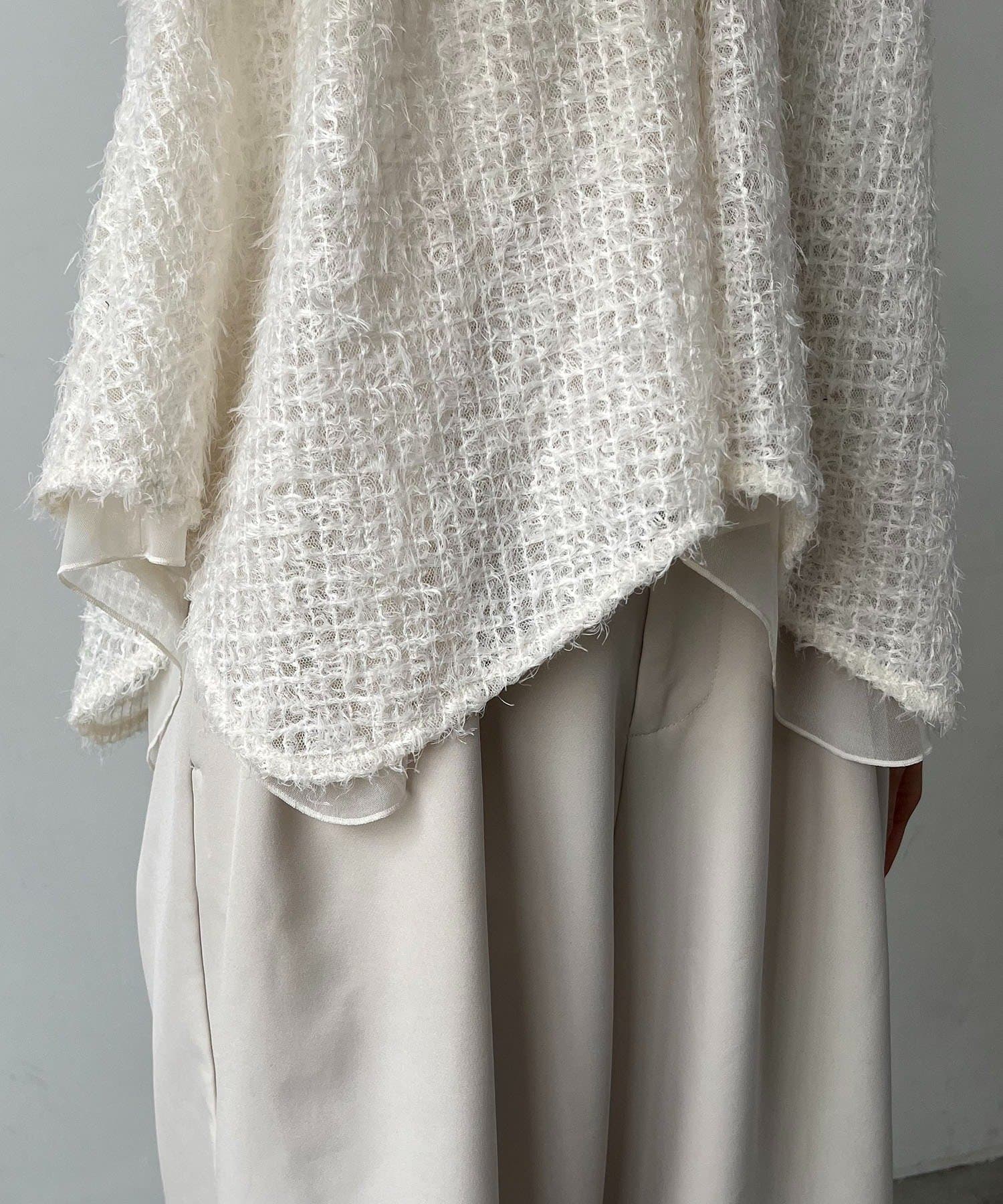※デリケートな素材を使用しているため、摩擦や繰り返しの着用・クリーニングにより、毛羽立ちや毛抜けが生じる場合があります。過度な摩擦はお避けいただき、ローテーションでの着用と、取扱い表示に従ったお手入れをお願いいたします。