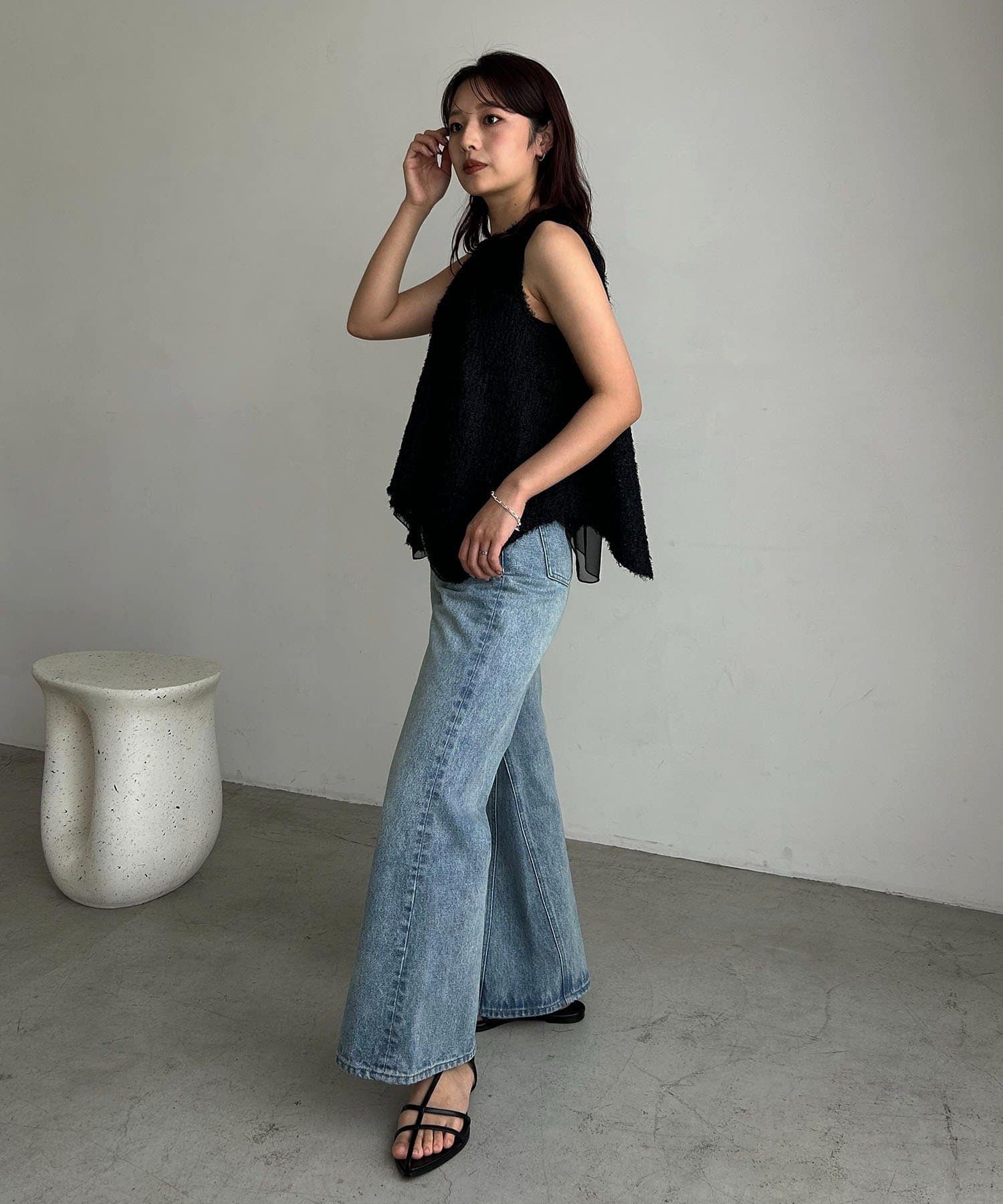 【ブラック着用アイテム】【低身長サイズあり】セミフレアデニム