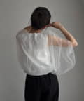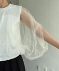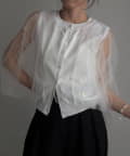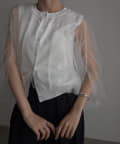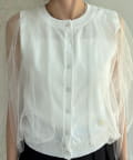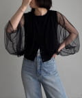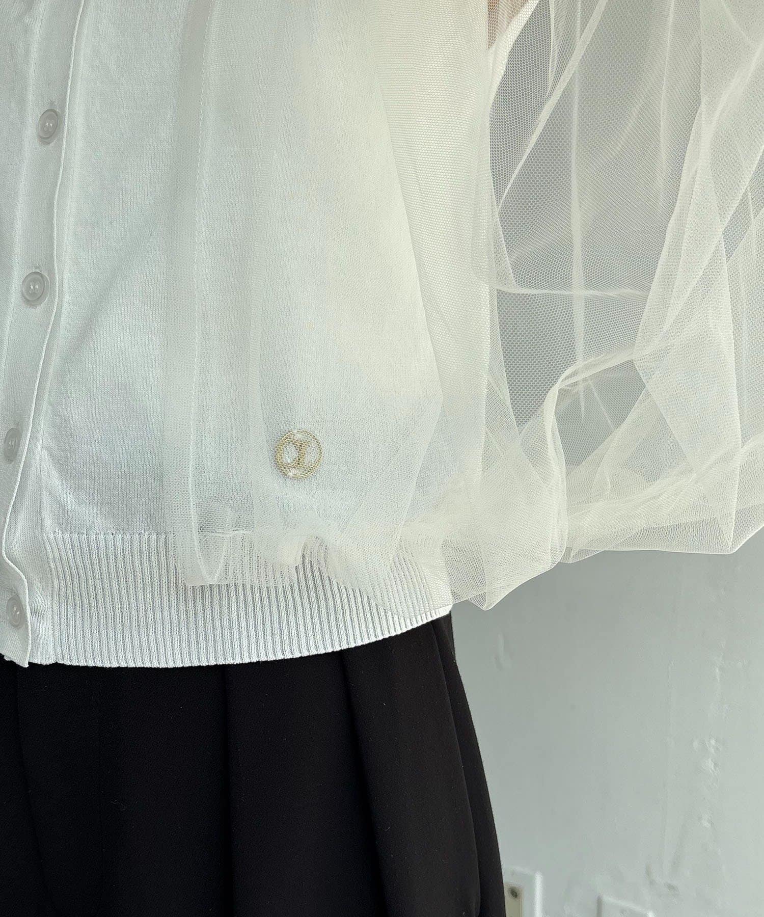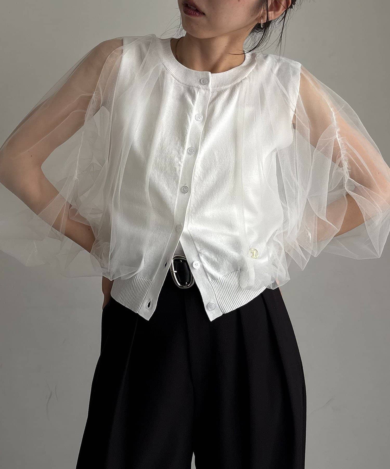 ・ノースリーブの綿ニットをベースに、たっぷりとボリュームを持たせたチュールを重ねた、クラス感溢れる一着。