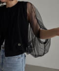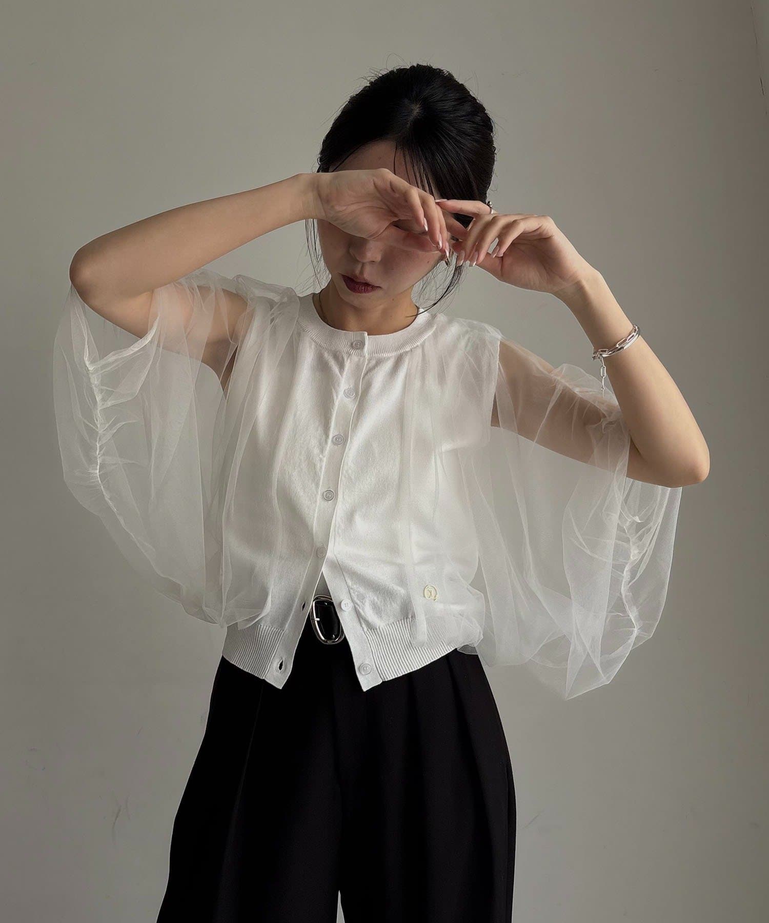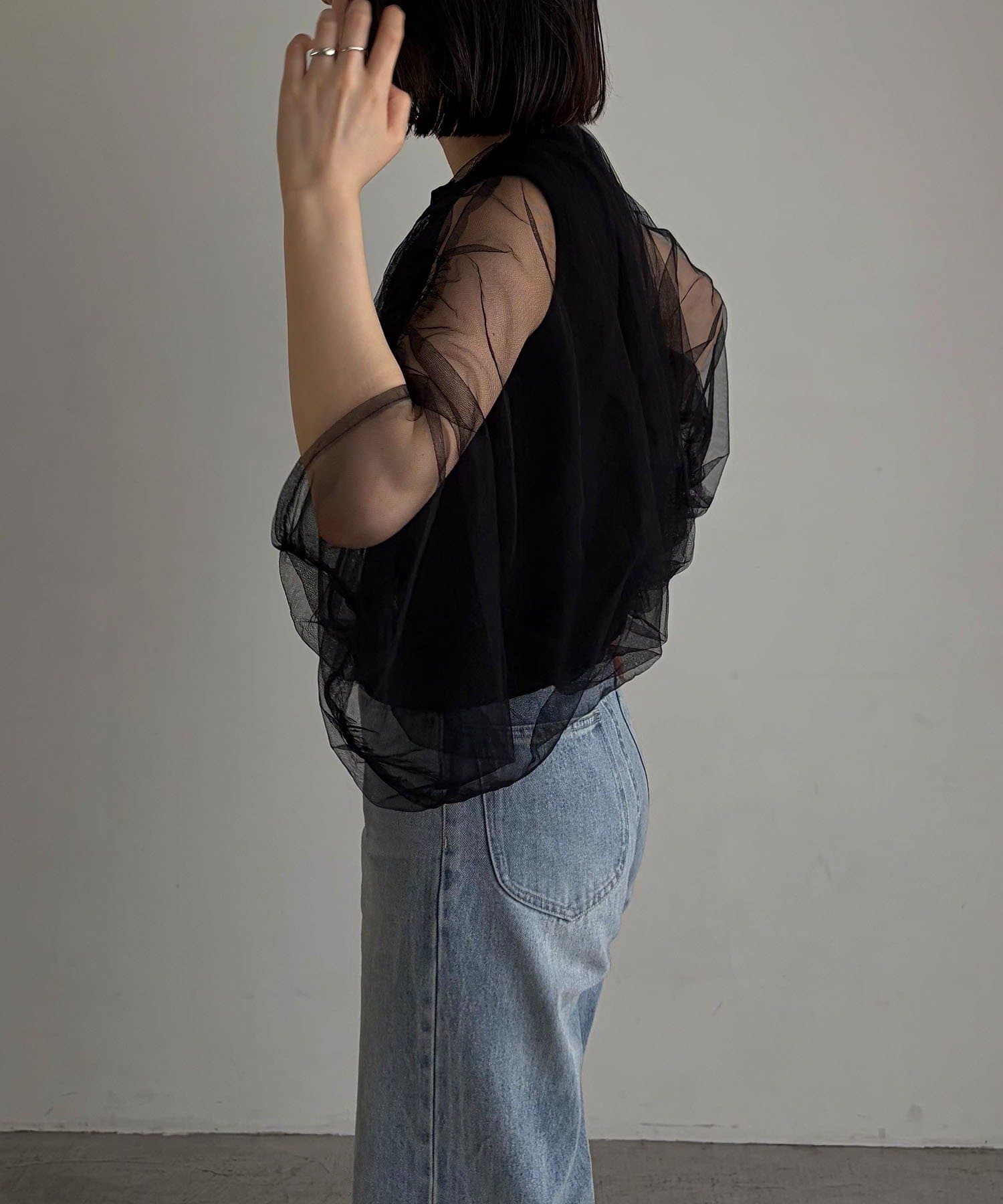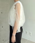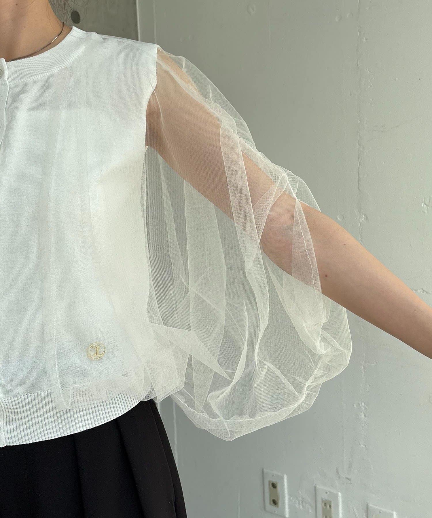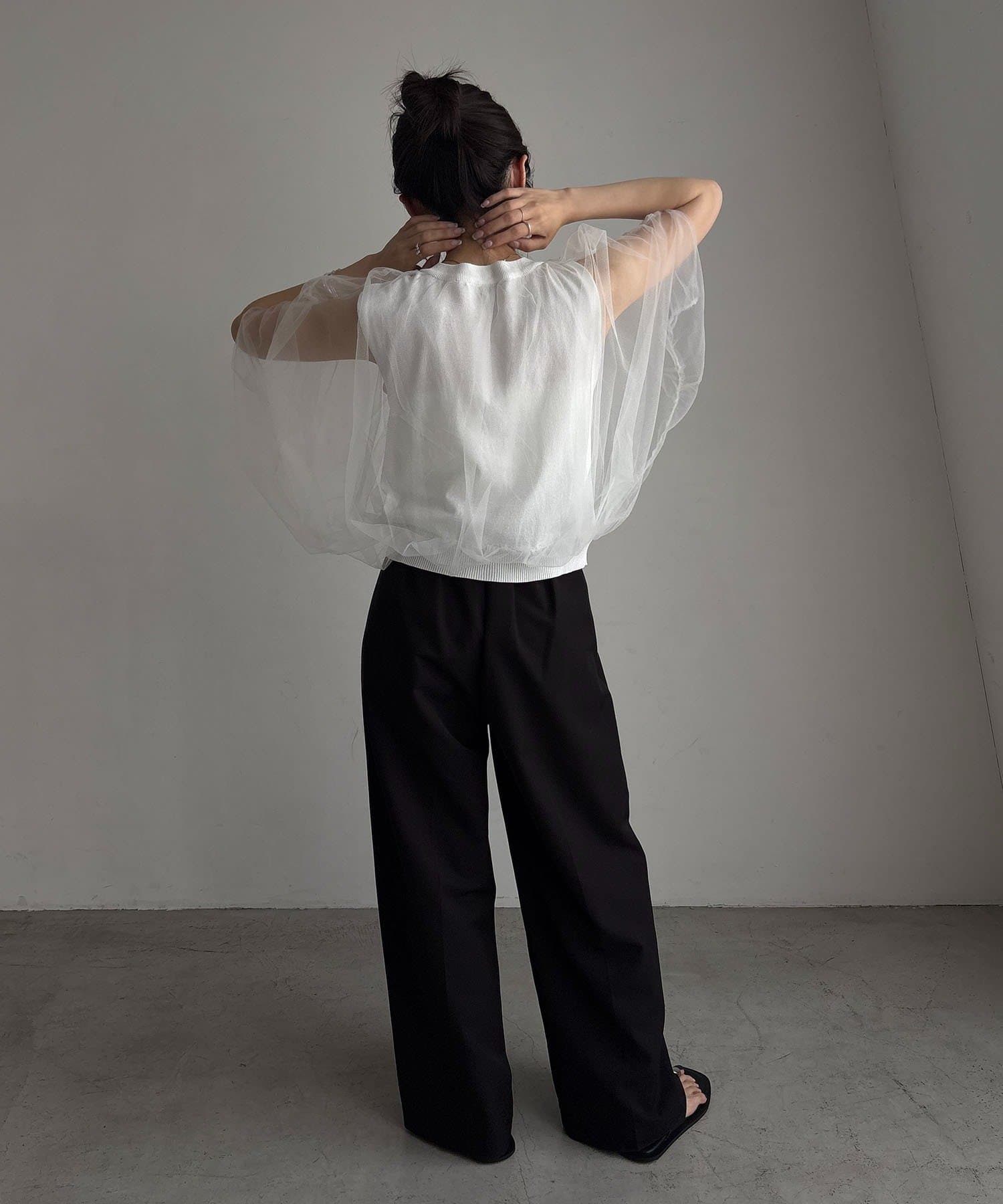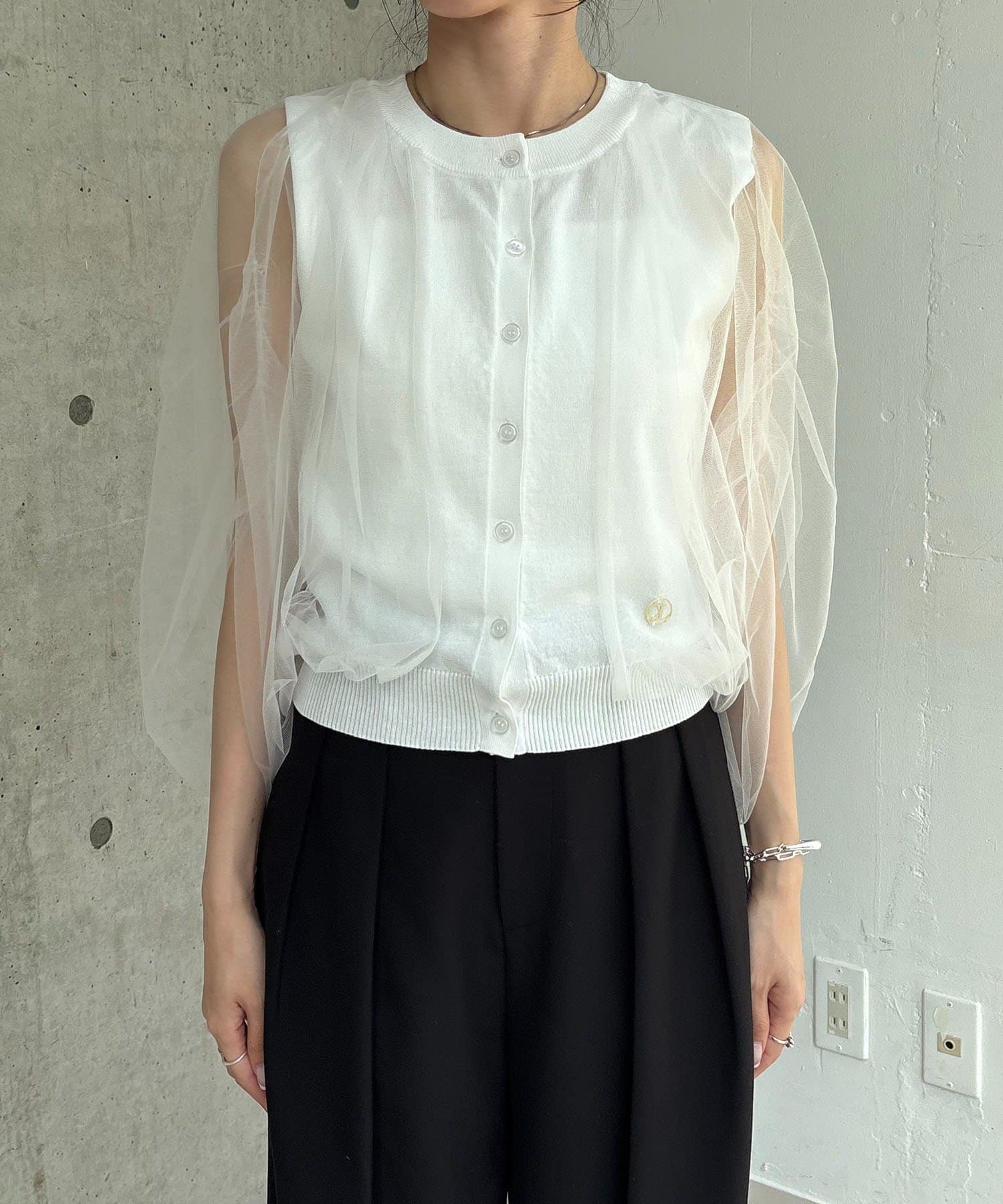 TOP > CAPRICIEUX LE'MAGE > レディース > トップス > Tシャツ/カットソー > 【二の腕カバー◎】〈C.L〉チュールレイヤードノースリニット