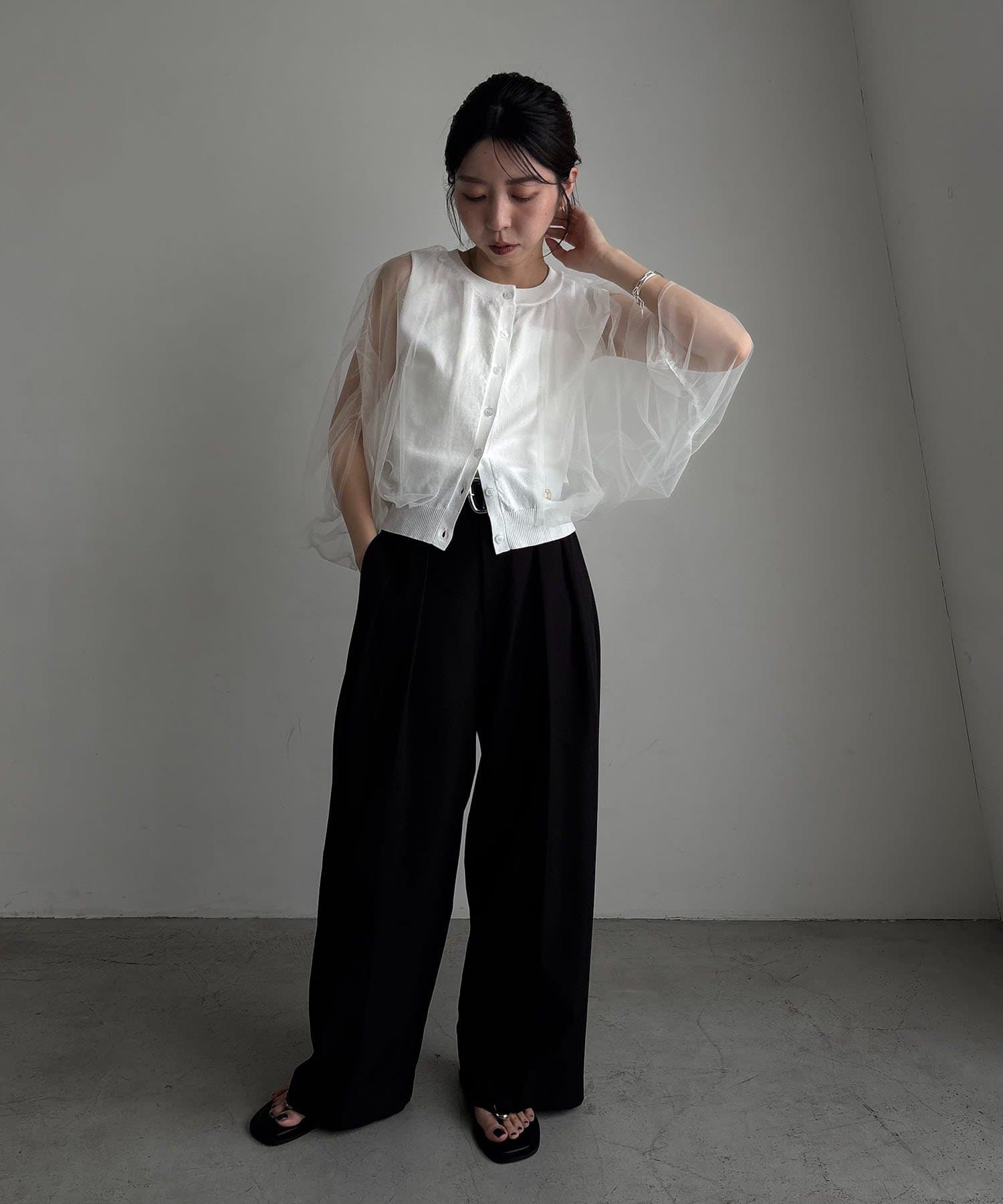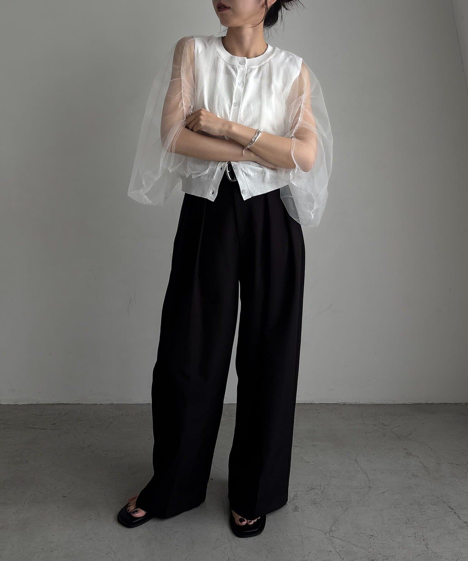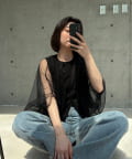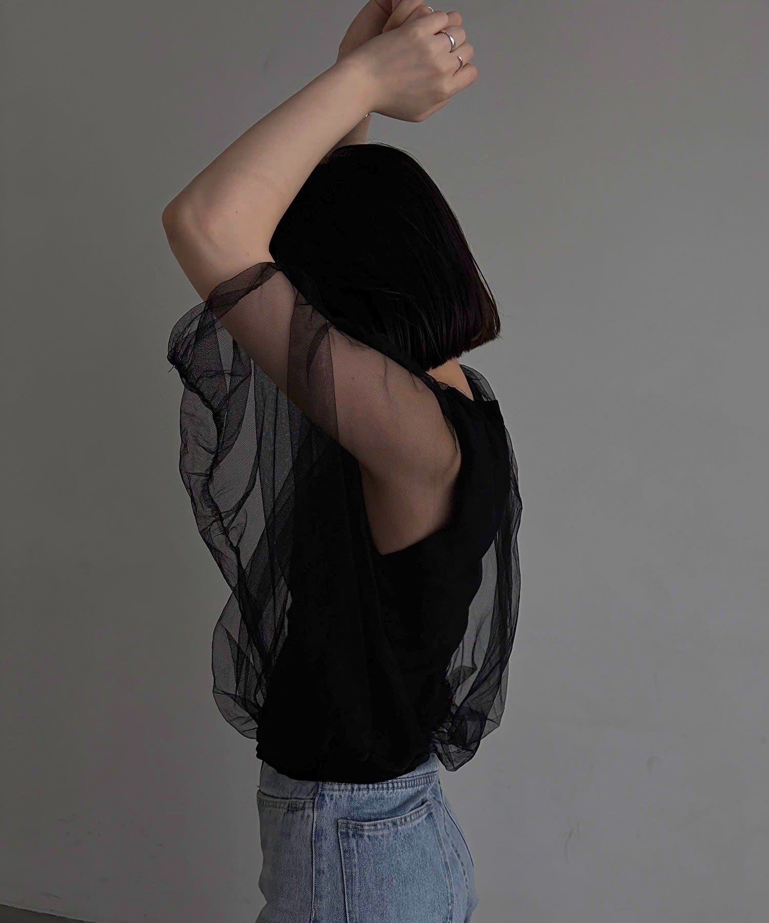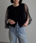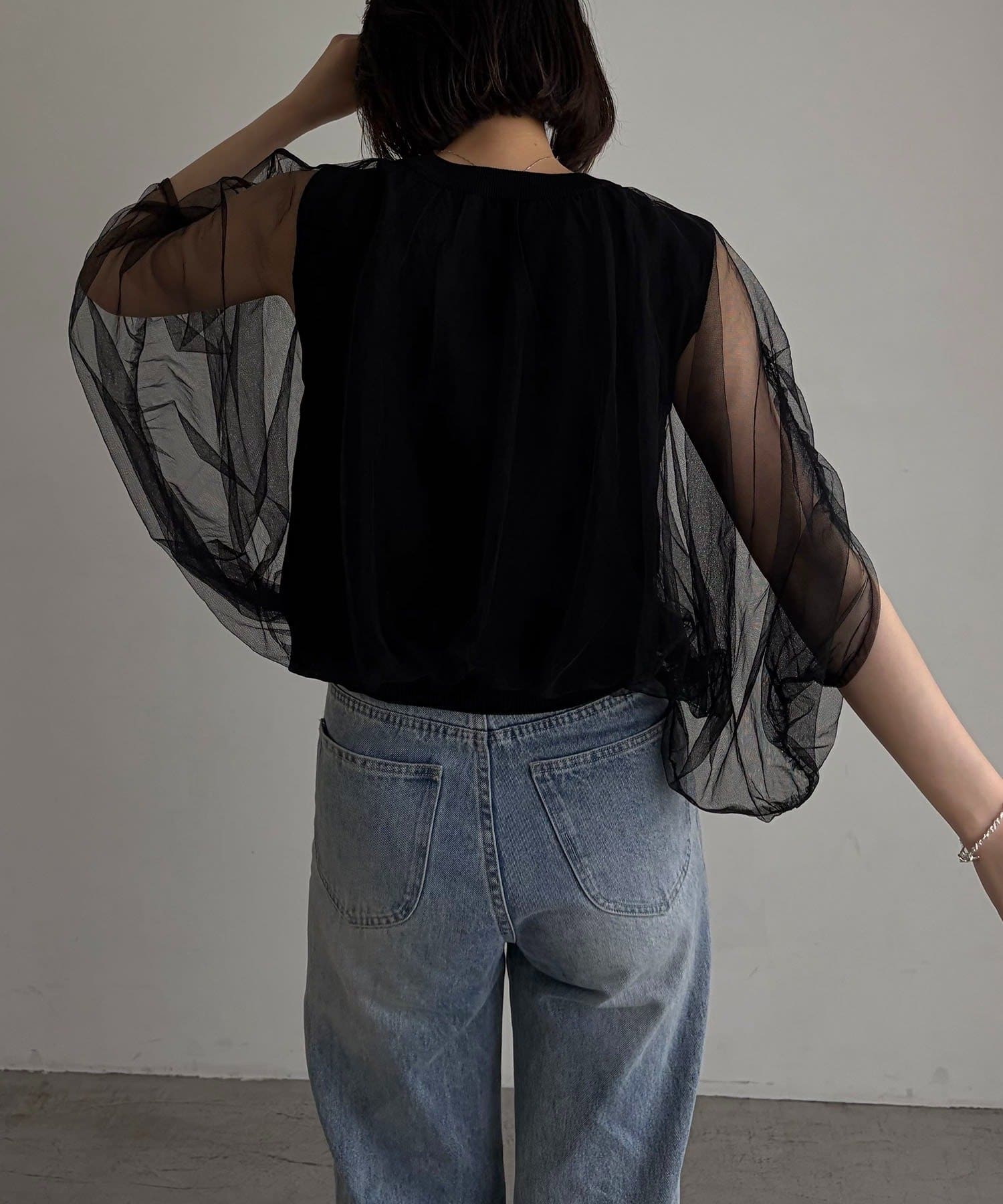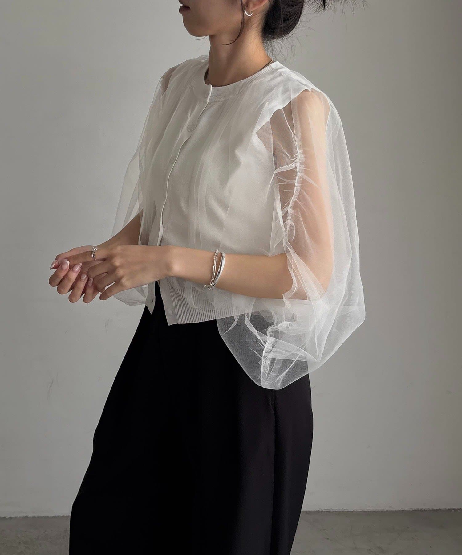 TOP > CAPRICIEUX LE'MAGE > レディース > トップス > Tシャツ/カットソー > 【二の腕カバー◎】〈C.L〉チュールレイヤードノースリニット