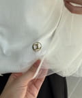 ・肩から二の腕を包み込むようなチュールのボリュームが、腕のラインを直接見せず華奢見えを叶えます。