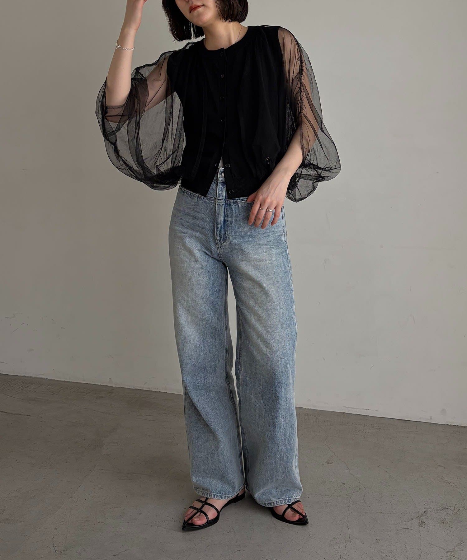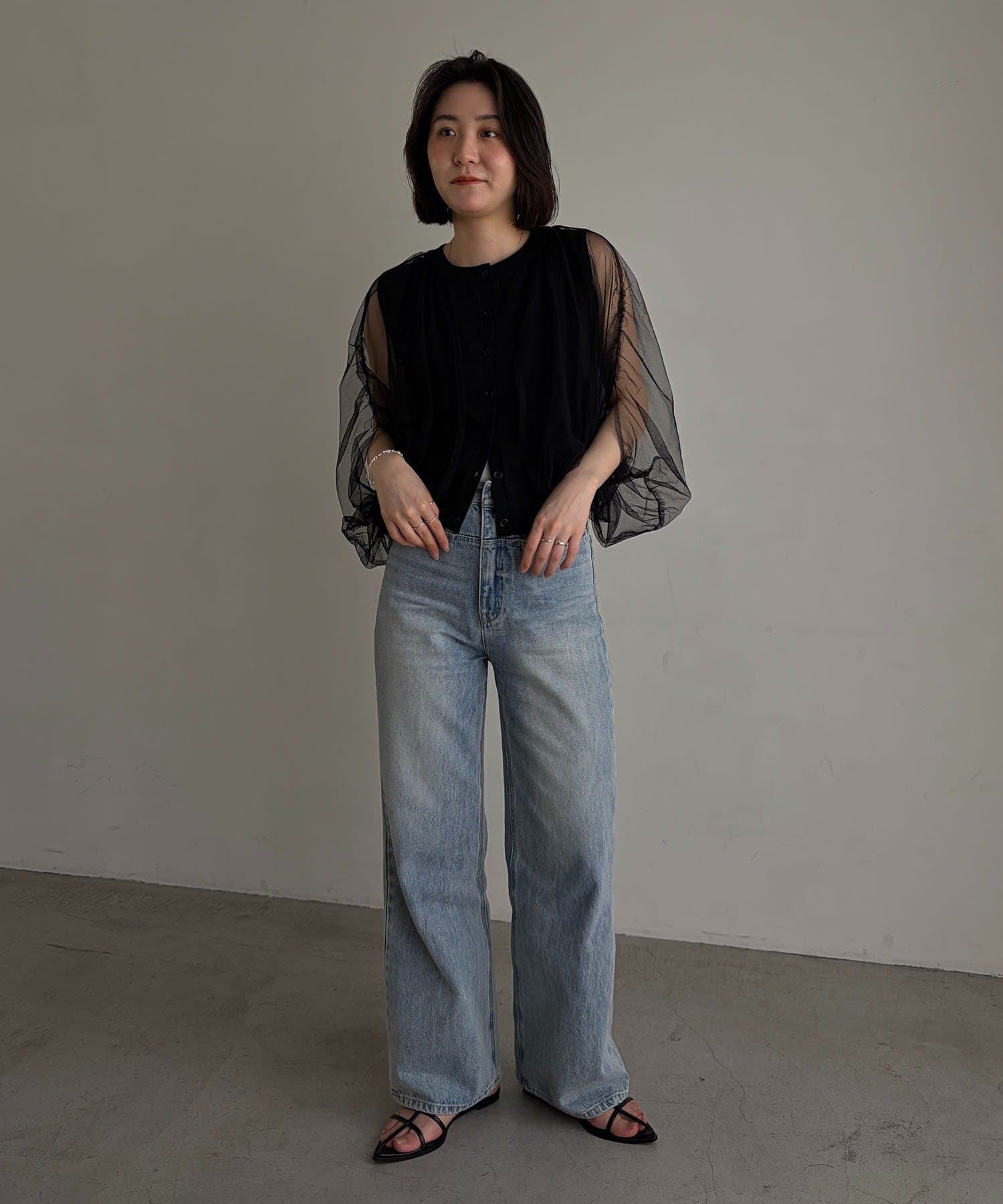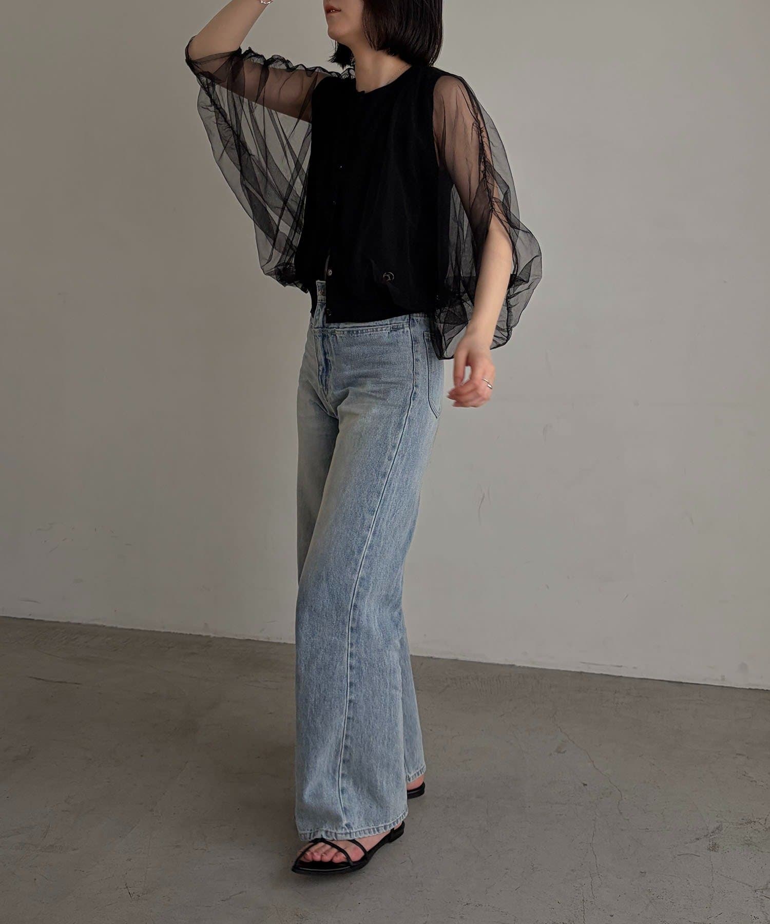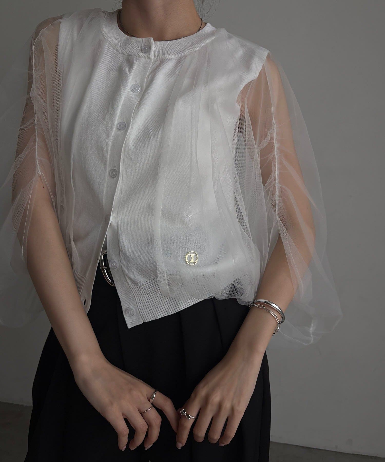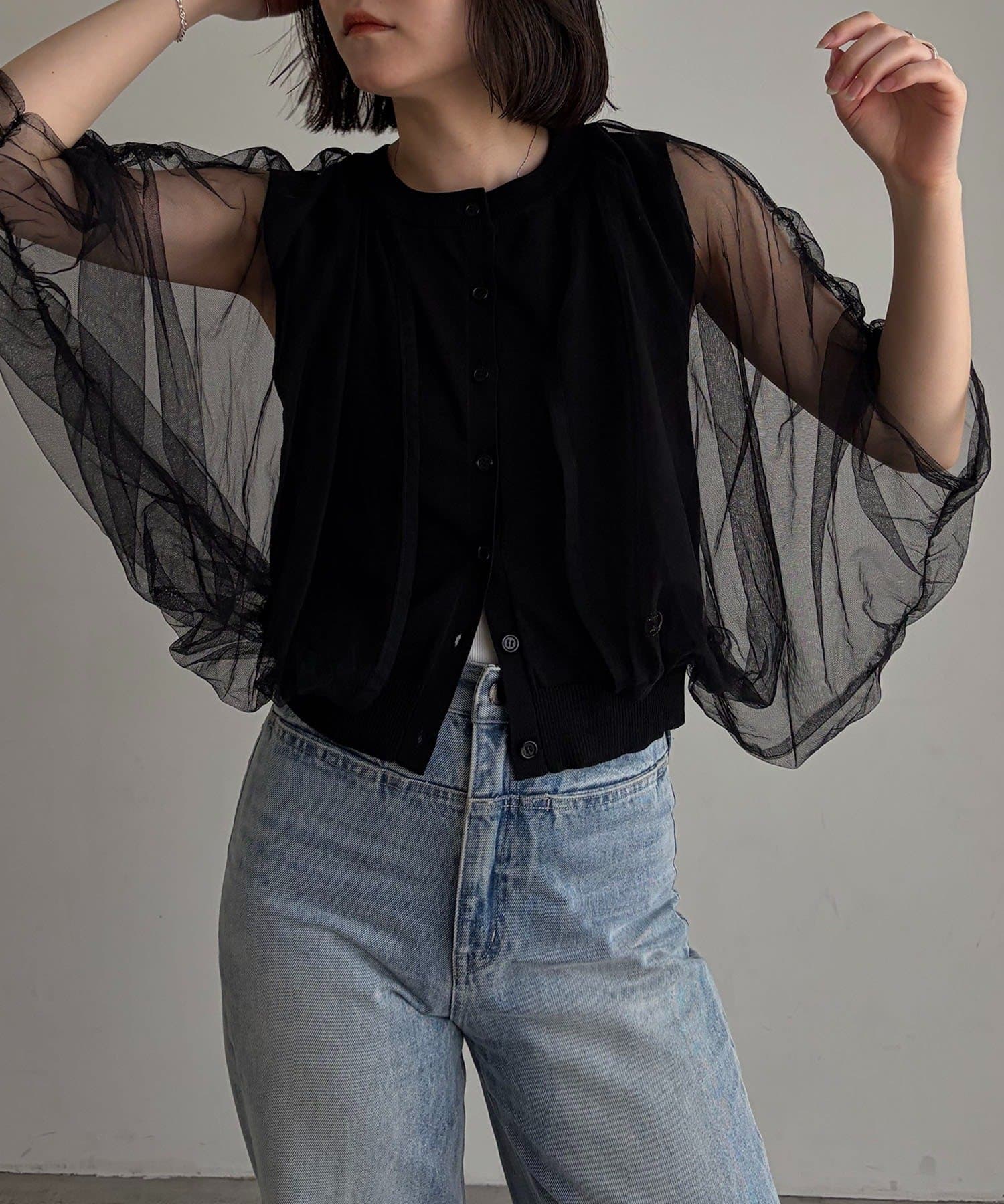 【二の腕カバー◎】〈C.L〉チュールレイヤードノースリニット