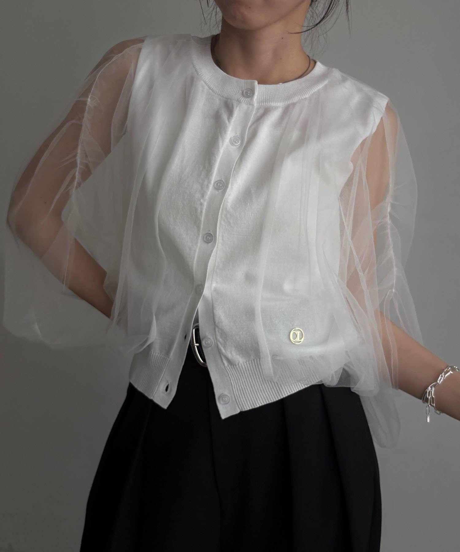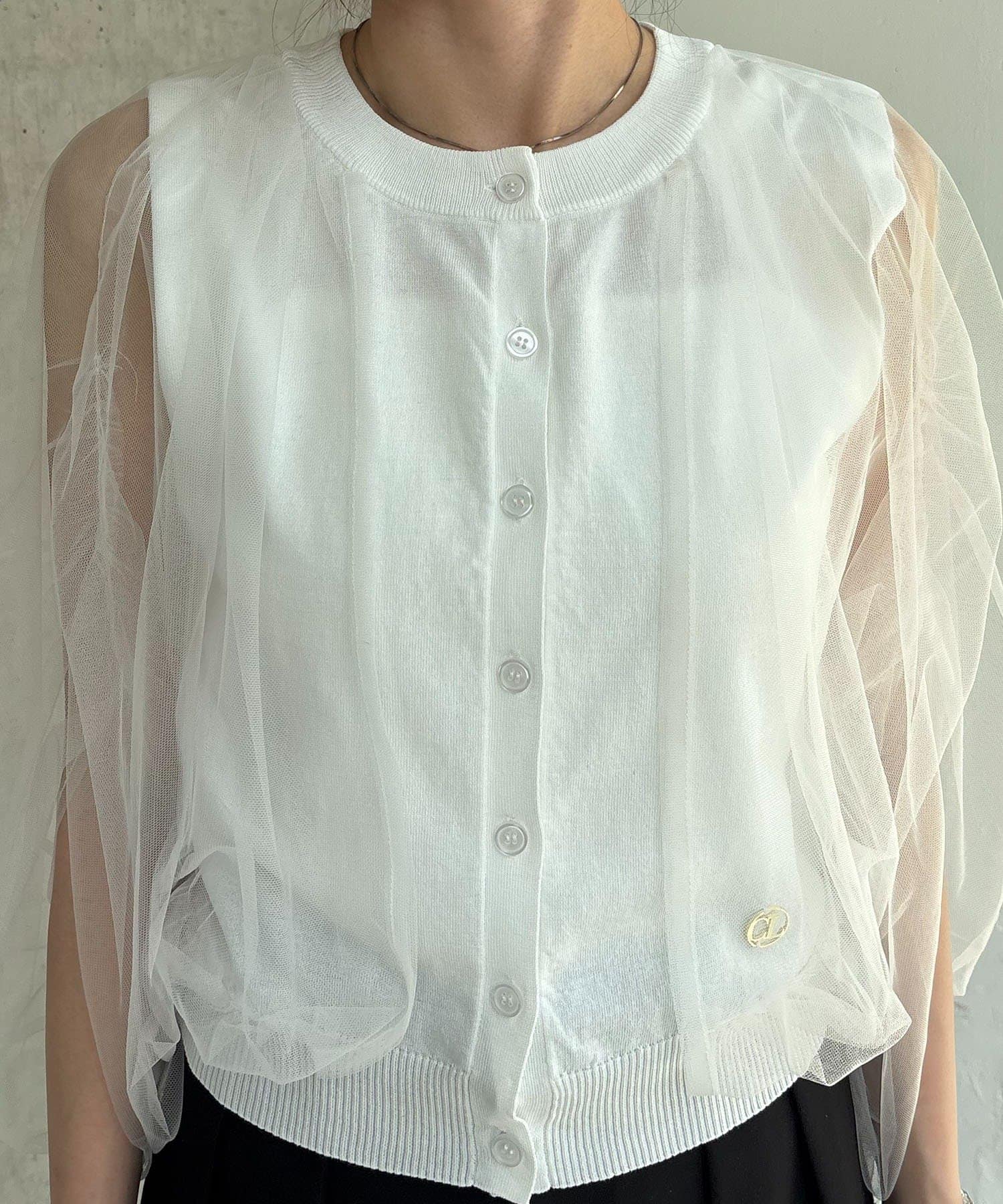CAPRICIEUX LE'MAGE(カプリシュレマージュ) 【二の腕カバー◎】〈C.L〉チュールレイヤードノースリニット
