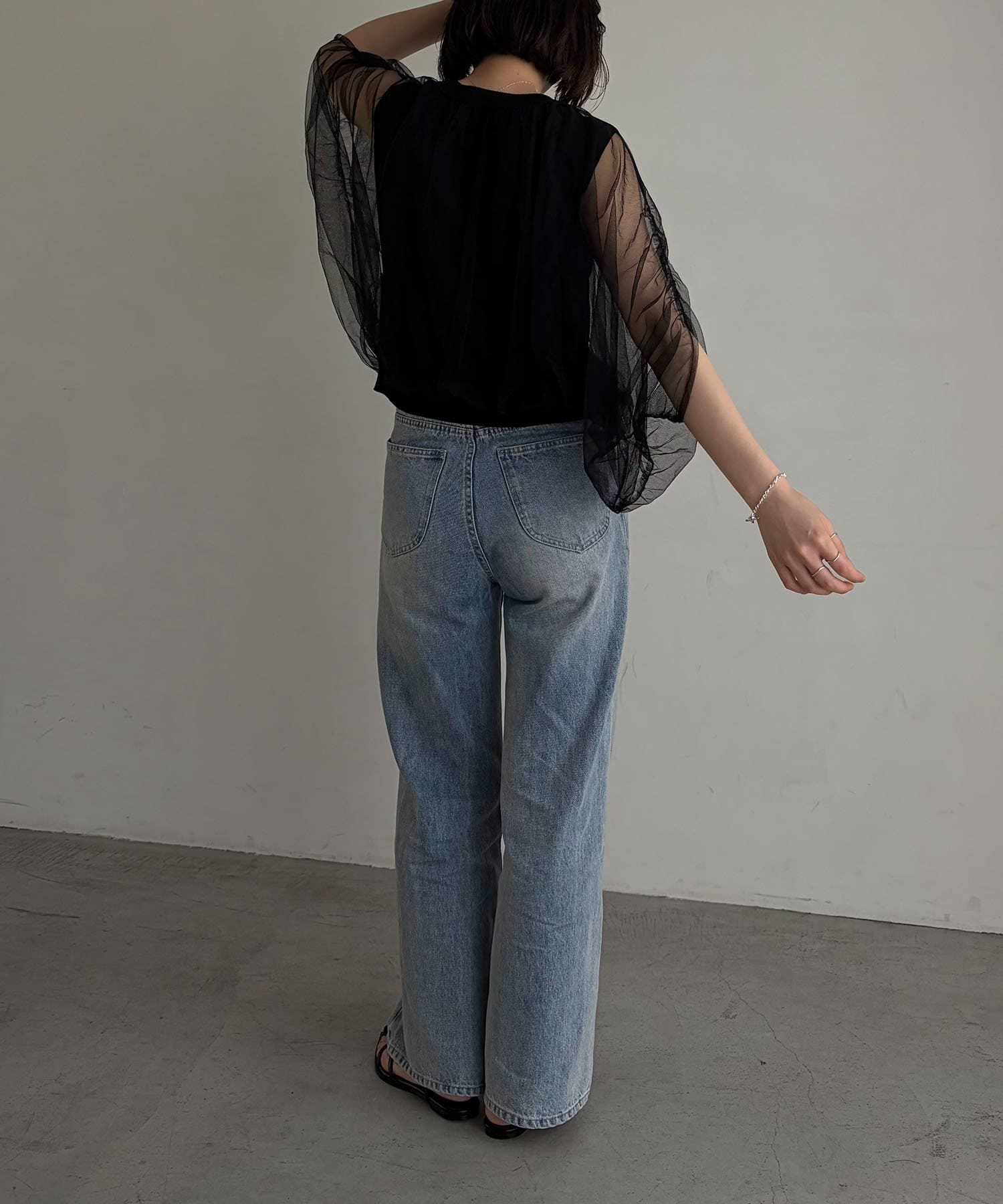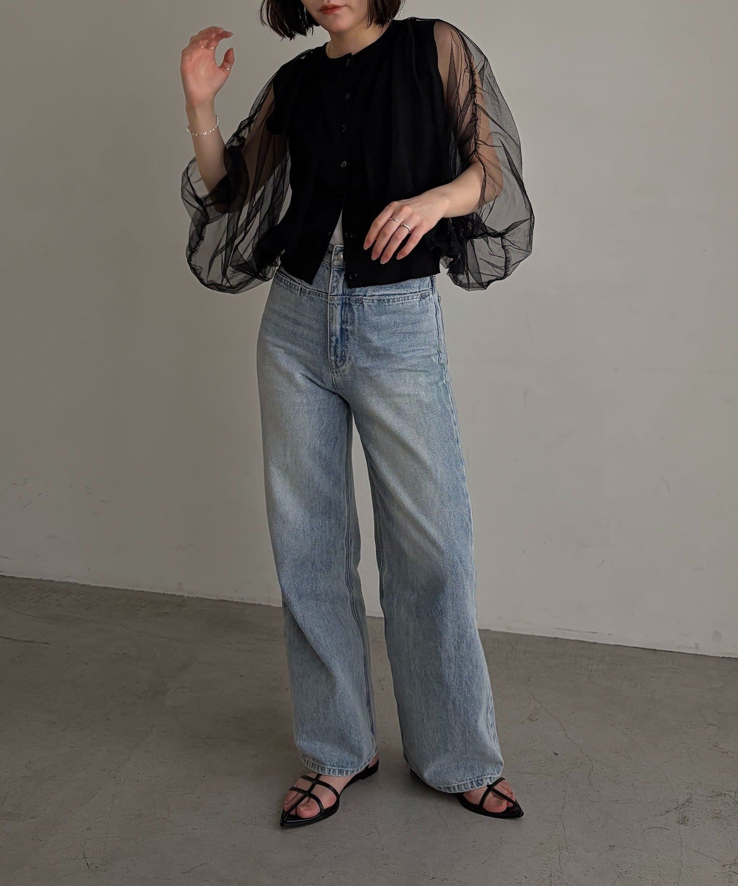 【ブラック着用アイテム】【低身長サイズあり】スリットポケットストレートデニム