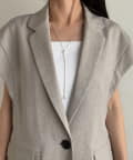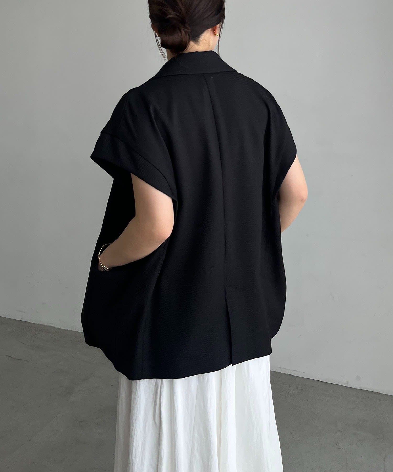 【防シワ/手洗い可/伸縮性◎】〈C.L〉リネンタッチハーフスリーブジャケット