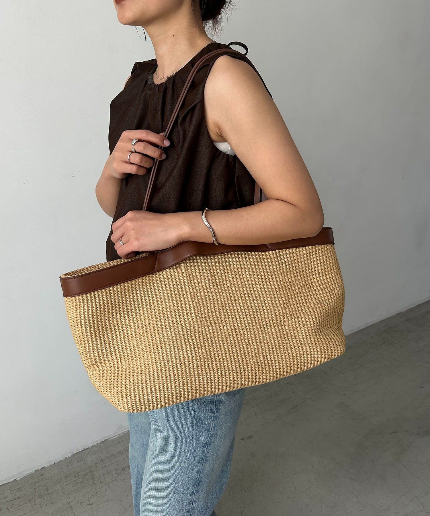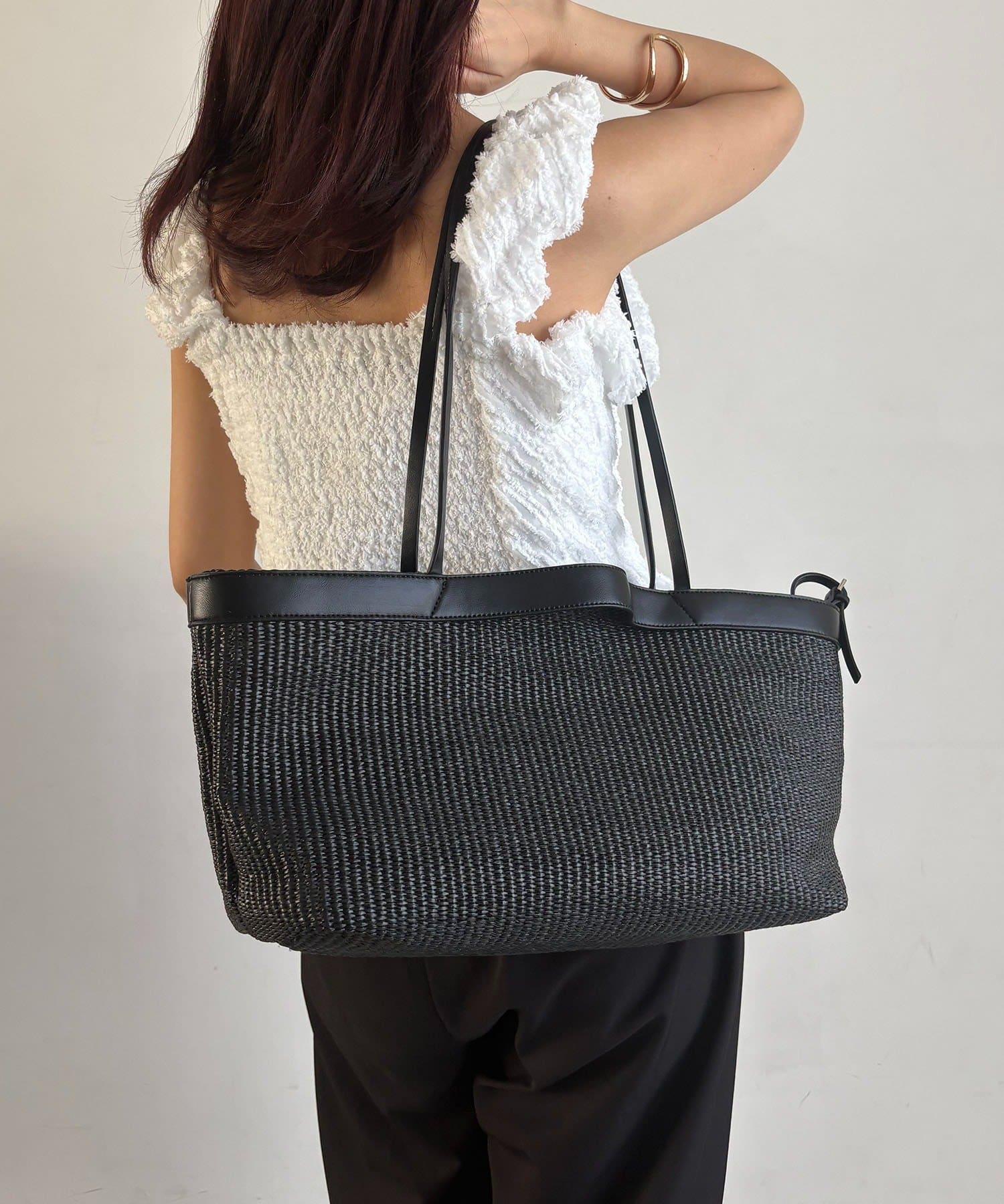 ・マチがしっかりあるワイドシルエットで、荷物が多い日もスマートに持てる1点