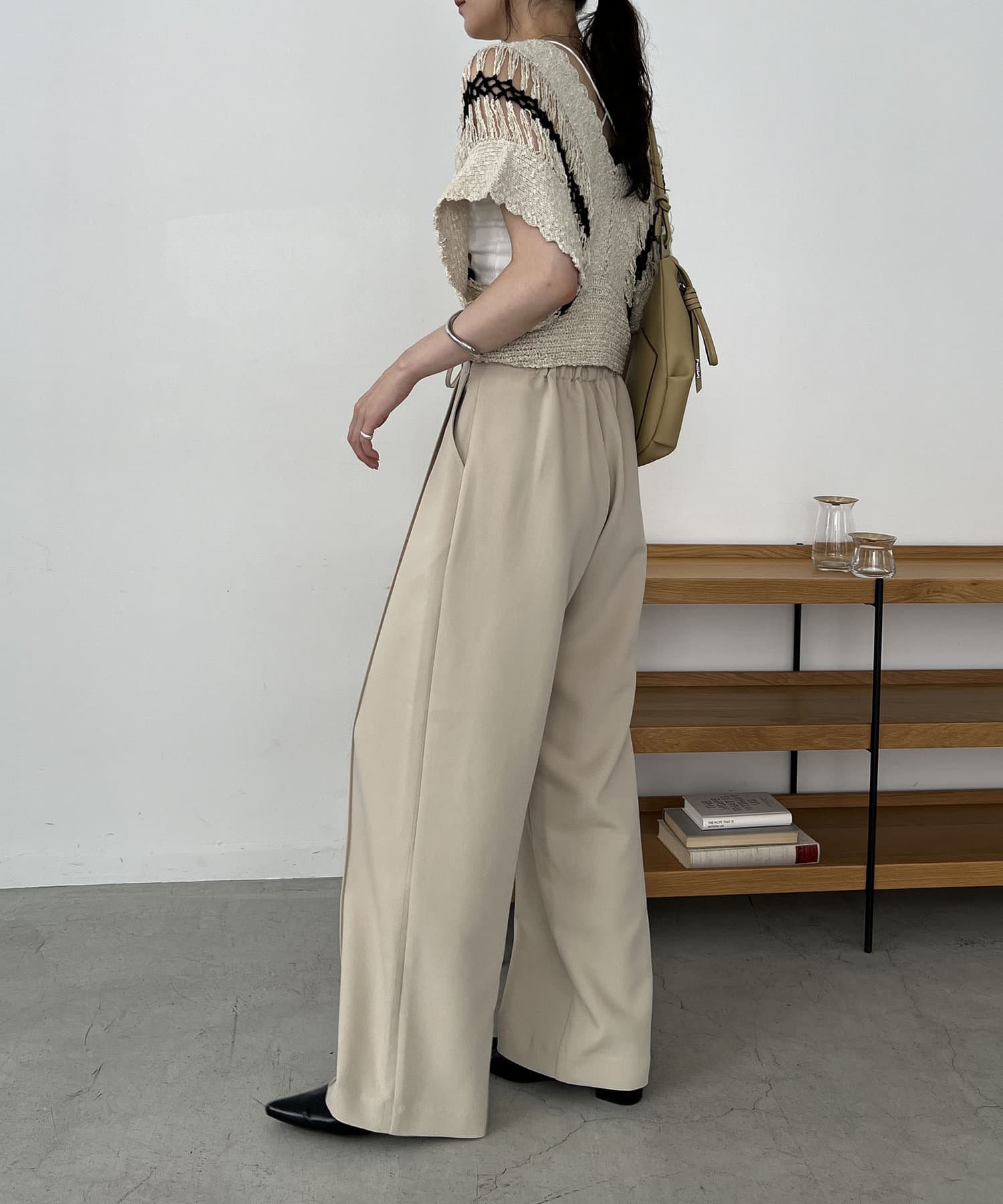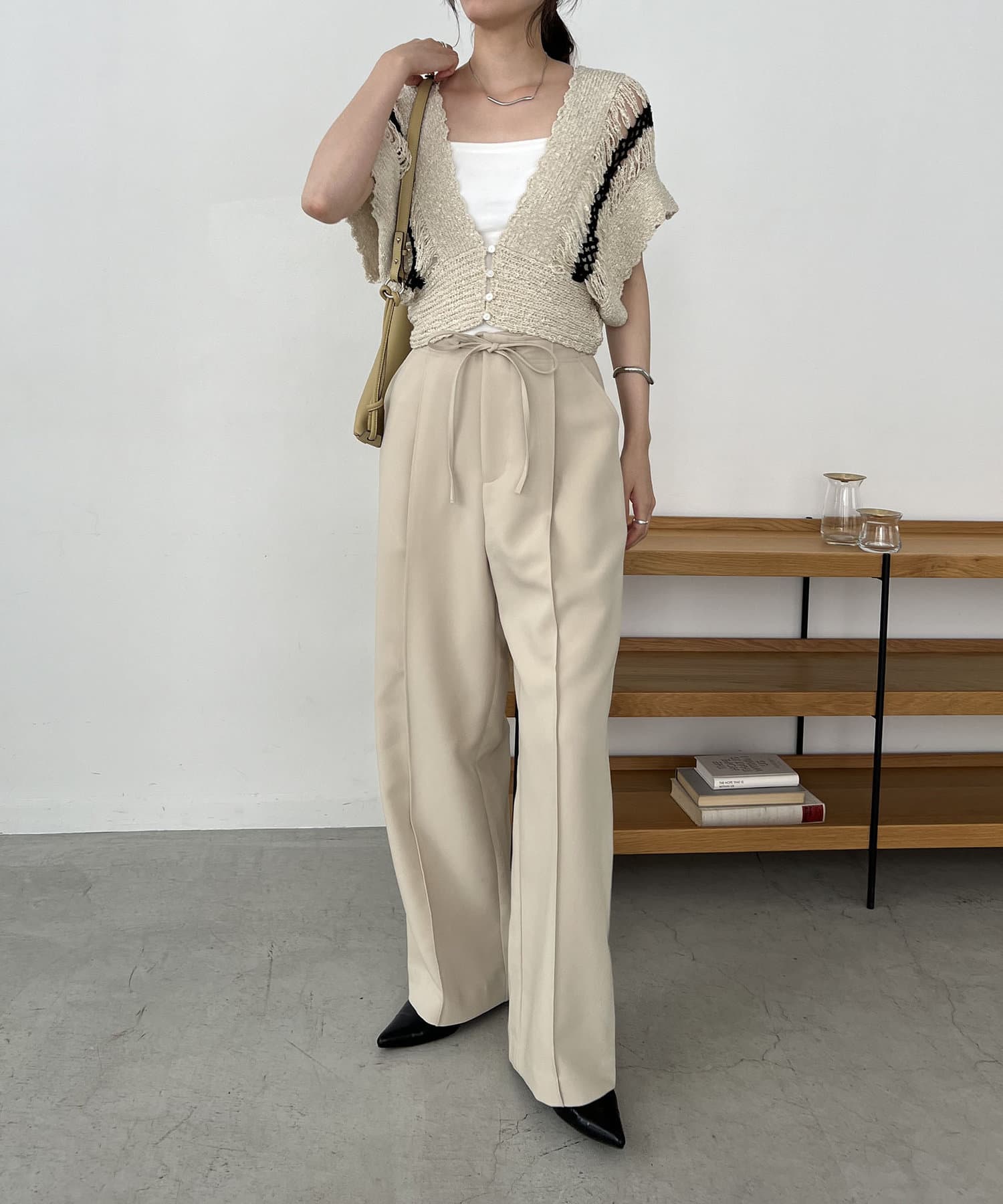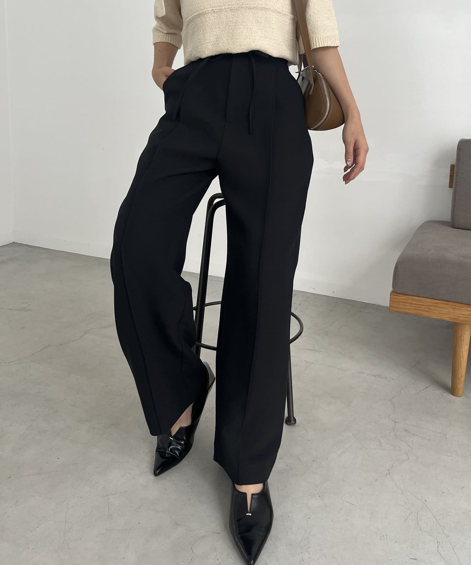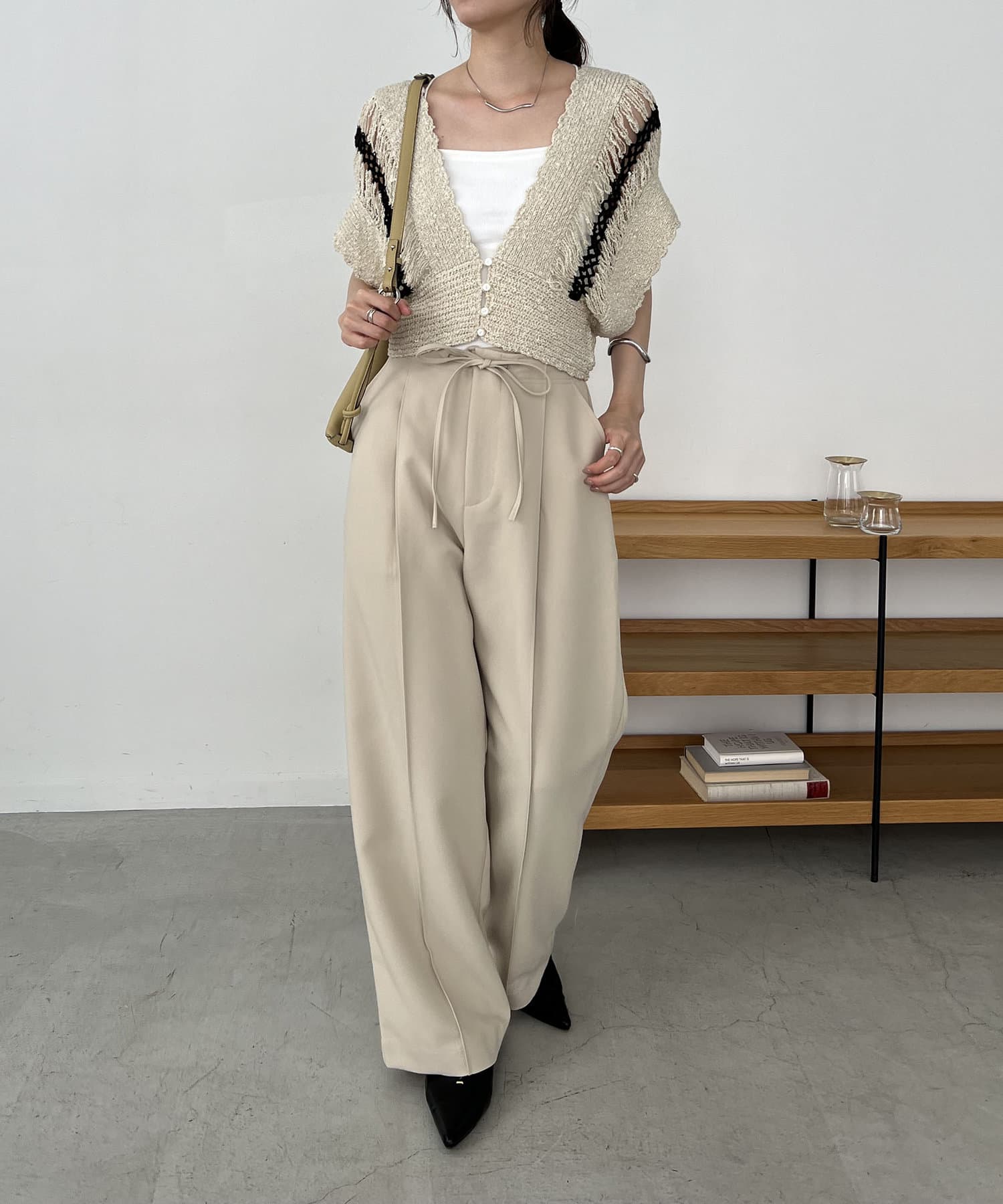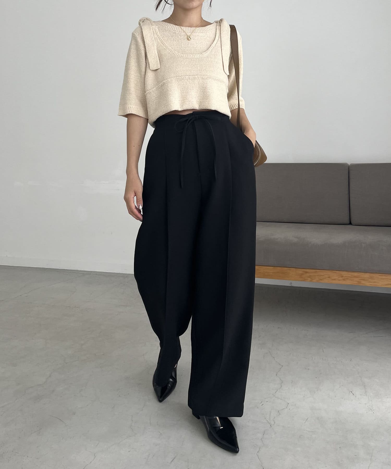 ・ウエストにデザインがあるので、短丈のトップスやコンパクトなトップスをインして着るのがおすすめ