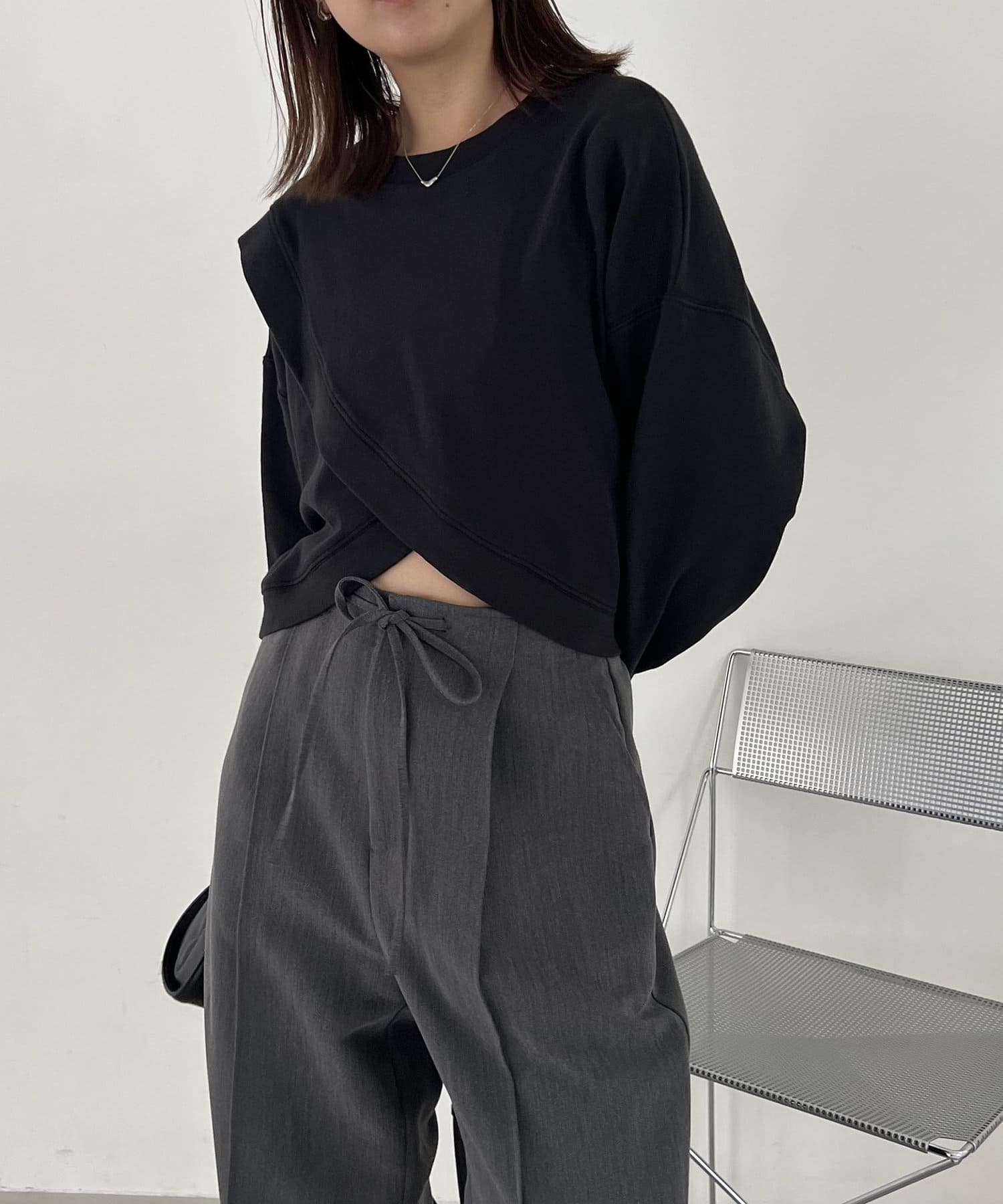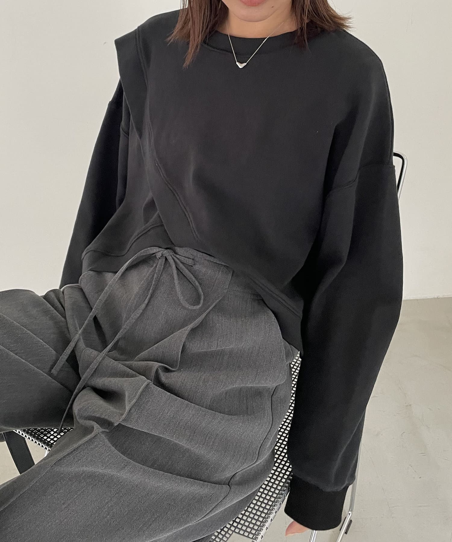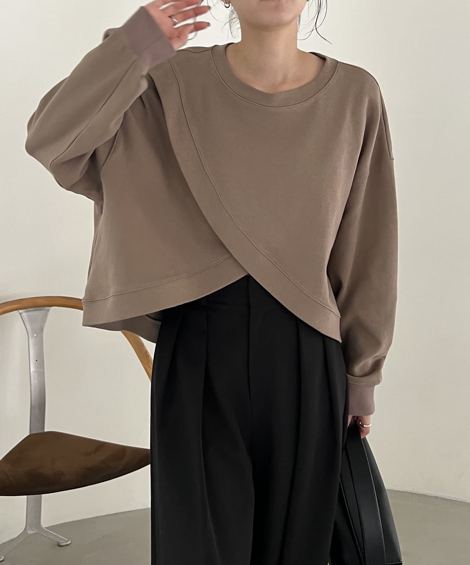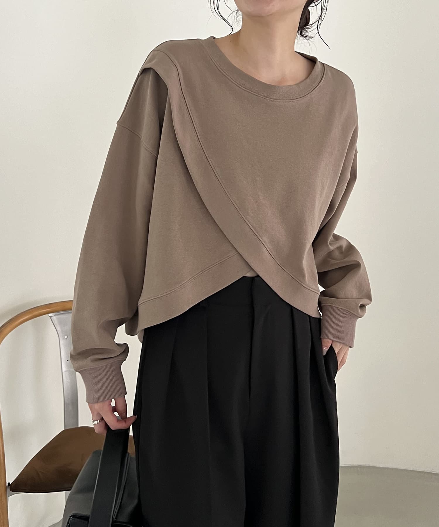 フロントのカシュクールデザインが目を惹くスエット