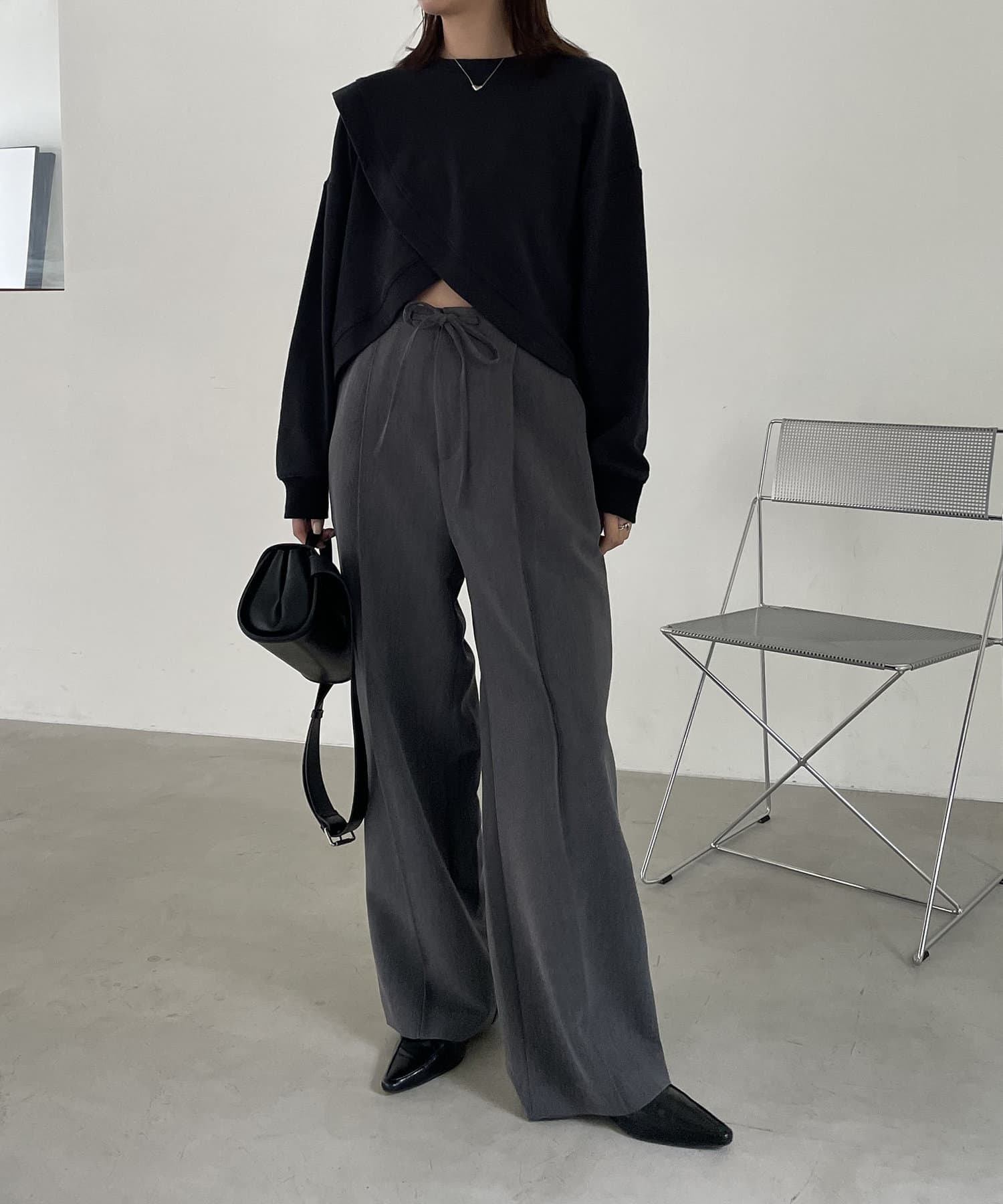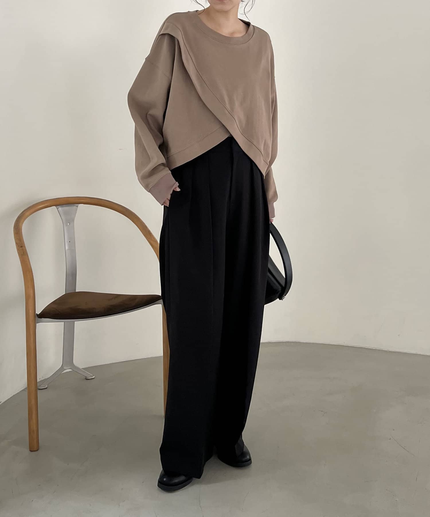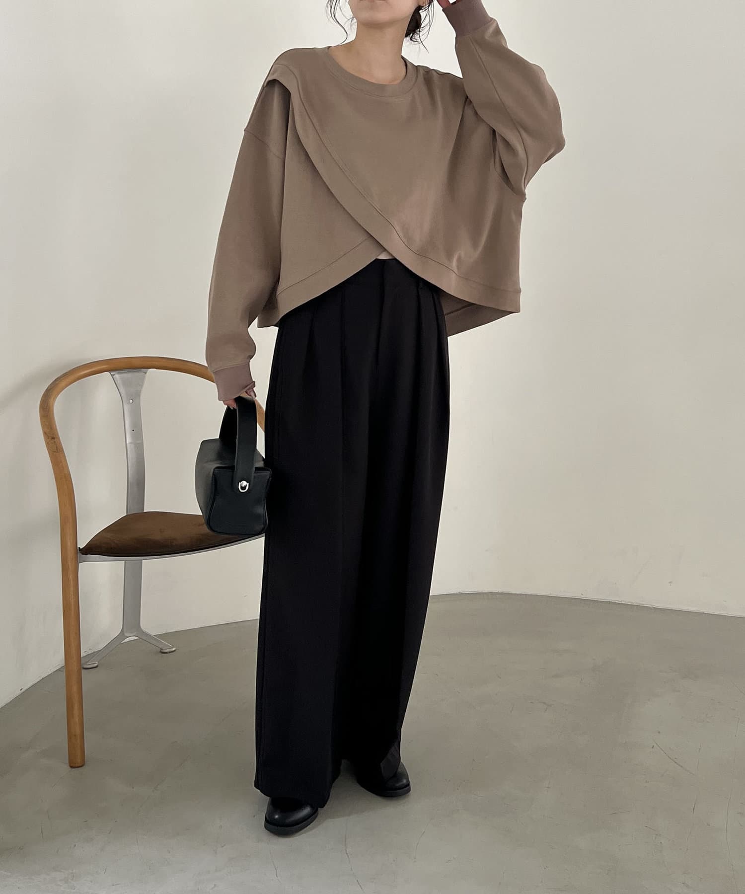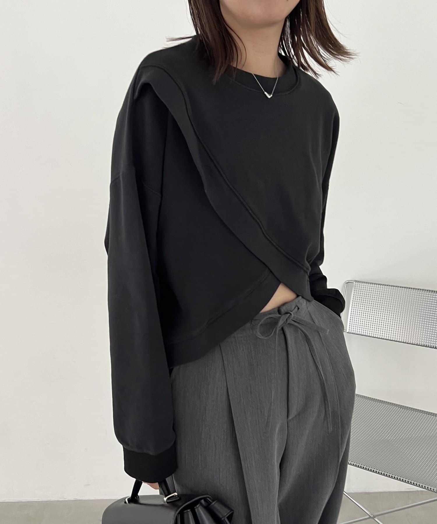 フロントのカシュクールデザインが目を惹くスエット