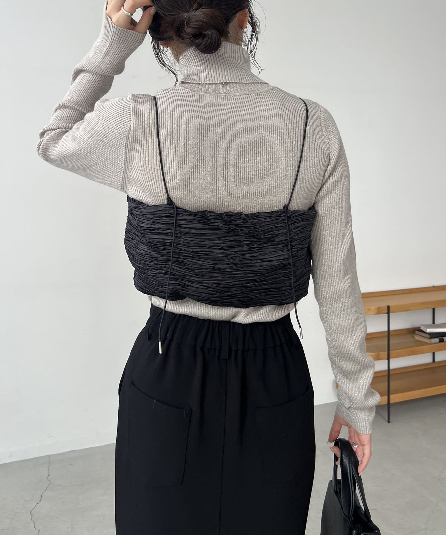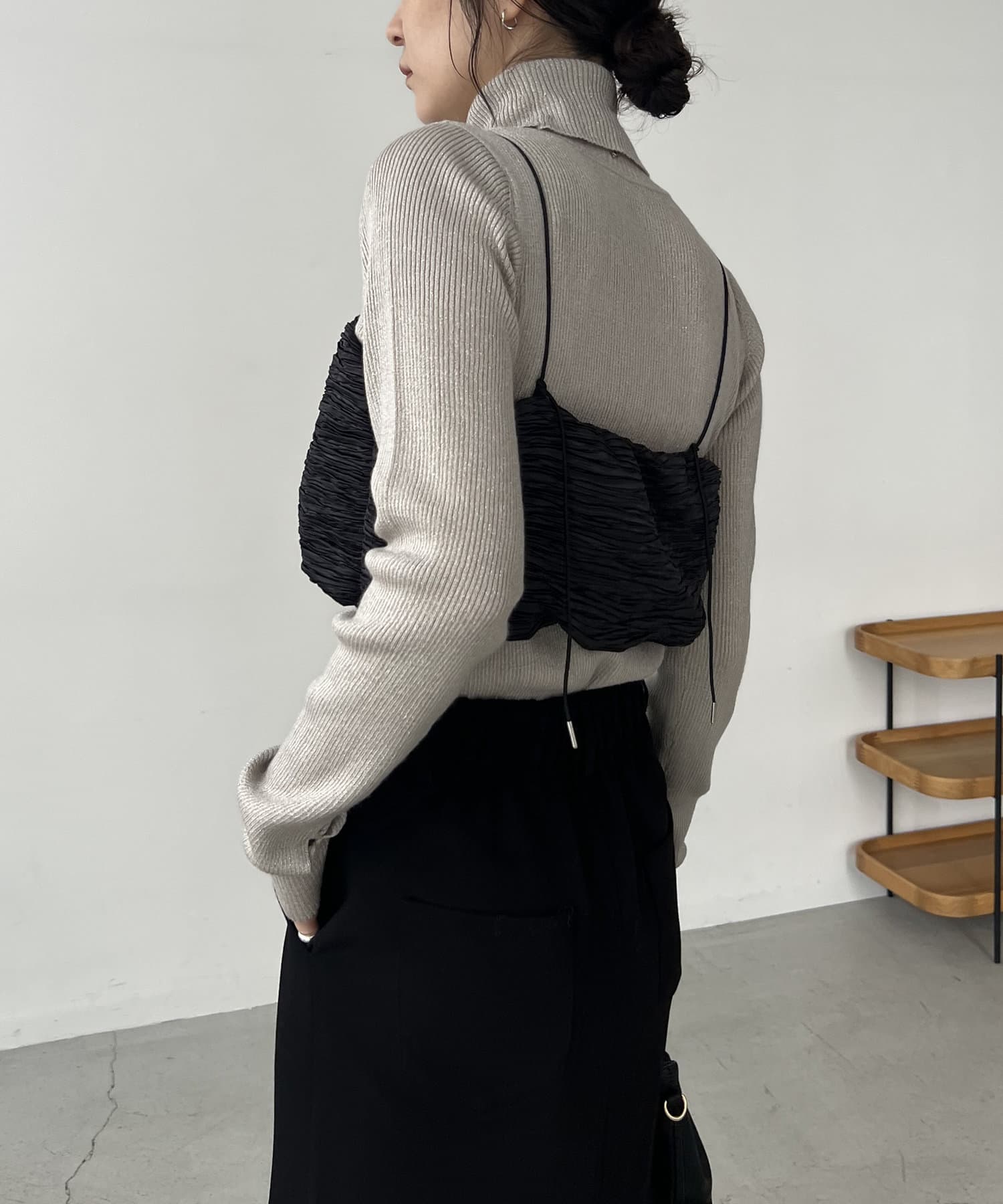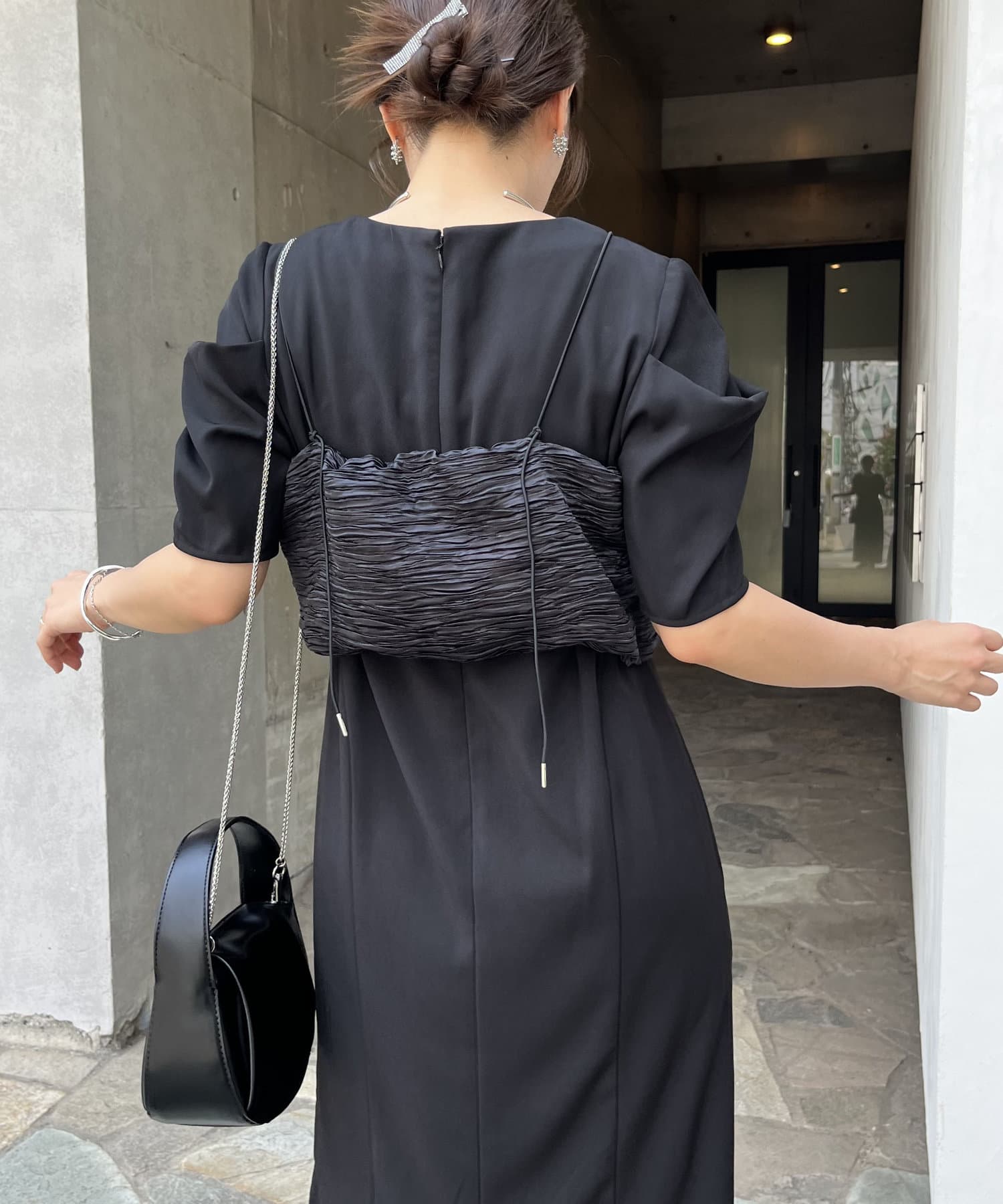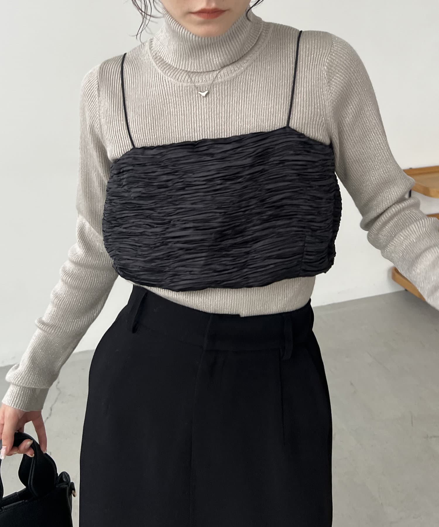 ・サテン生地のビスチェがセットになっており、トレンド感のあるレイヤードスタイルに