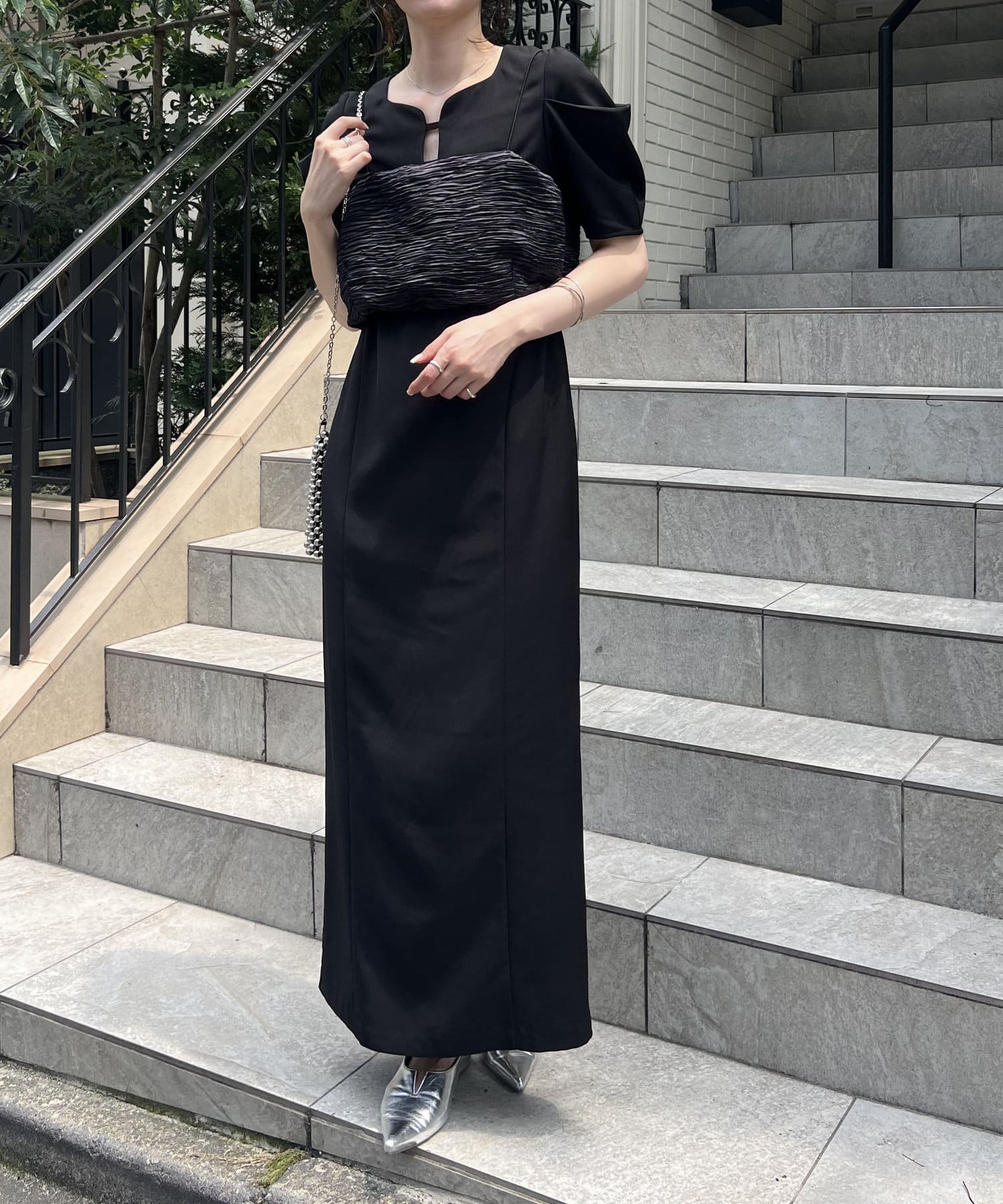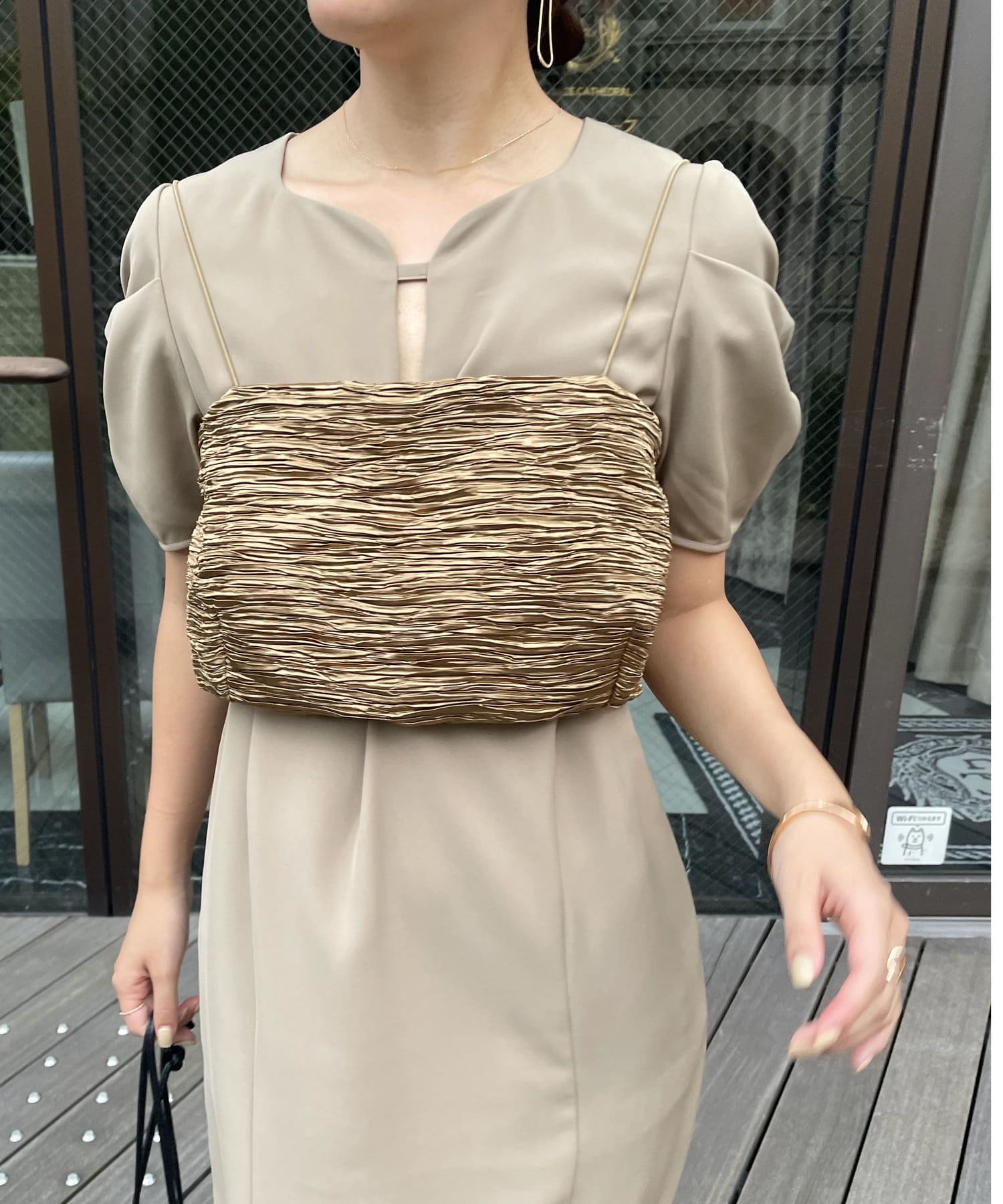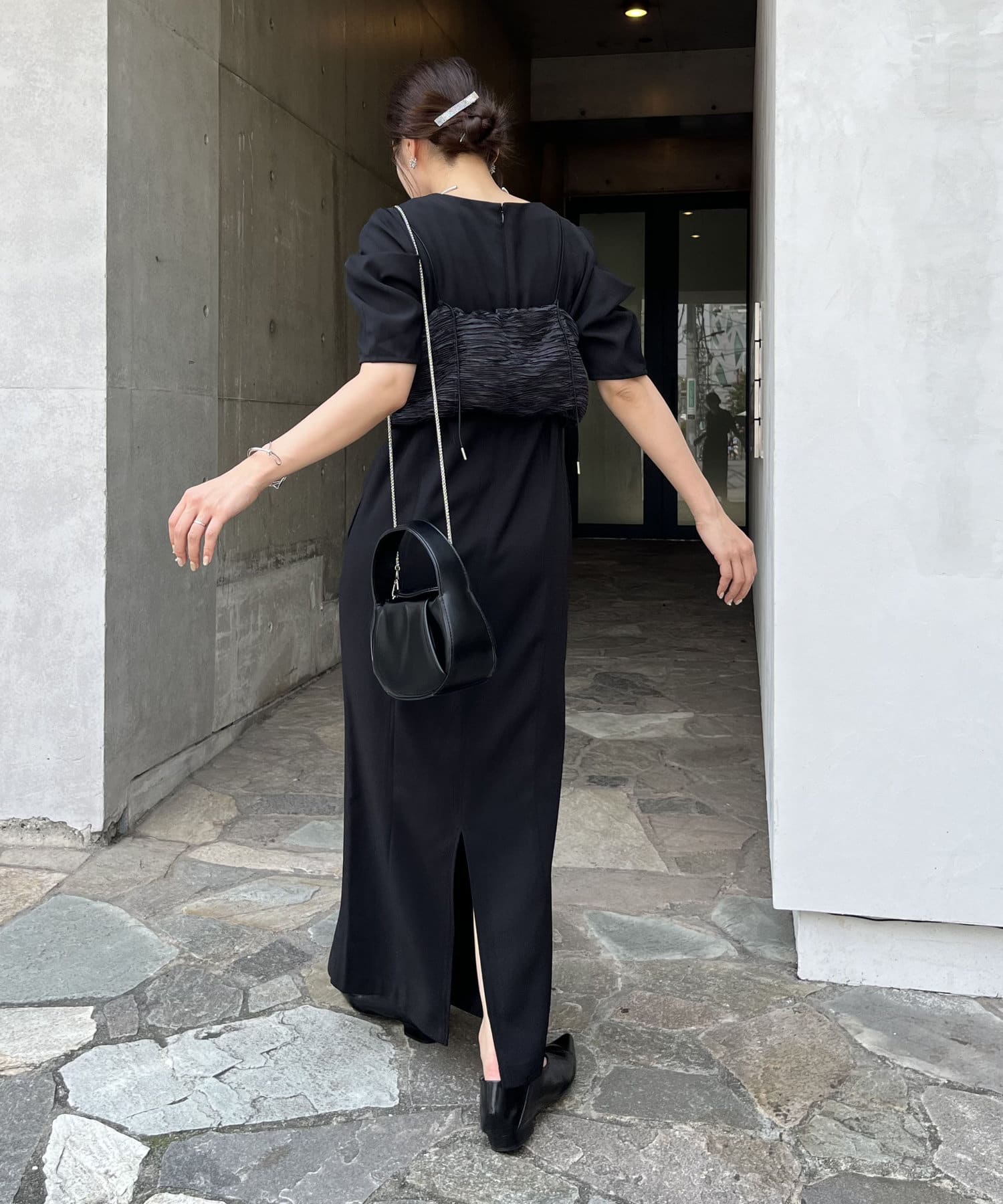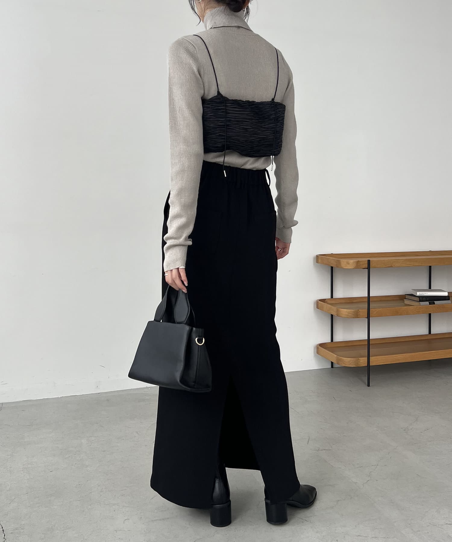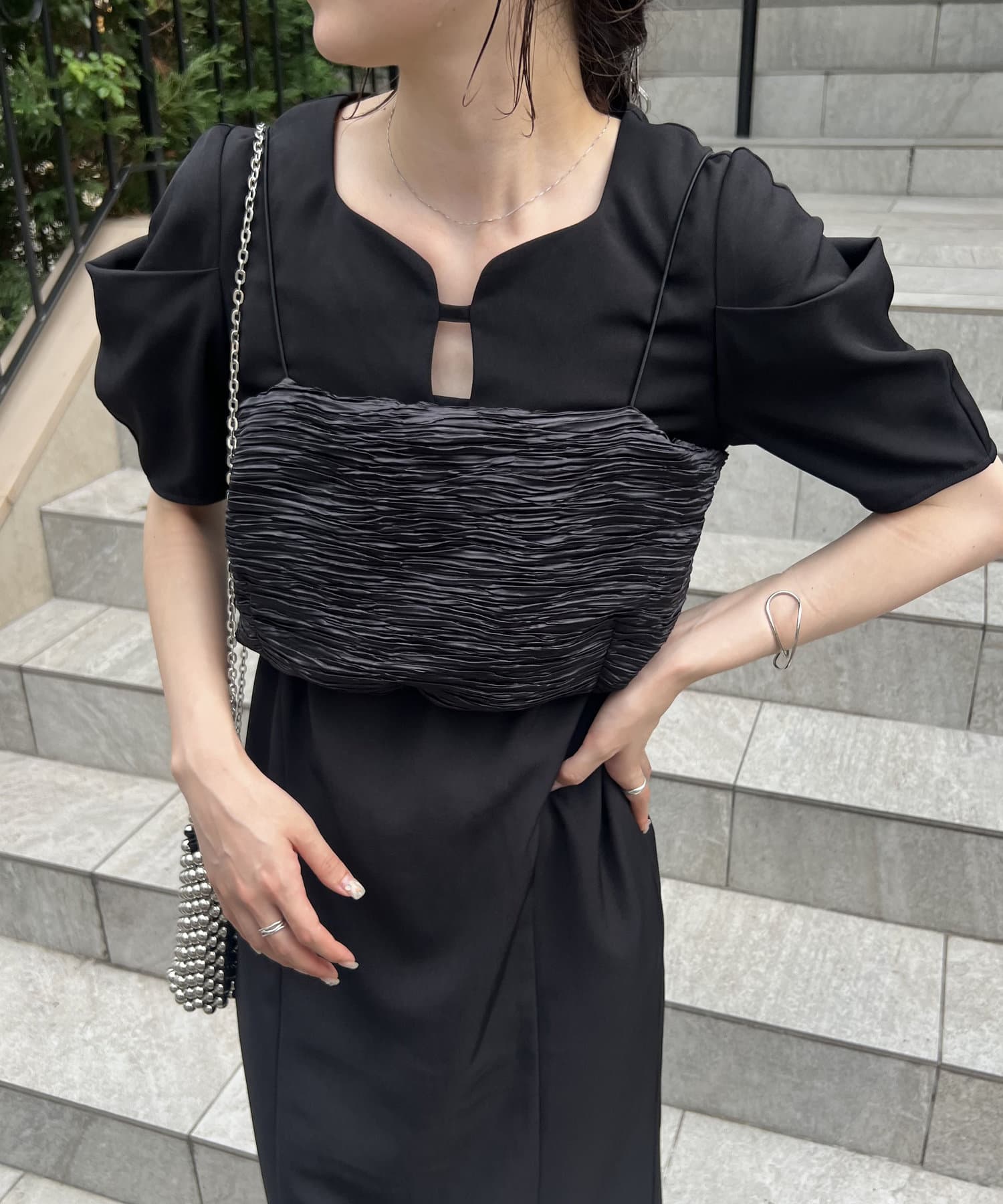 ・サテン生地のビスチェがセットになっており、トレンド感のあるレイヤードスタイルに