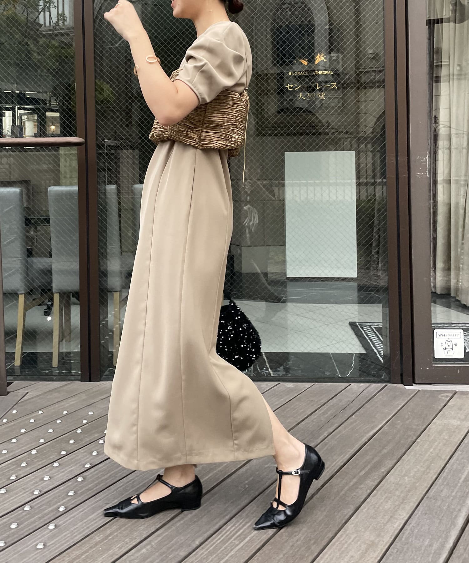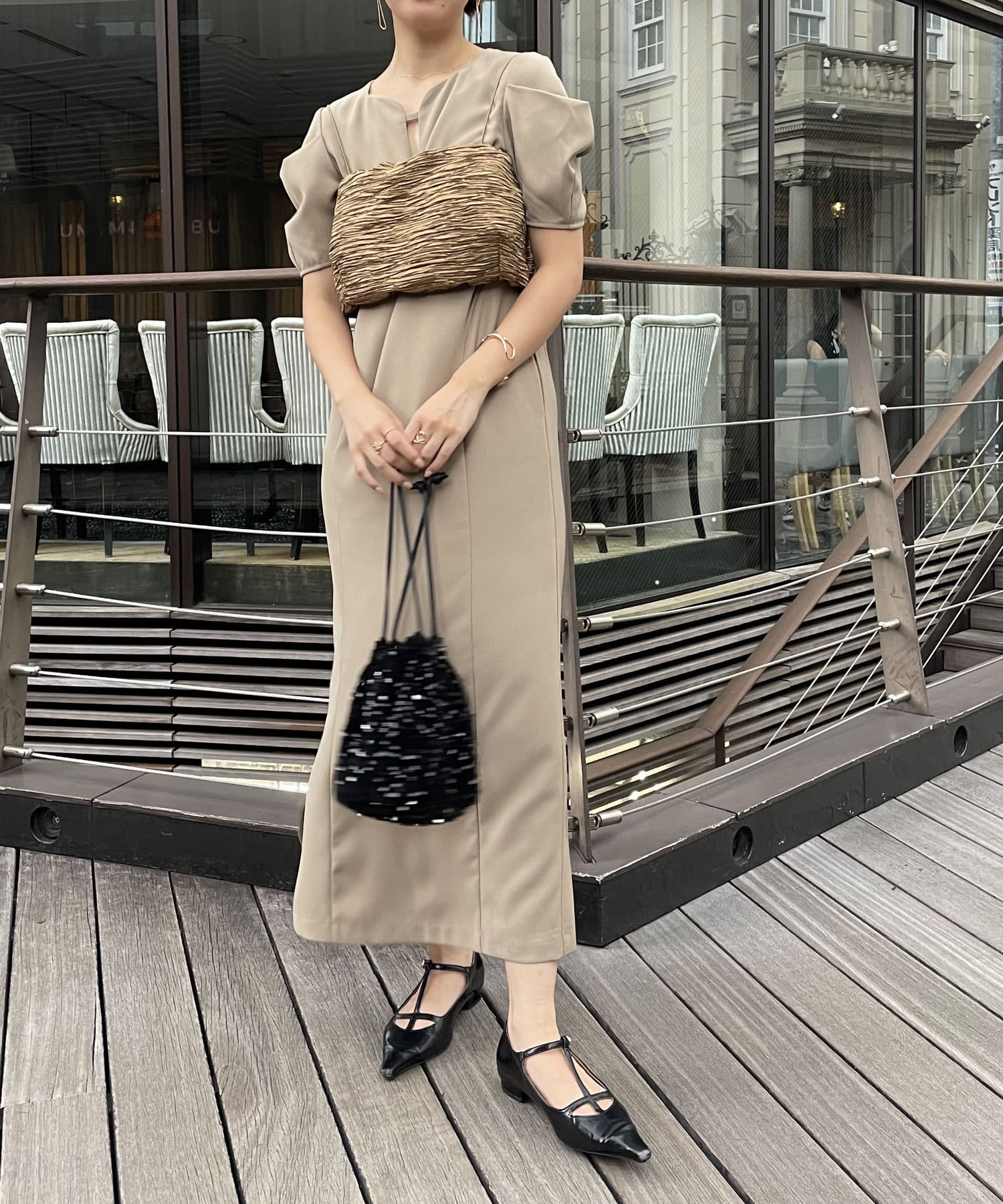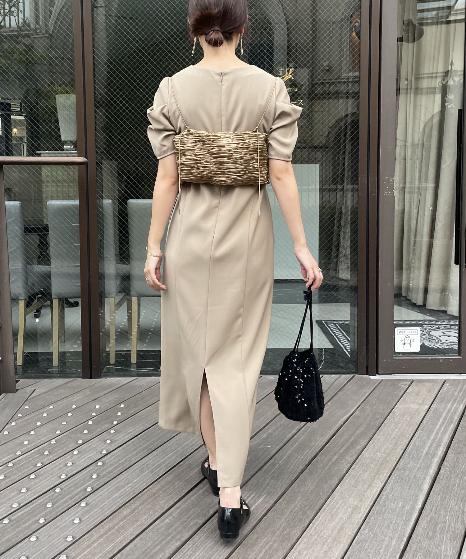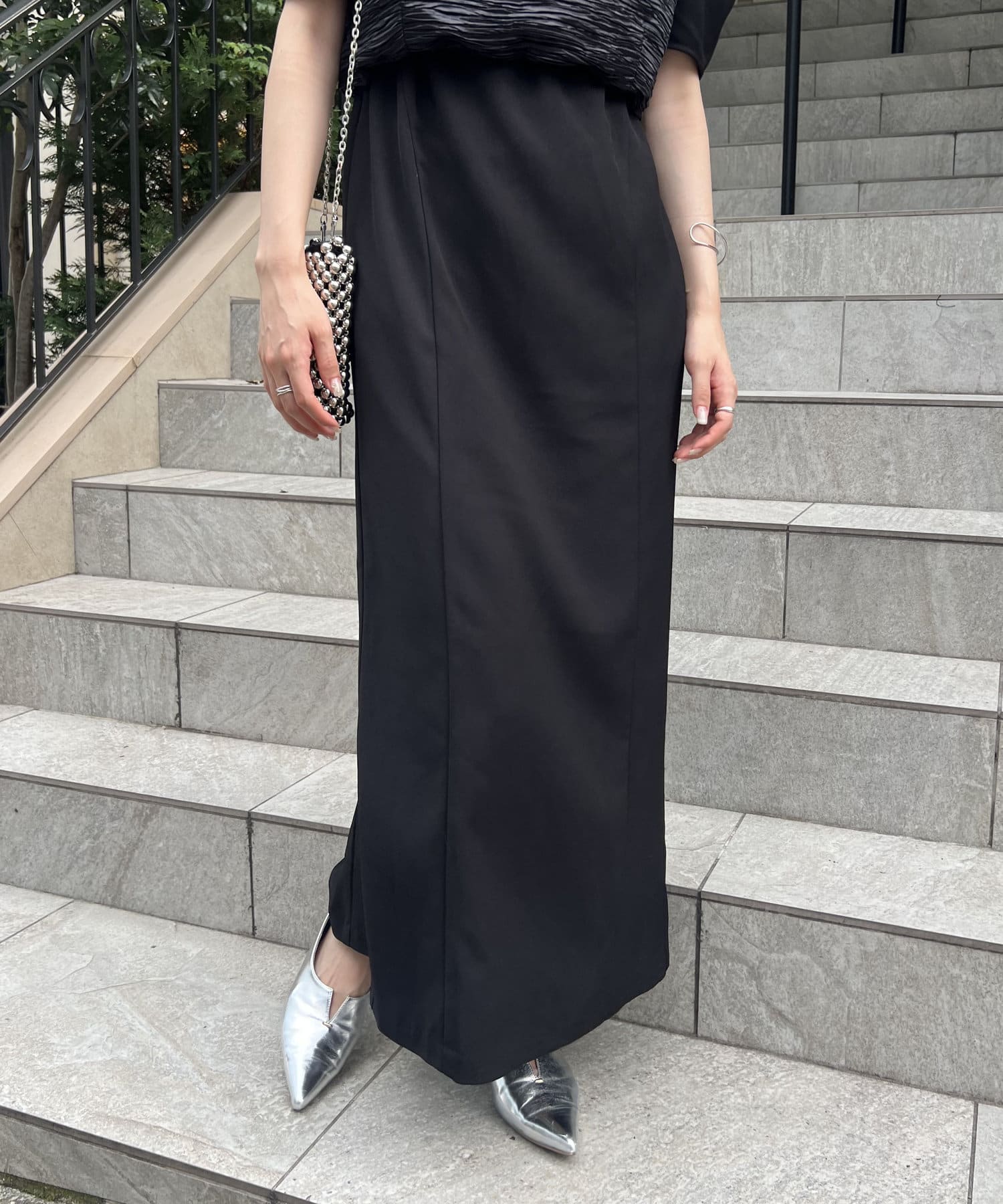 ・サテン生地のビスチェがセットになっており、トレンド感のあるレイヤードスタイルに