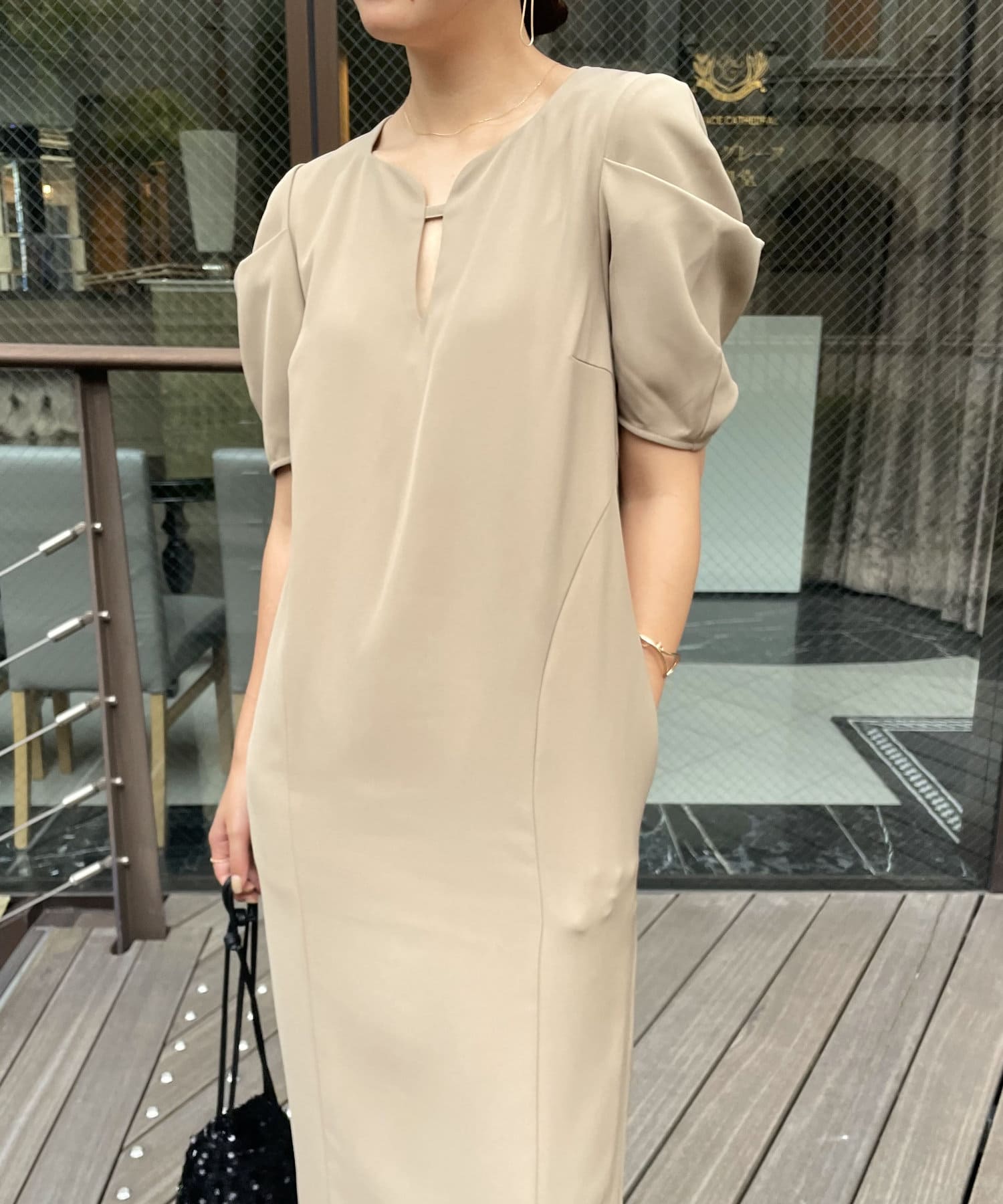 ・タックが入った立体的な5分袖もポイントに