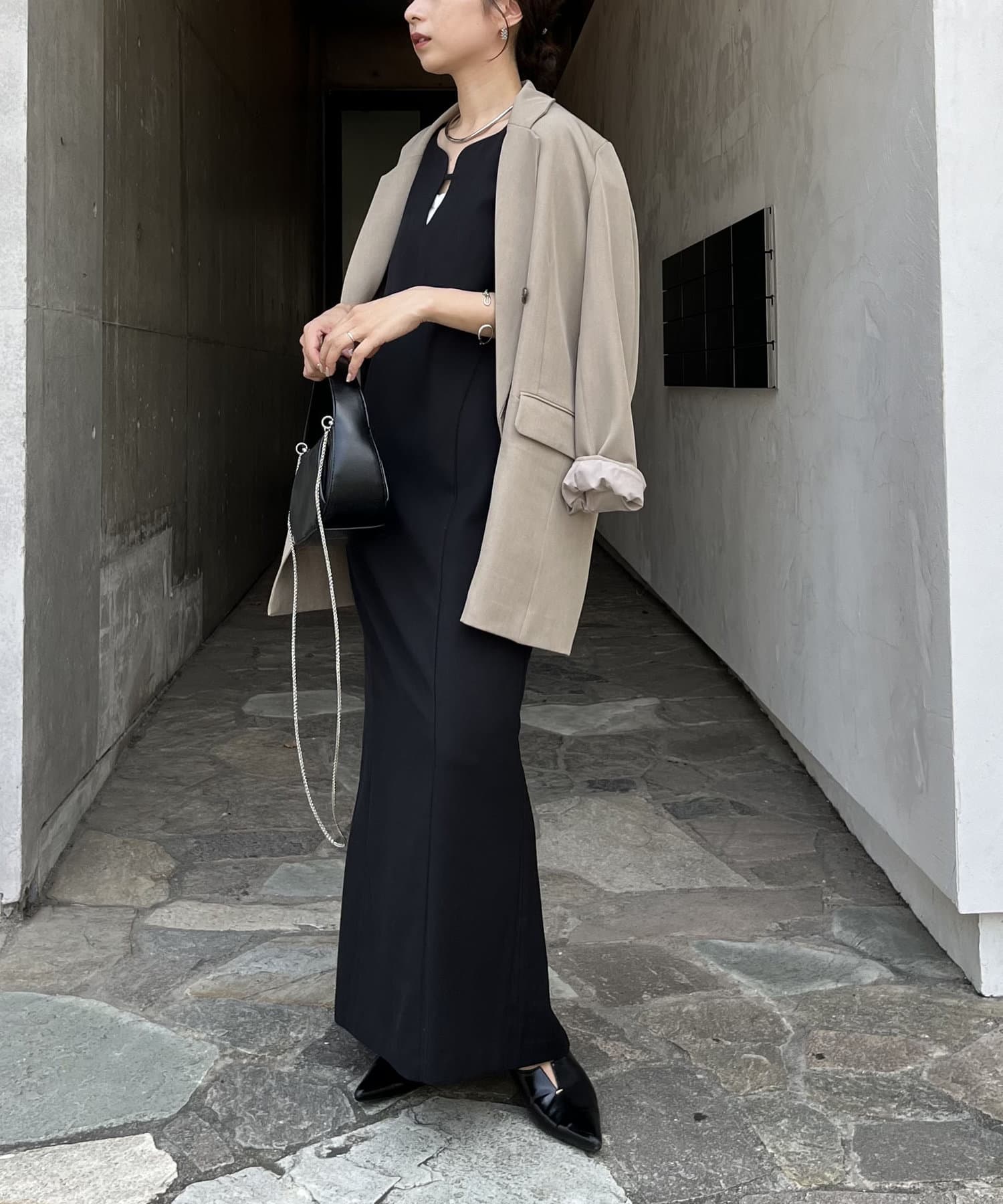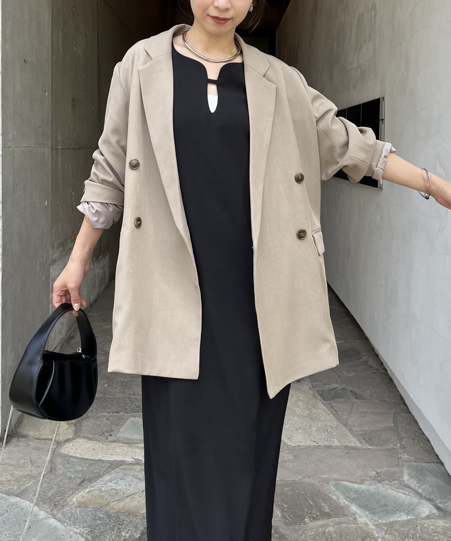 ・ワンピースの上にジャケットを羽織ったスタイリングも◎