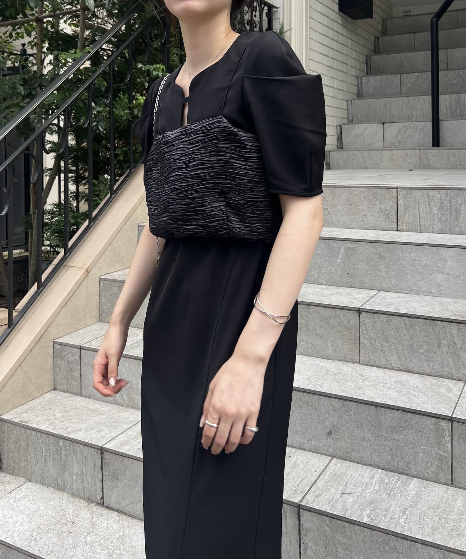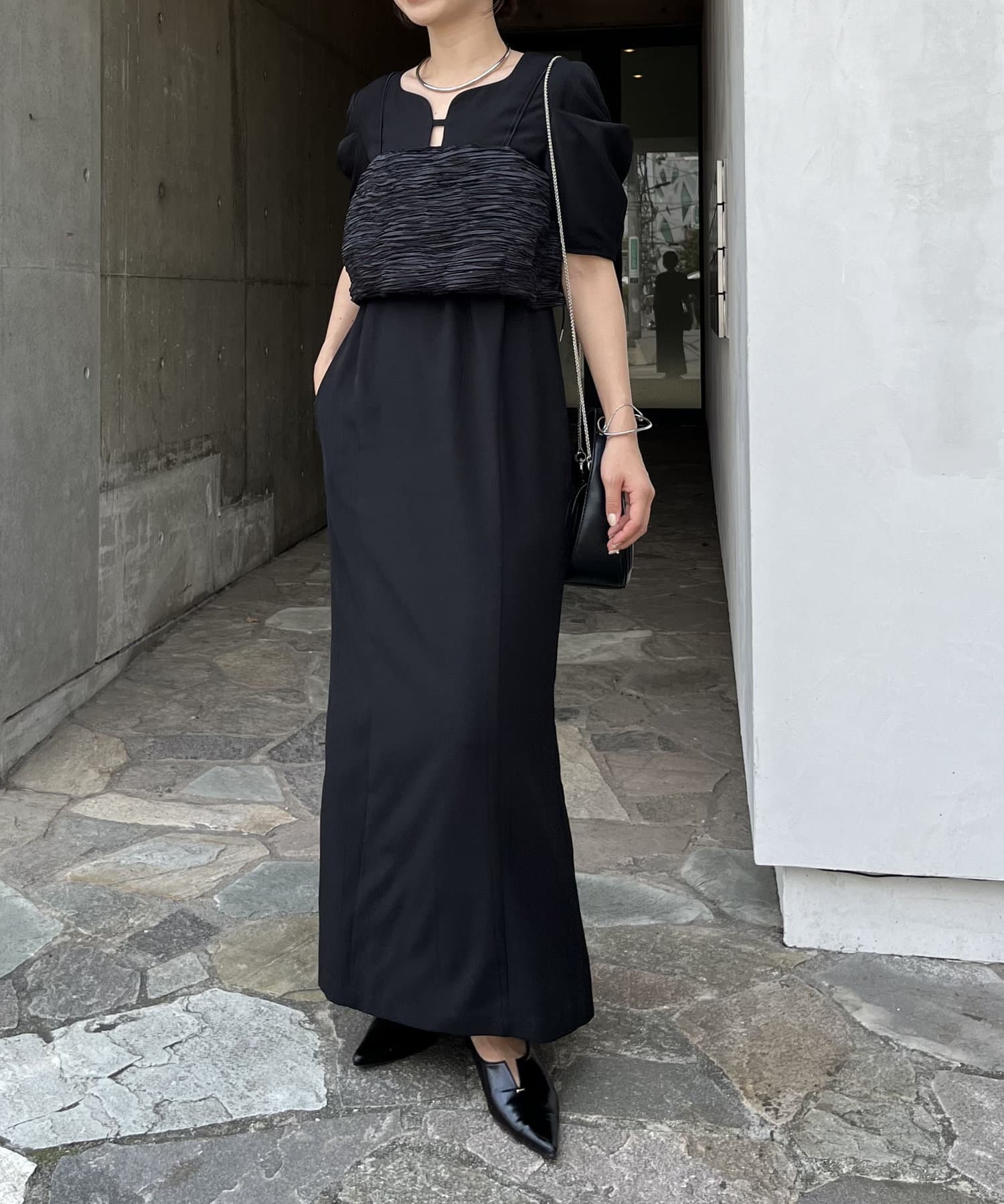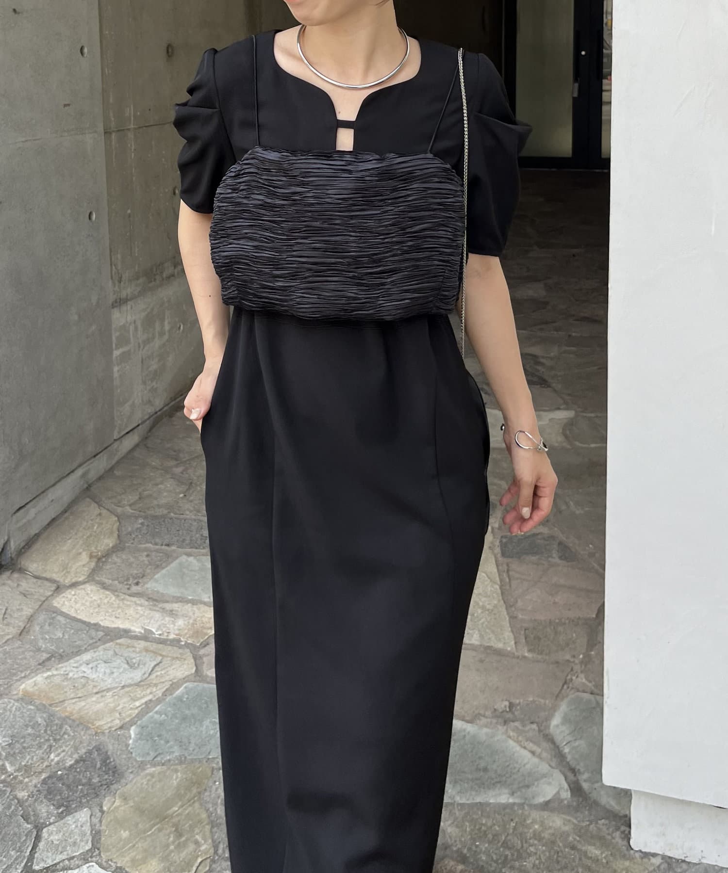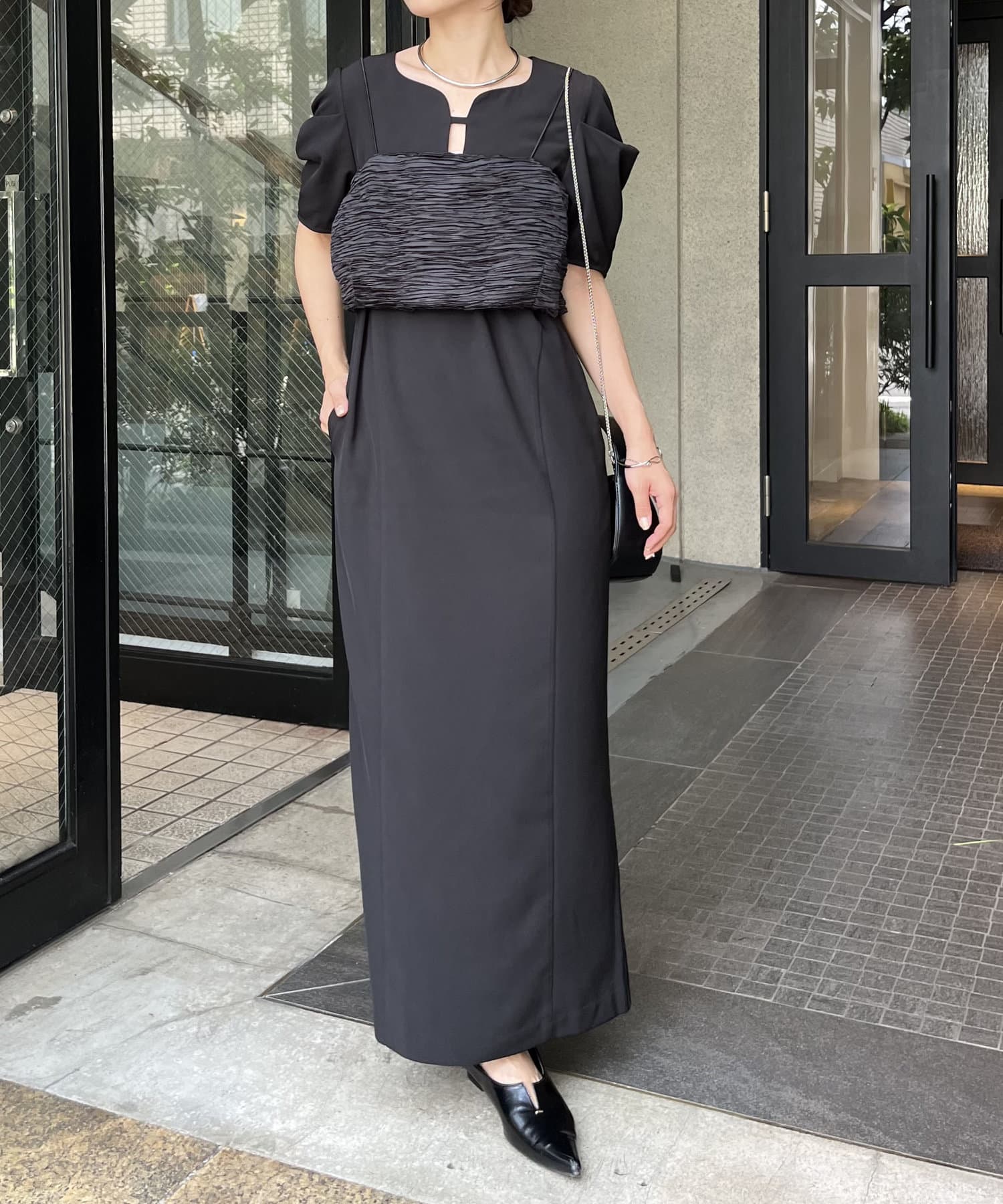 【オケージョンアイテム/サイズ展開あり】ビスチェSETウェーブネックワンピース