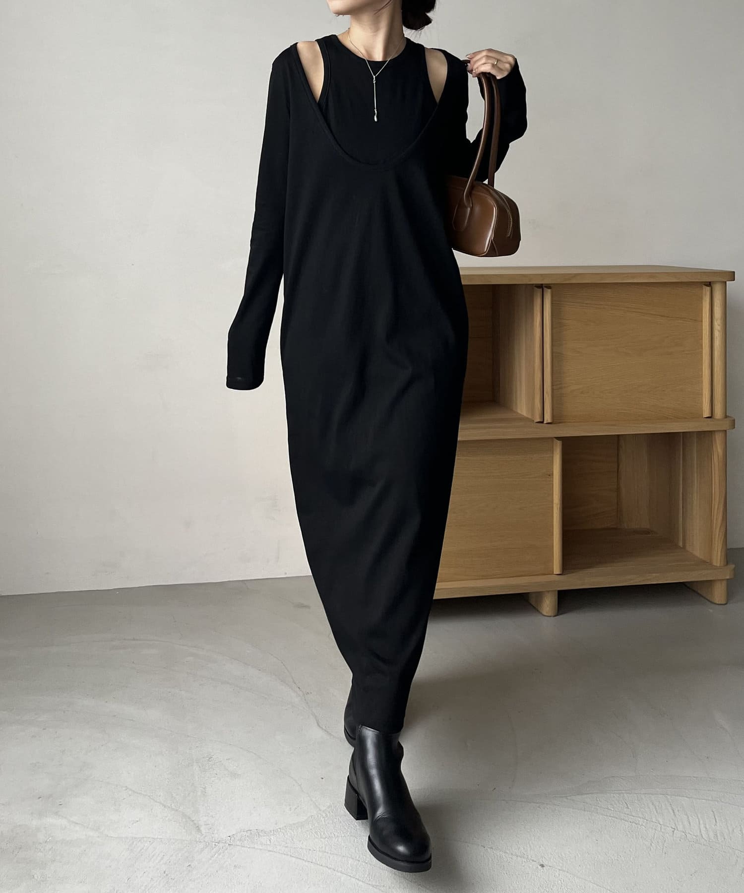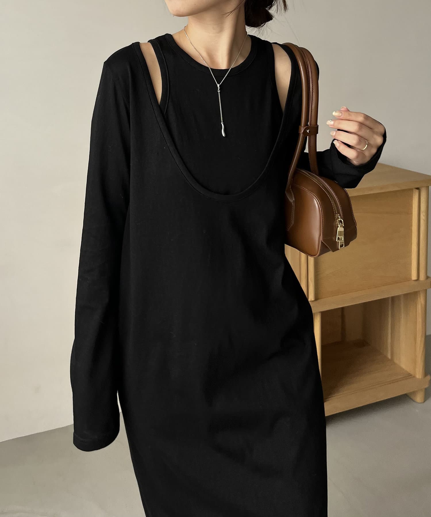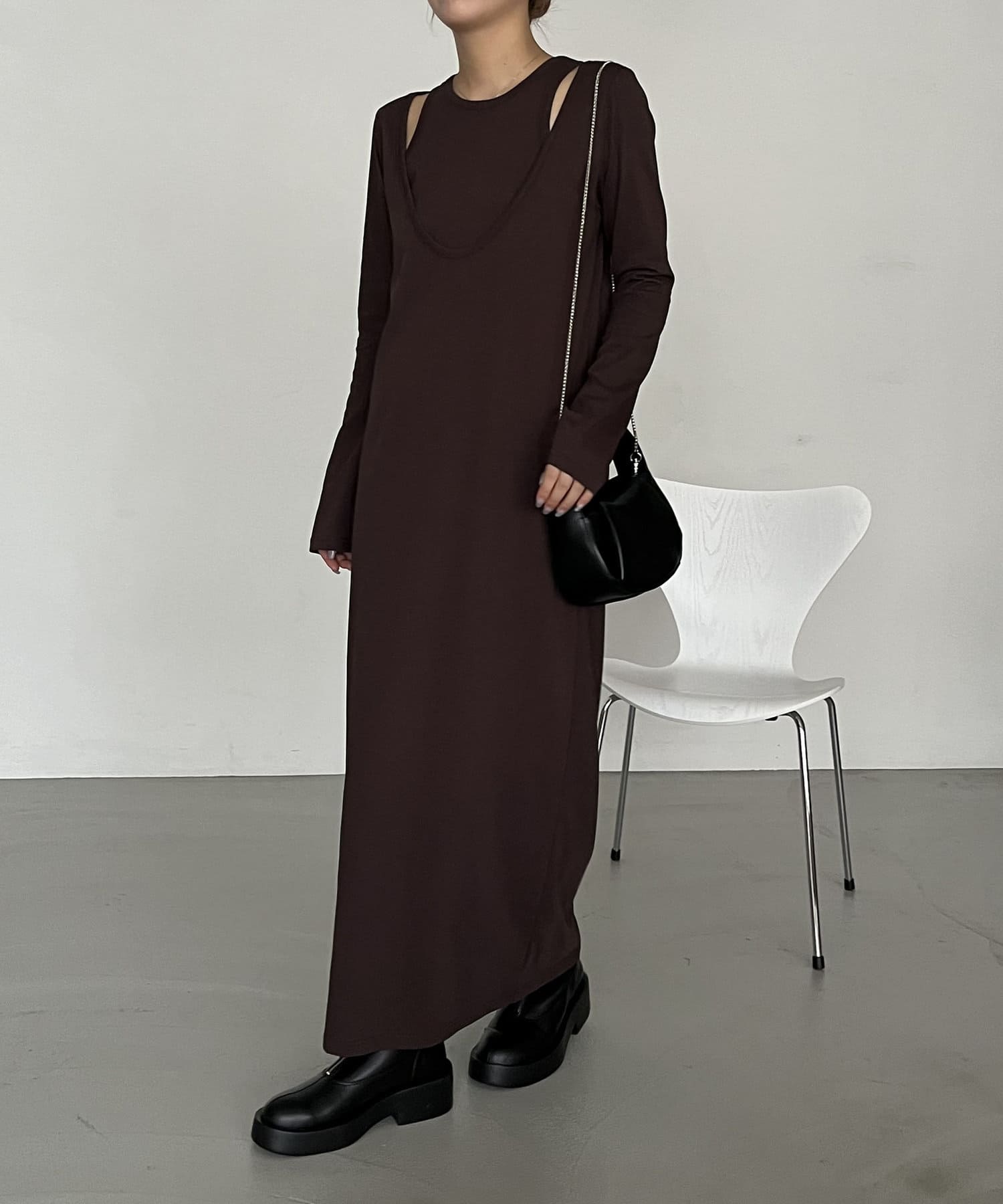 こなれた雰囲気に仕上げてくれるレイヤードワンピース
