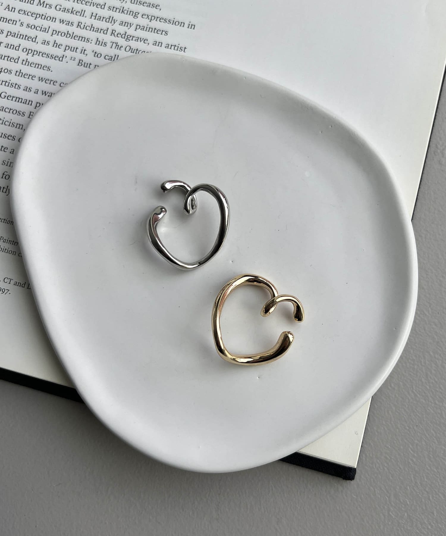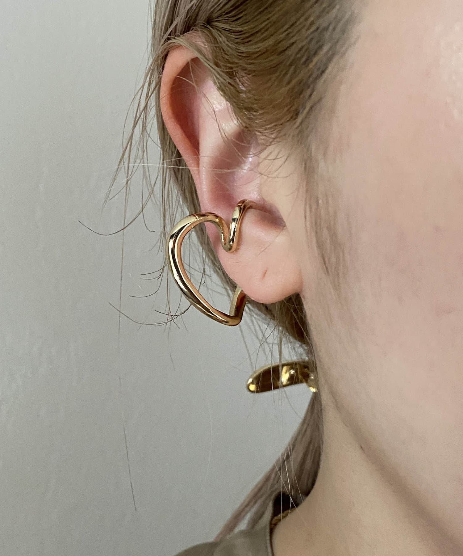 横から見るとハート型のイヤカフ。