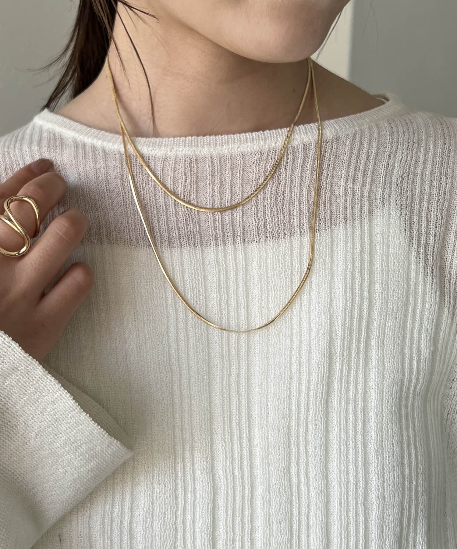 シンプルに1本で付けたり、お手持ちのネックレスと重ね付けしても◎