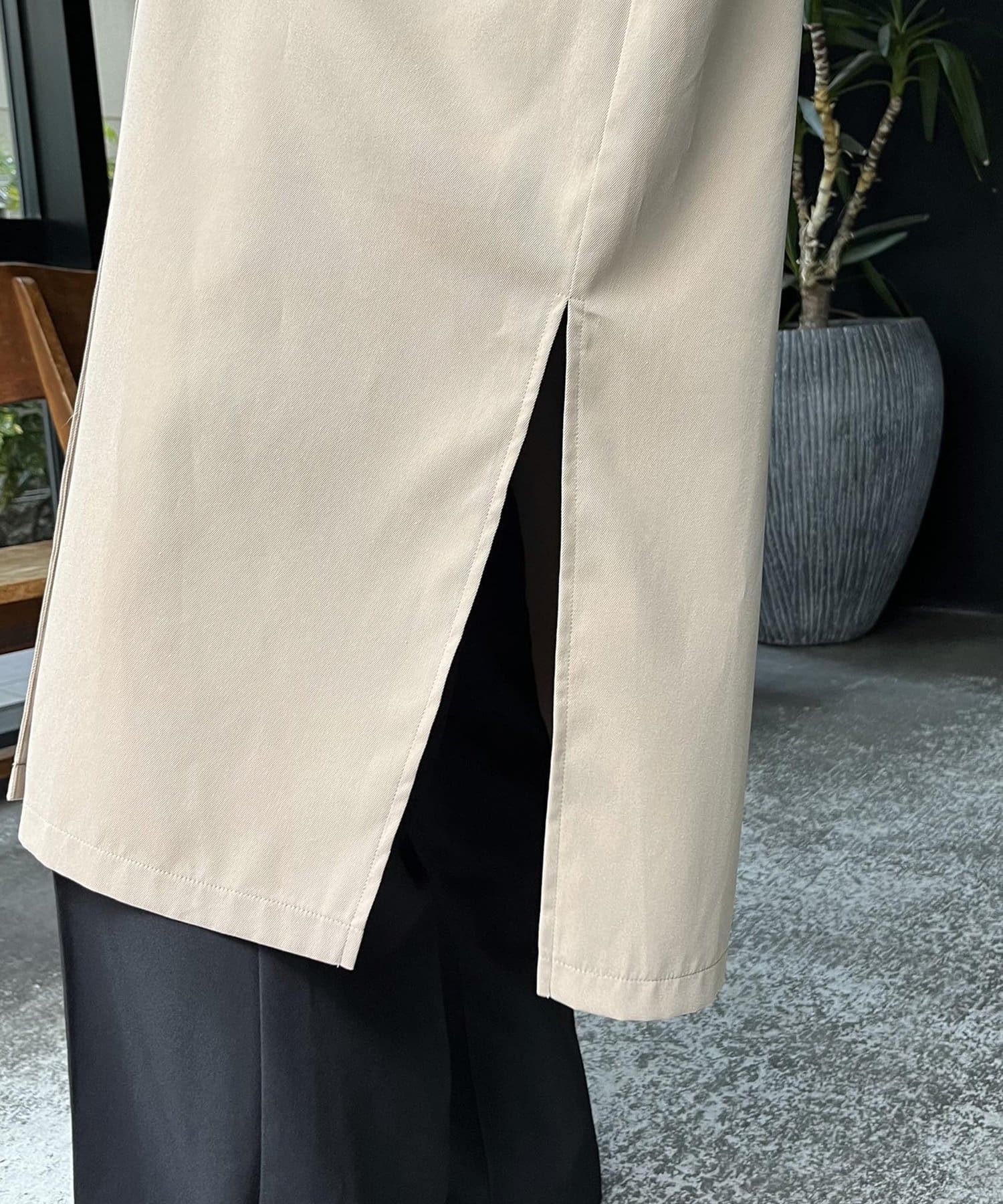 ・ヒップが隠れる長めの丈で、サイドスリットを施した動きのあるデザインが特徴