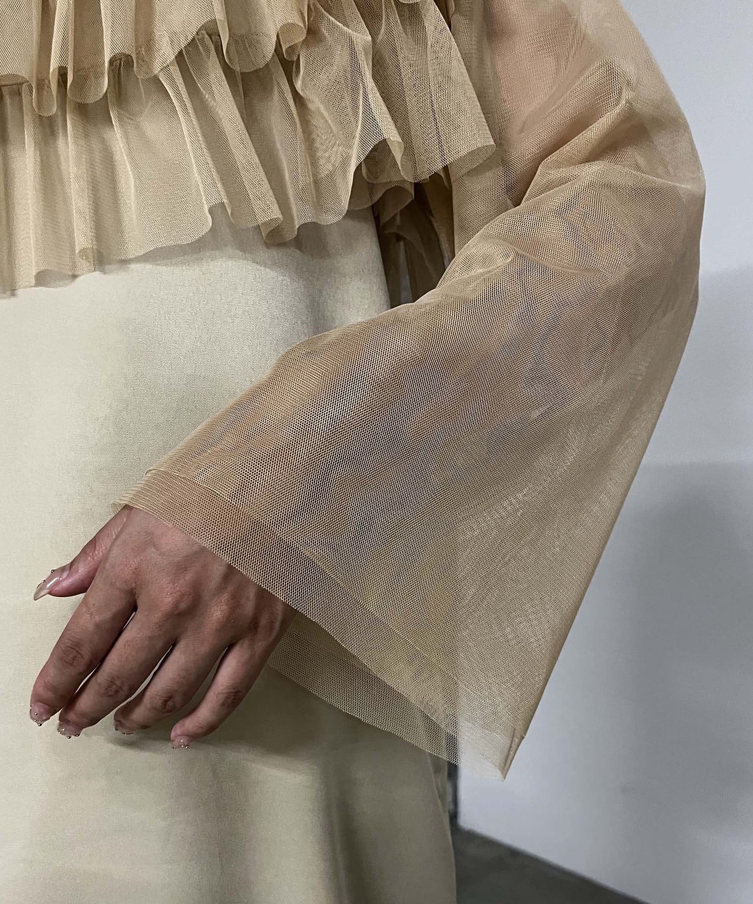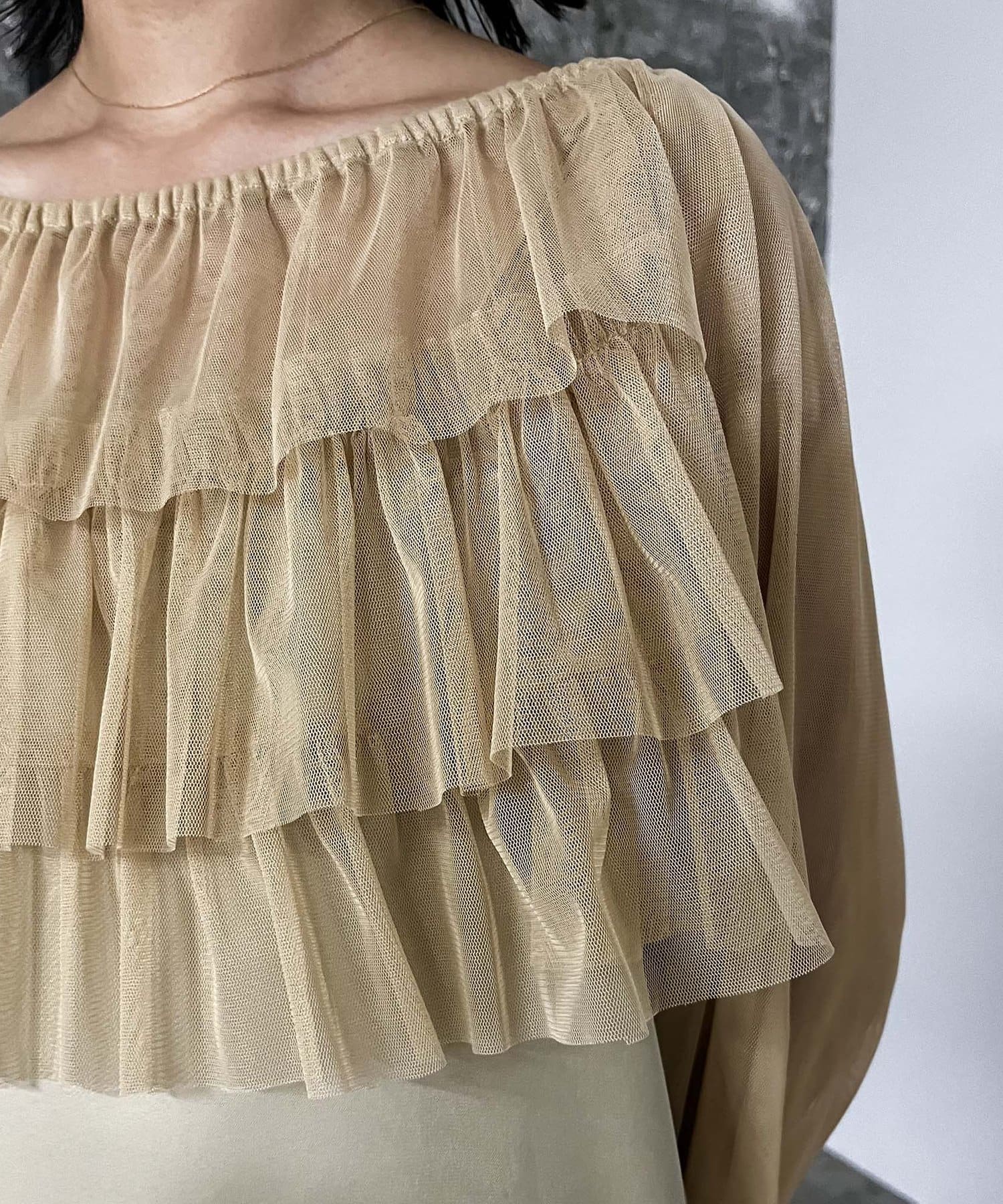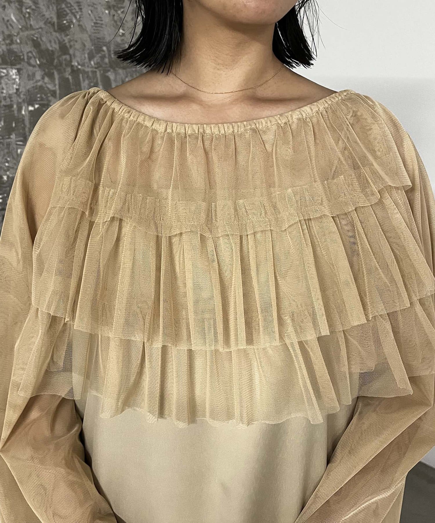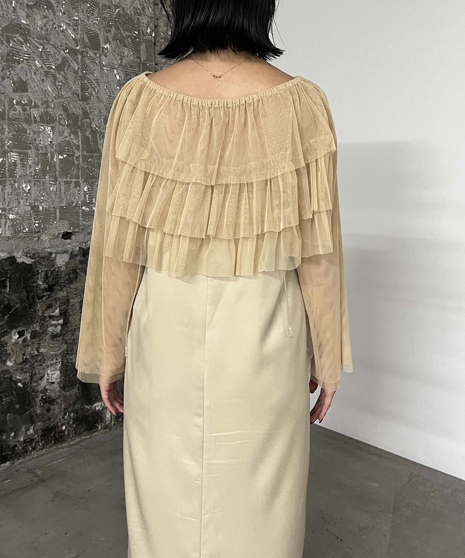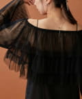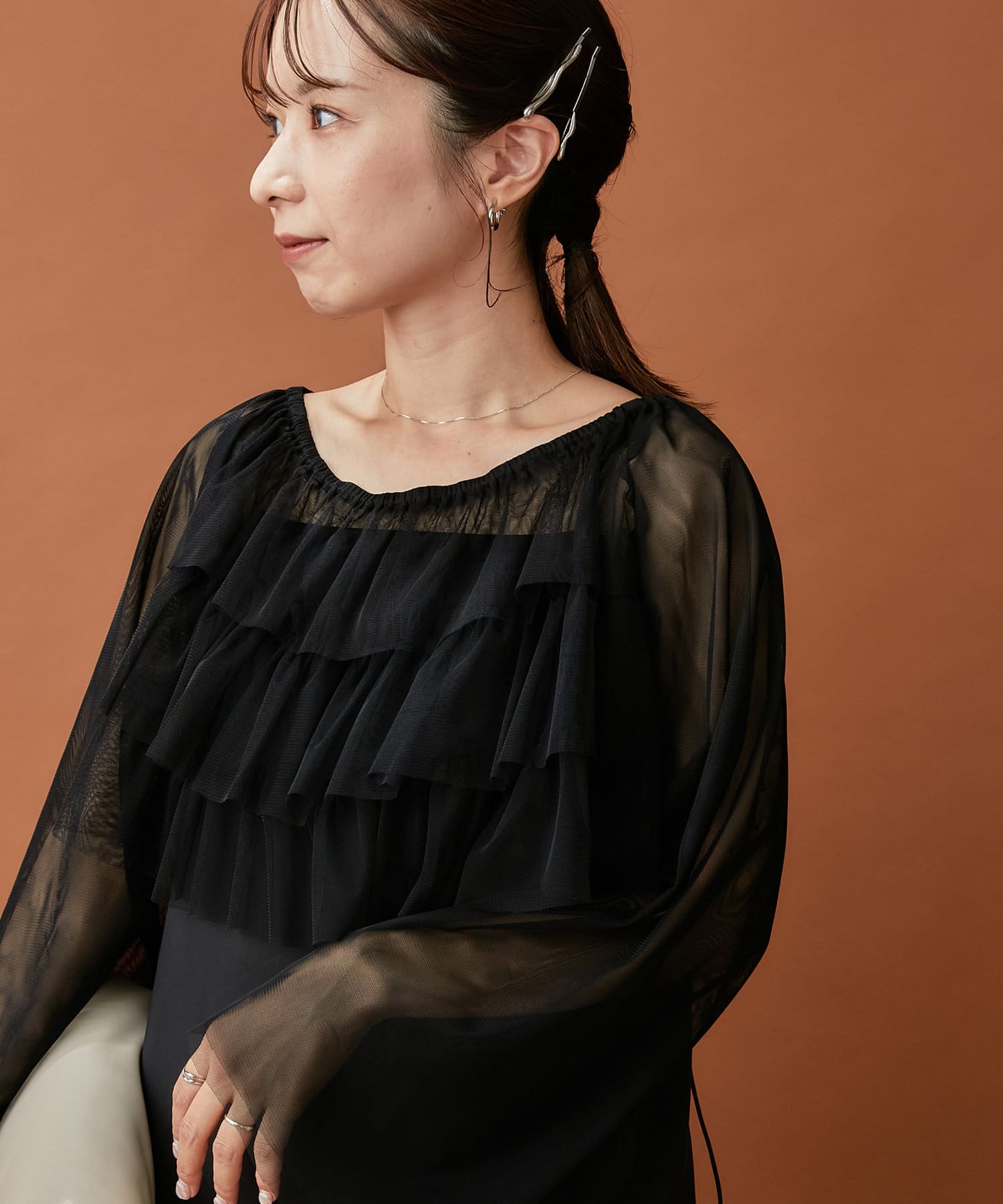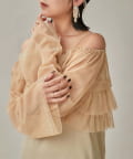 ・ブラウスは透け感のあるチュールで華やかな雰囲気