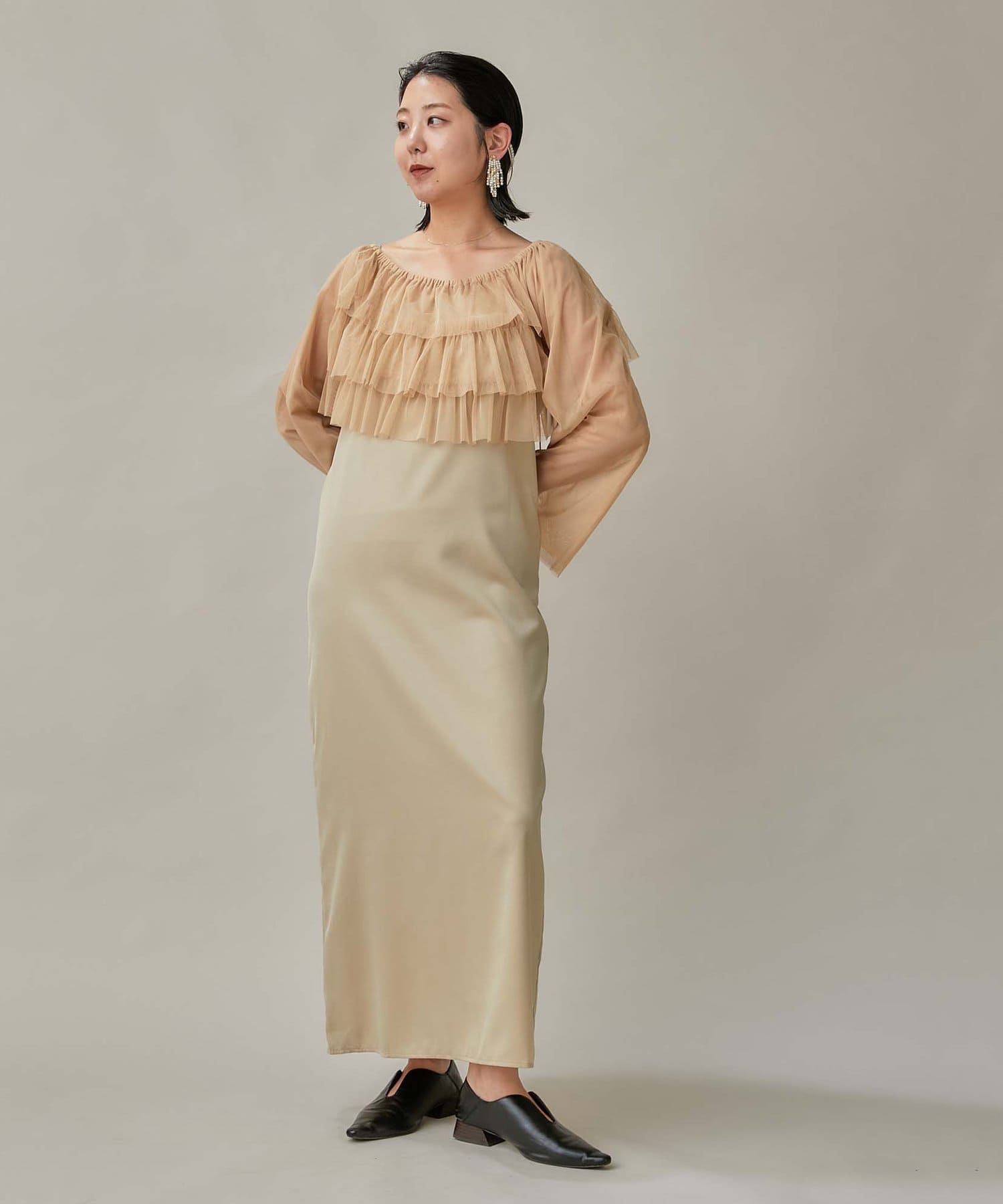クロップ丈のチュールブラウスとワンピースがセットになったアイテム
