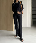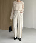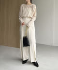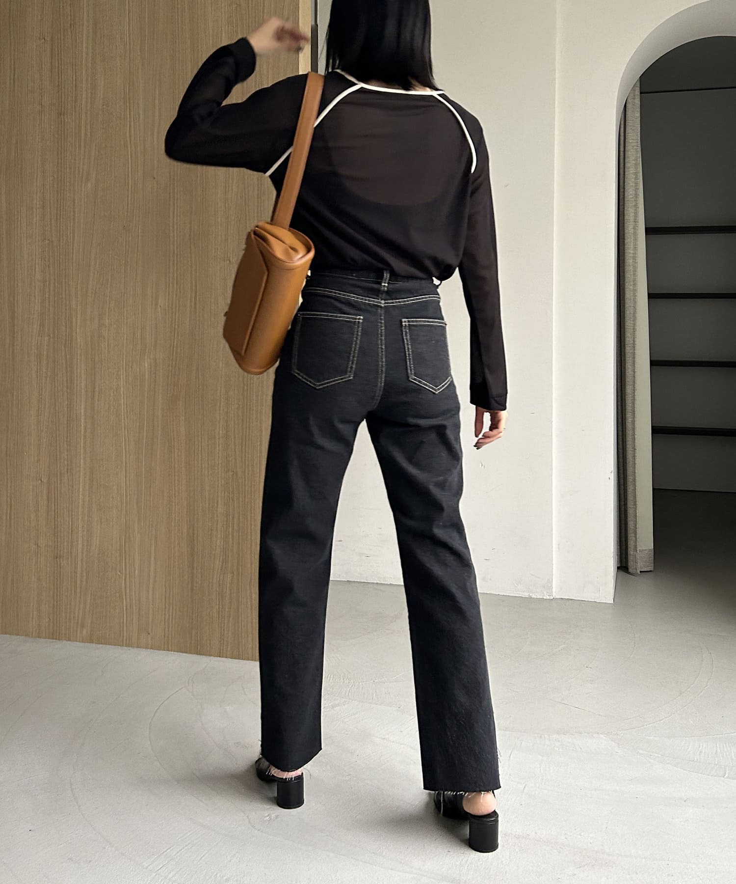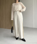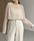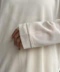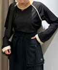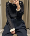 サンプル商品で撮影を行っており、実際の商品は袖口にホワイトのパイピングが施されております。