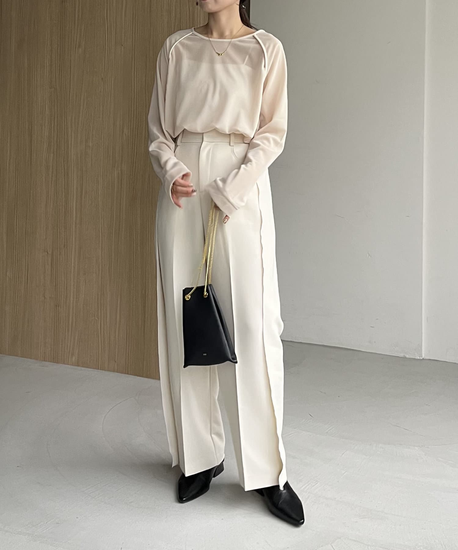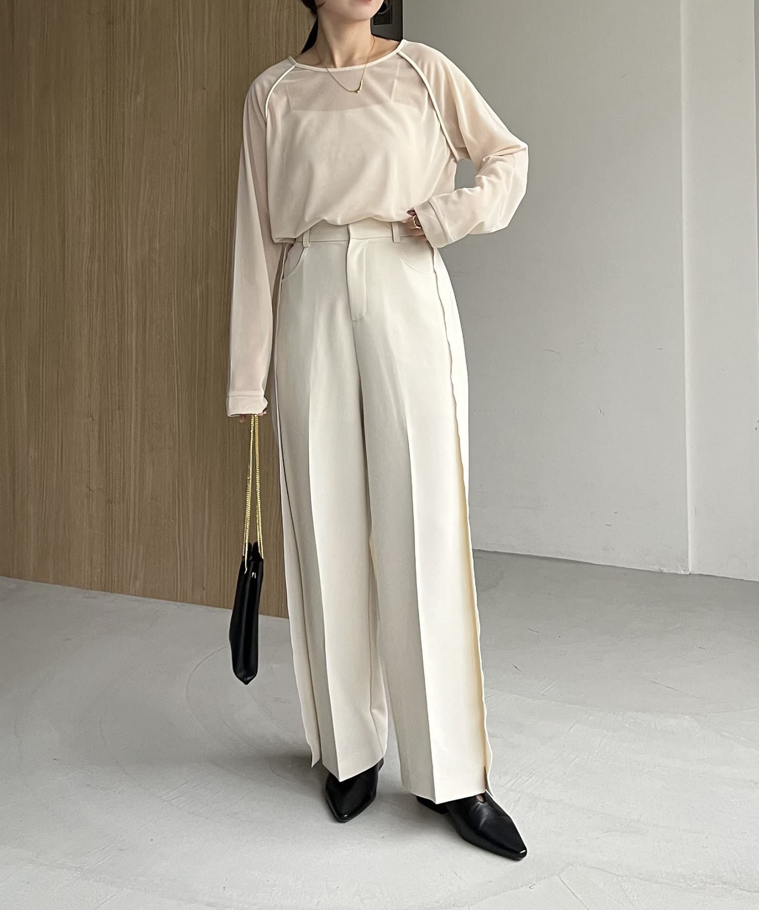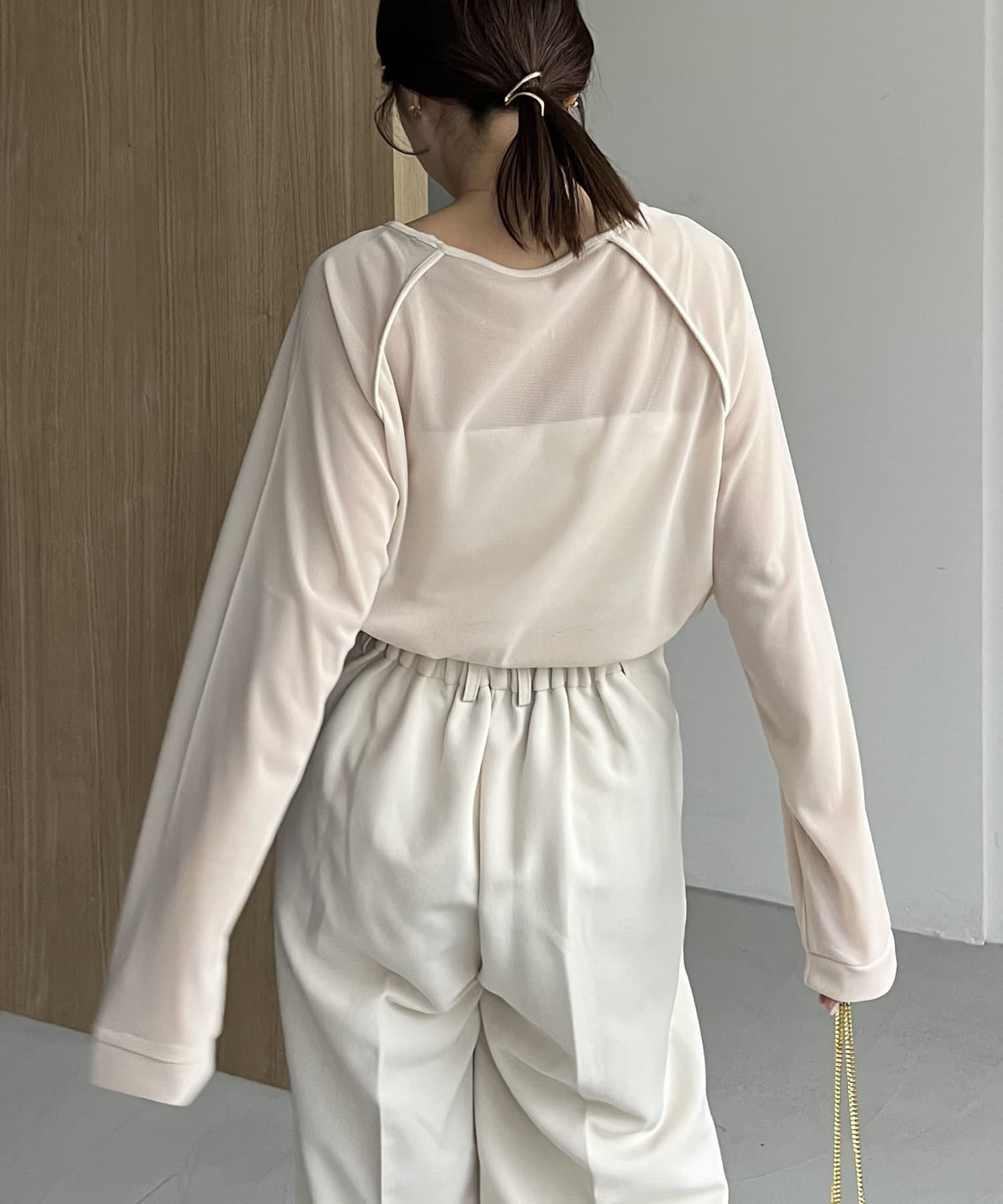 ・ラグランライン、裾、ネックのパイピングがアクセントに