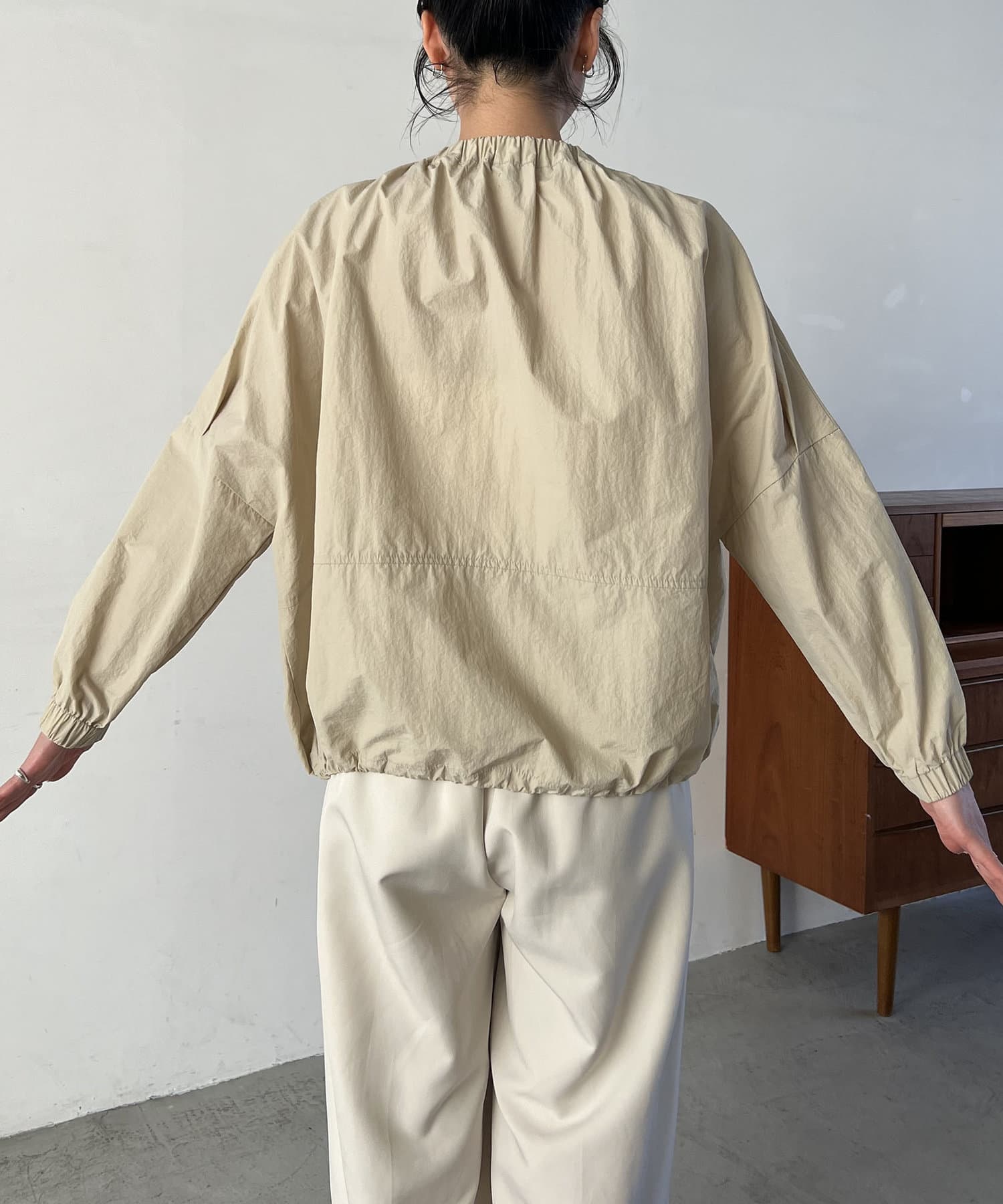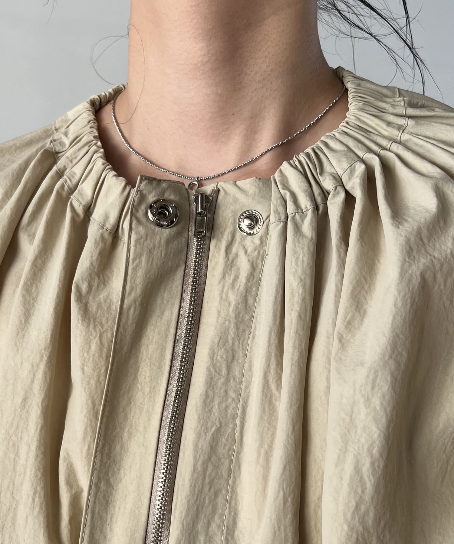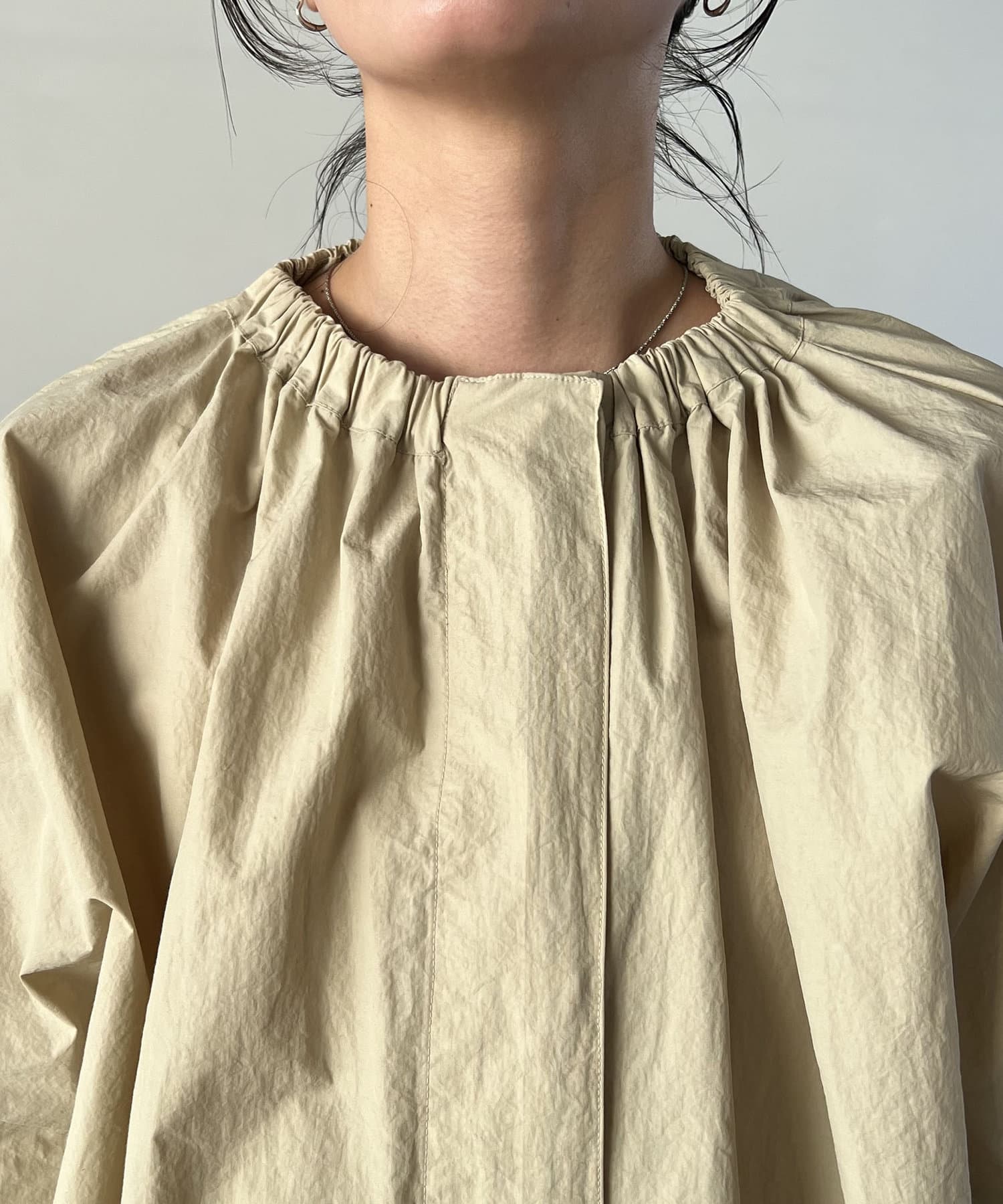 ネック部分のギャザーがポイントのナイロンブルゾン