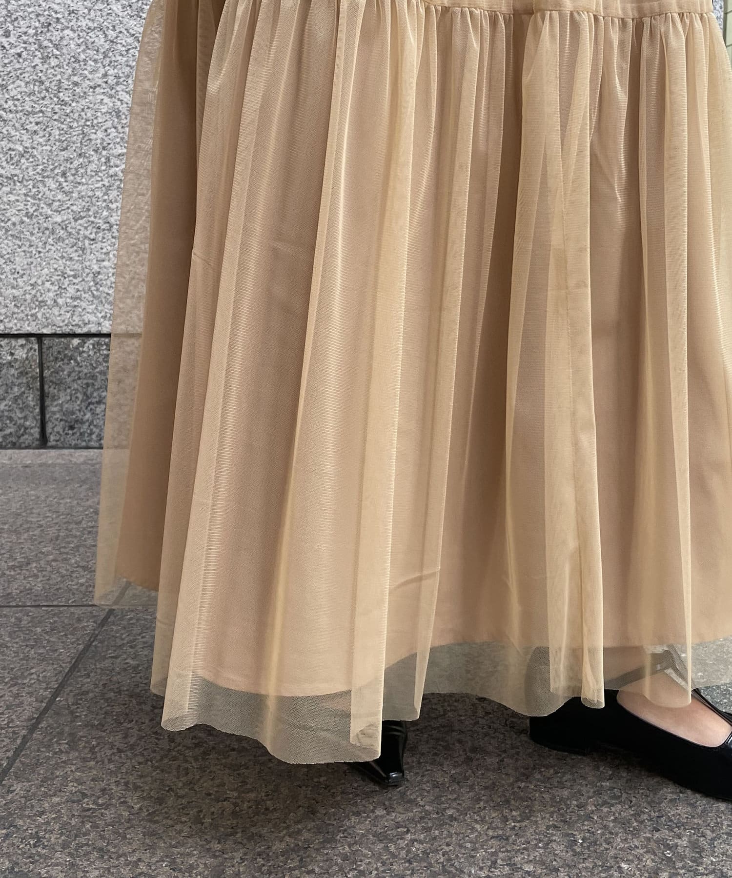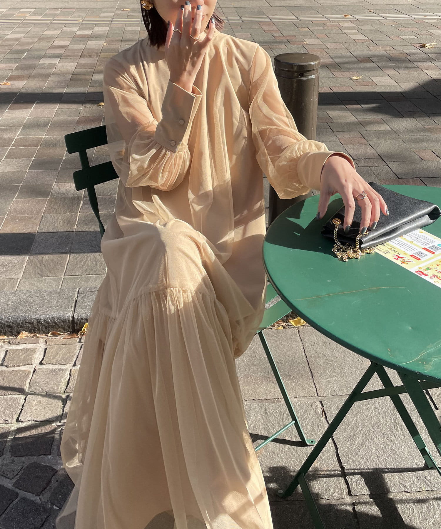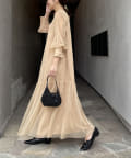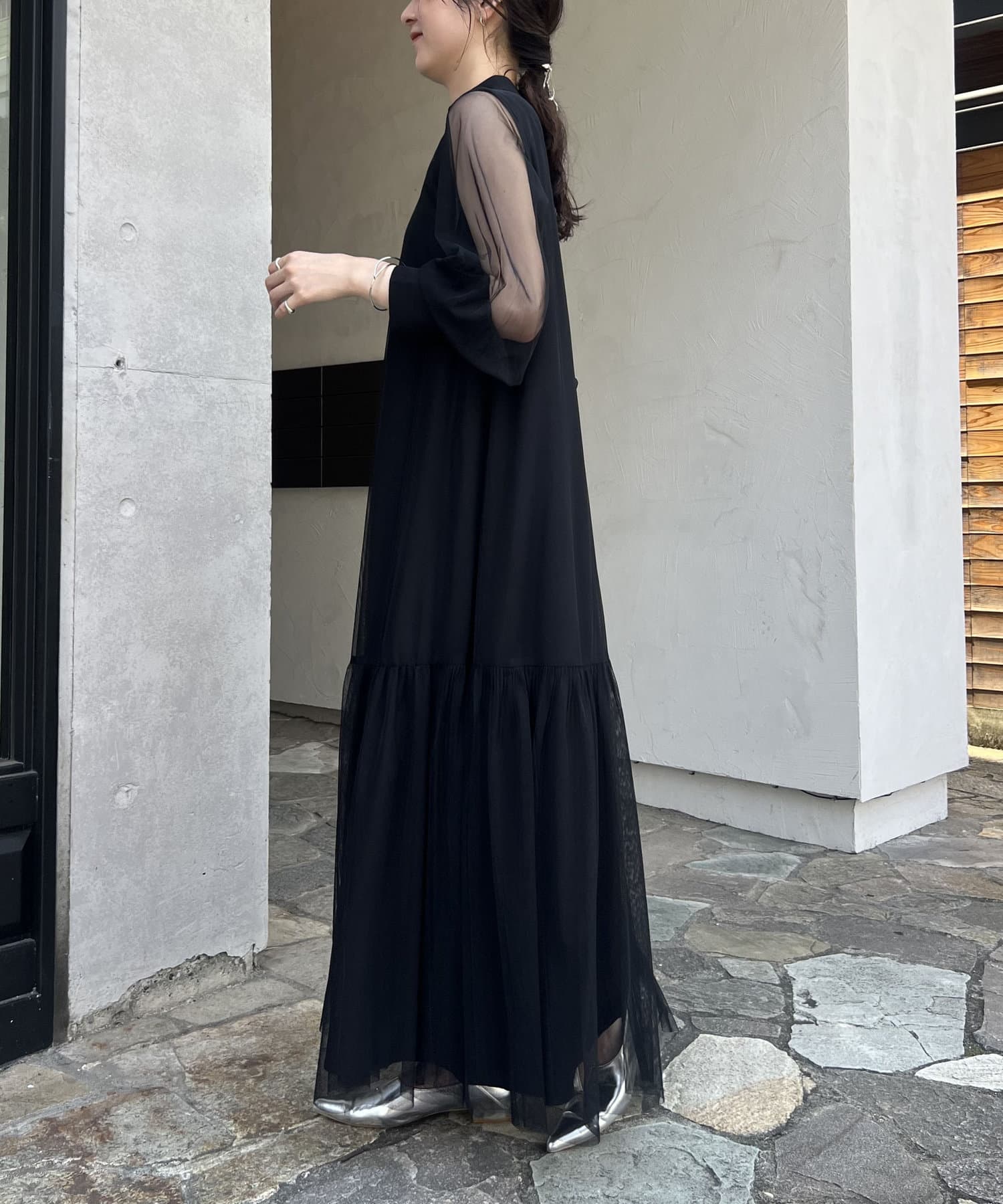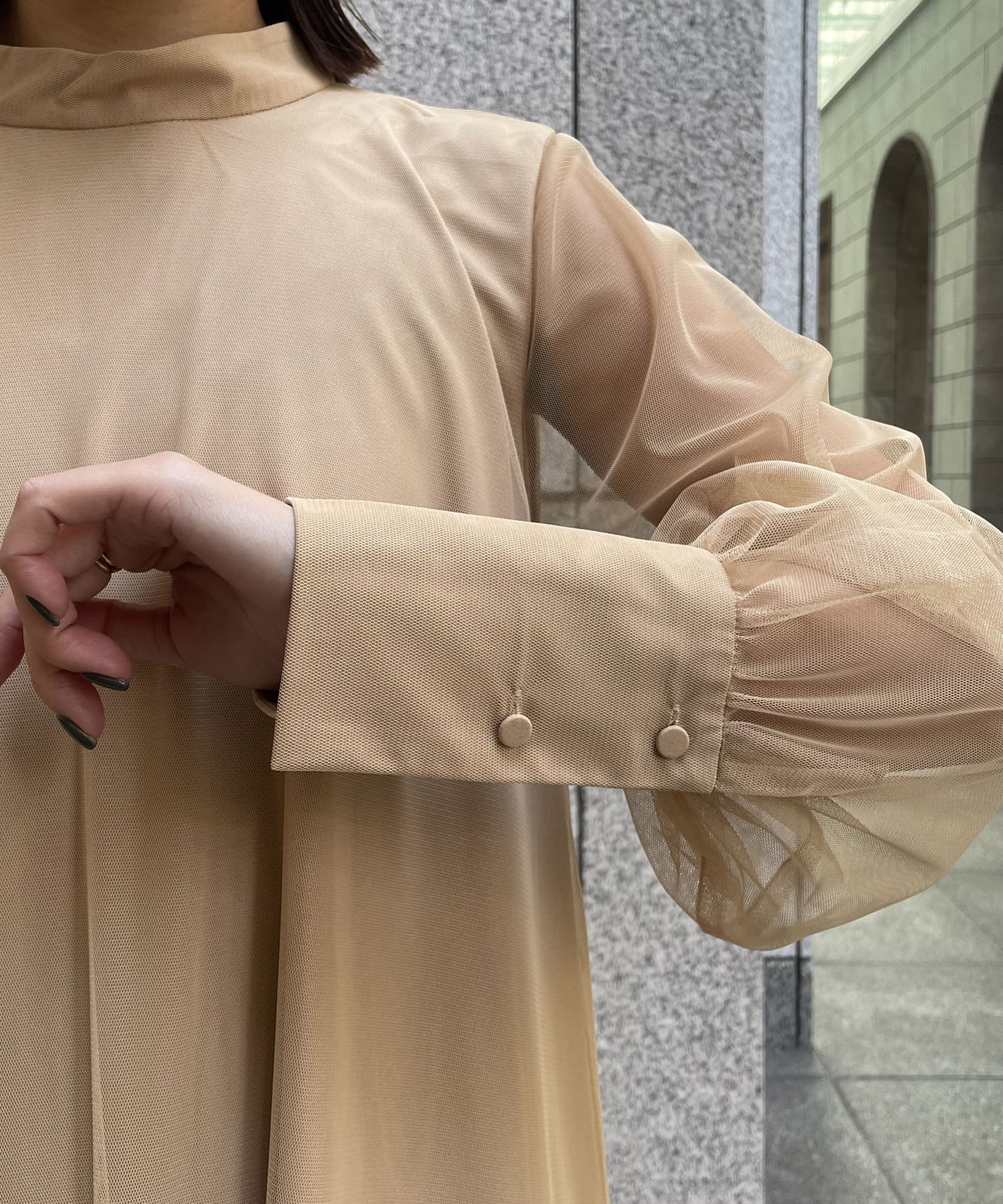 ・全体がチュール素材で袖と裾に透け感のある女性らしい1枚