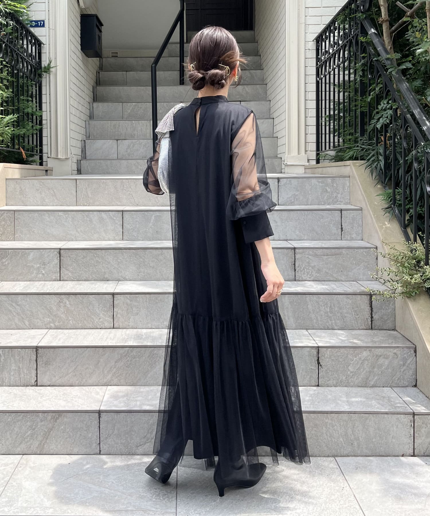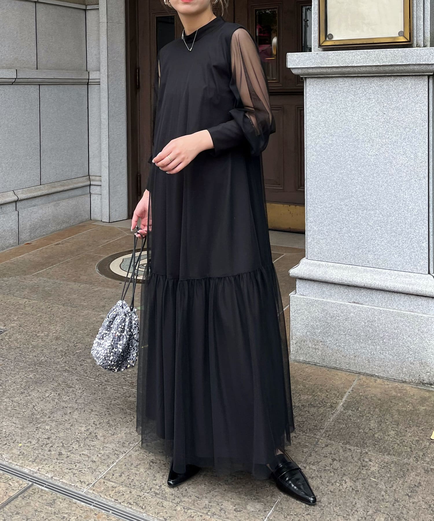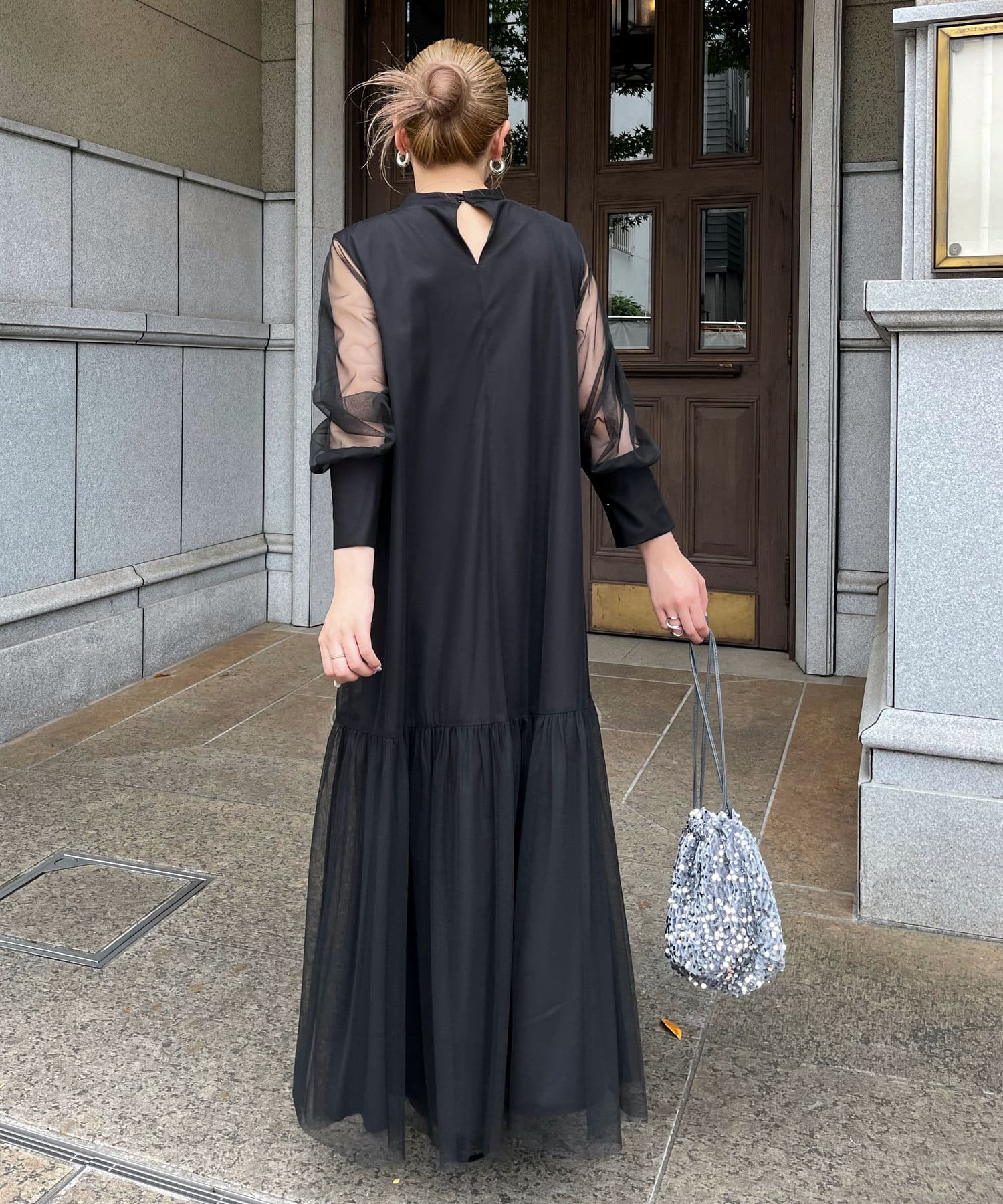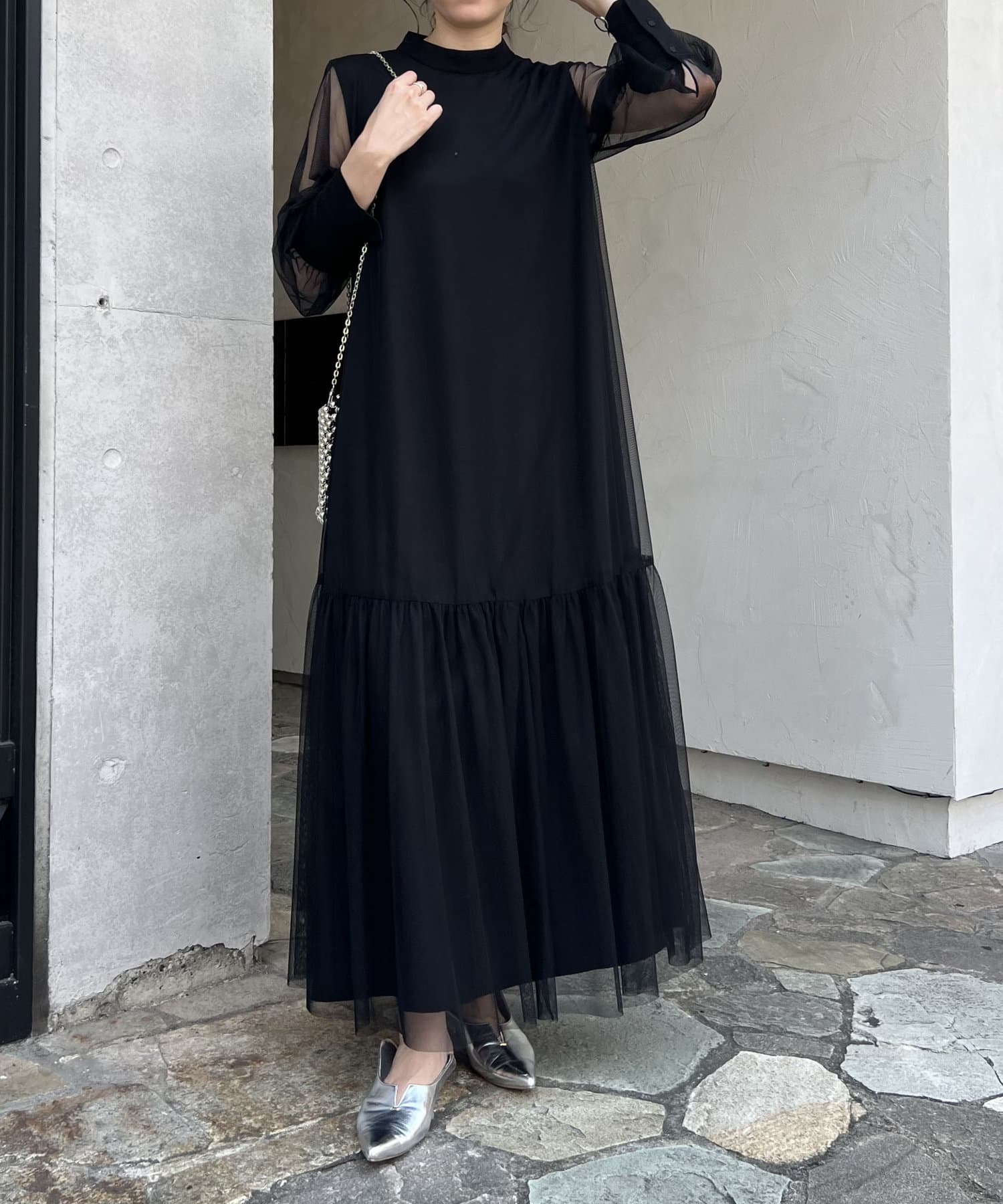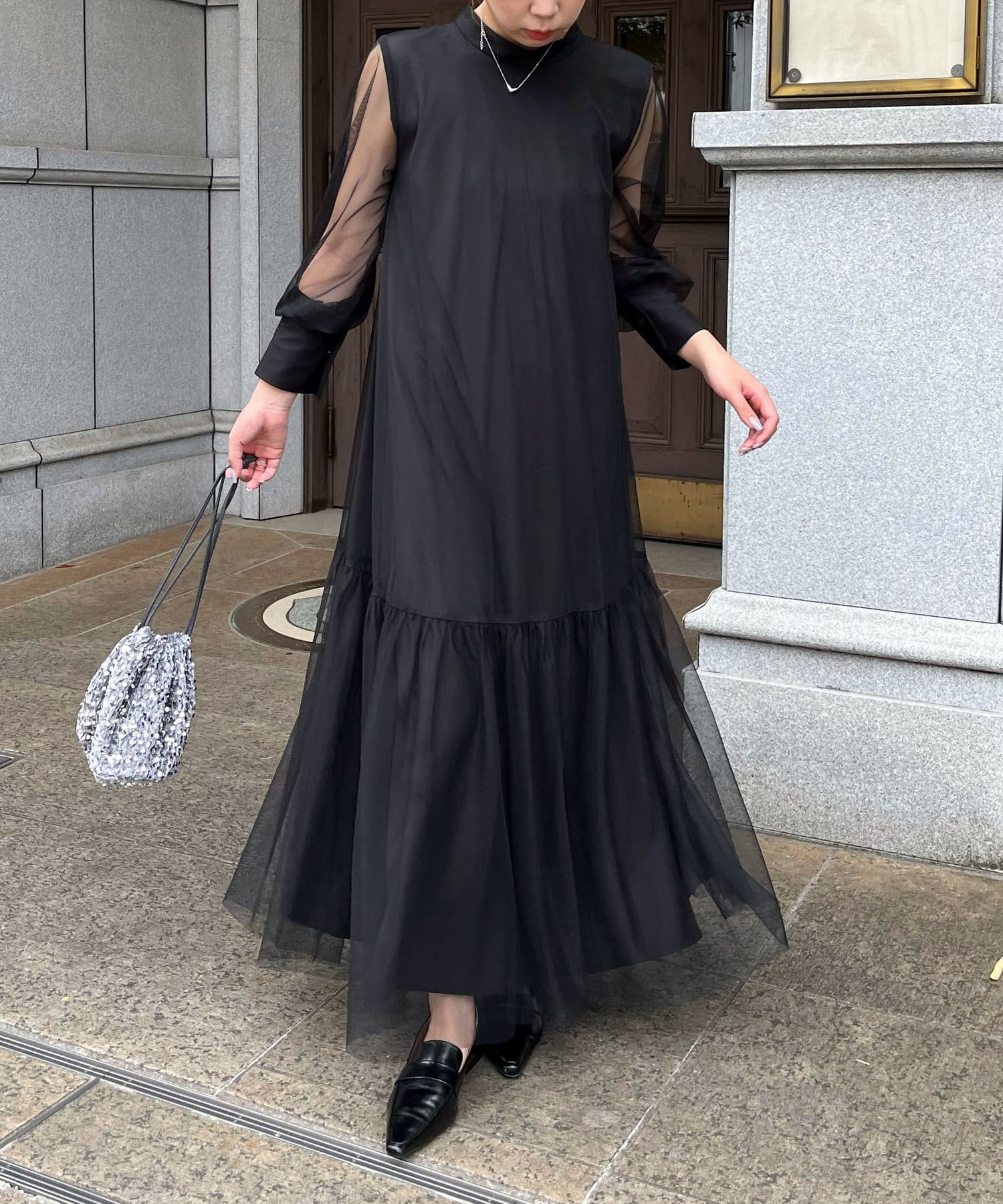 【オケージョン】【サイズ展開あり】チュールハイネックワンピース