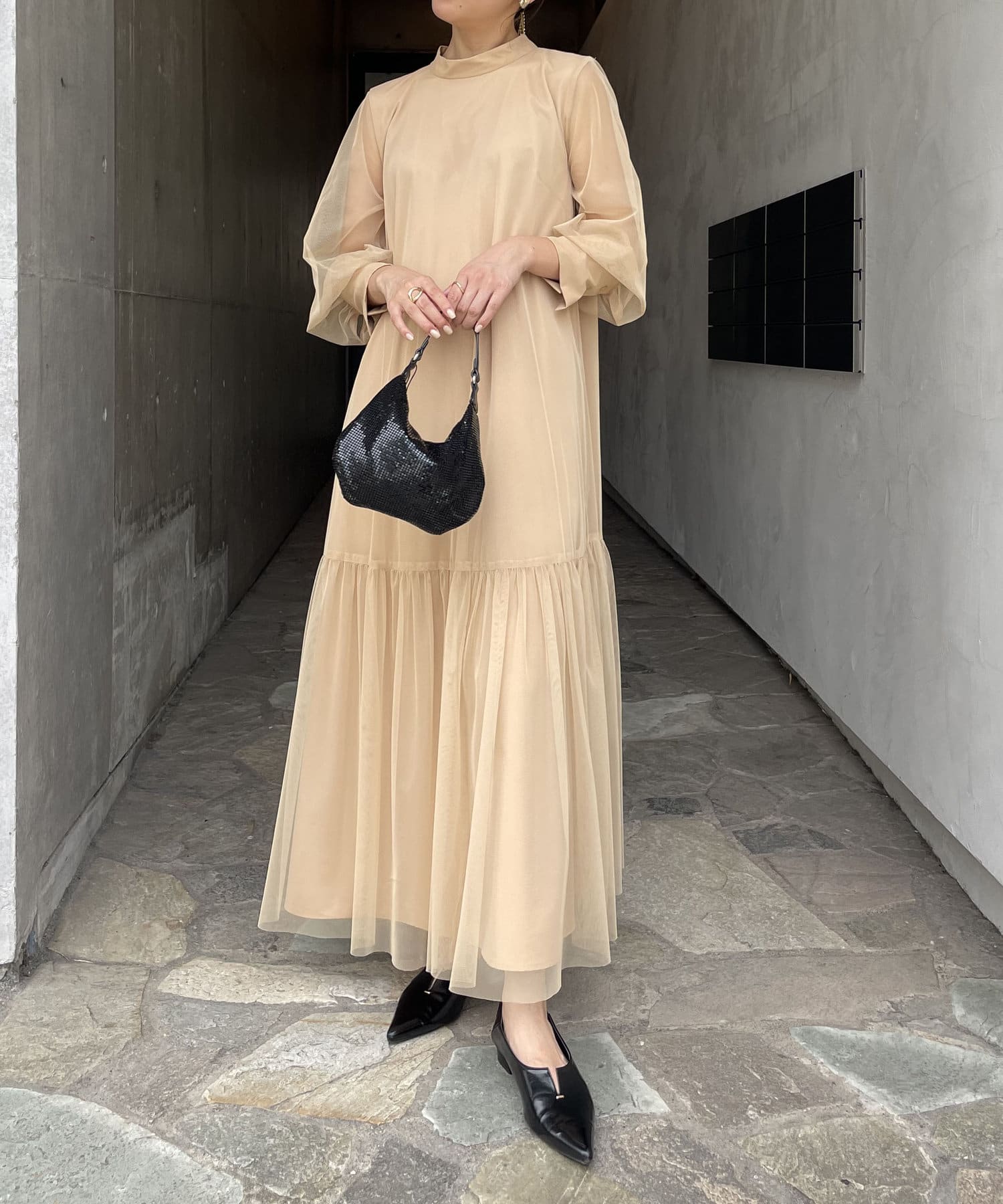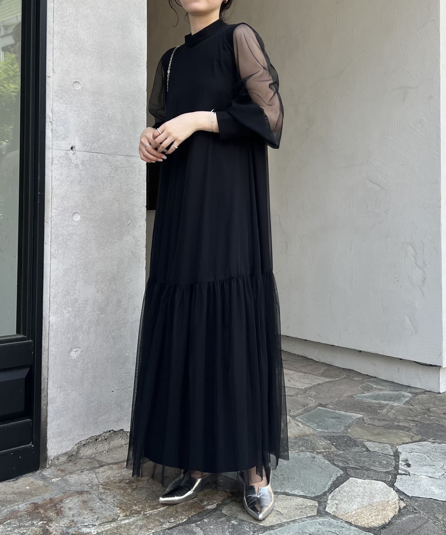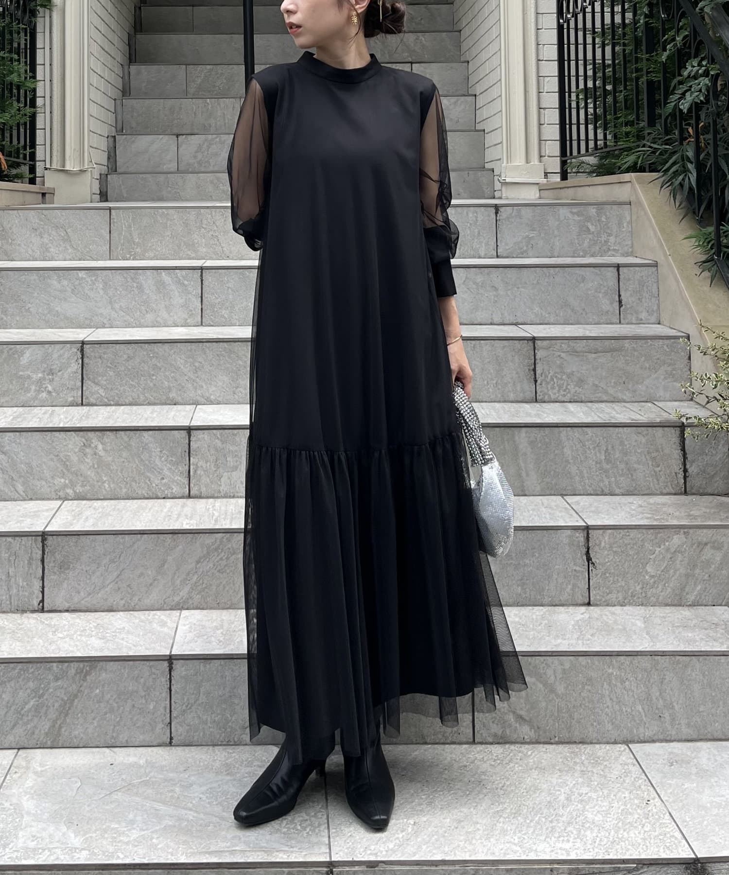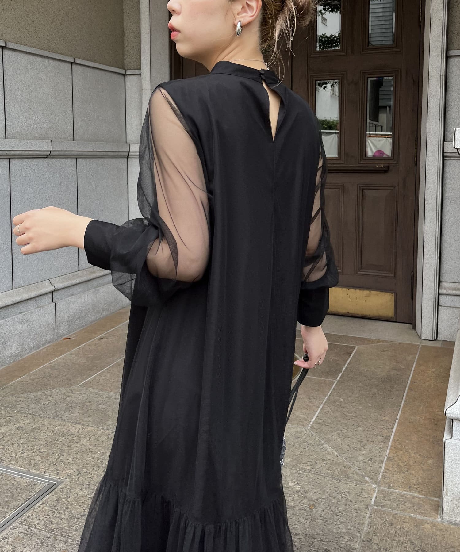 【オケージョン】【サイズ展開あり】チュールハイネックワンピース