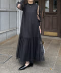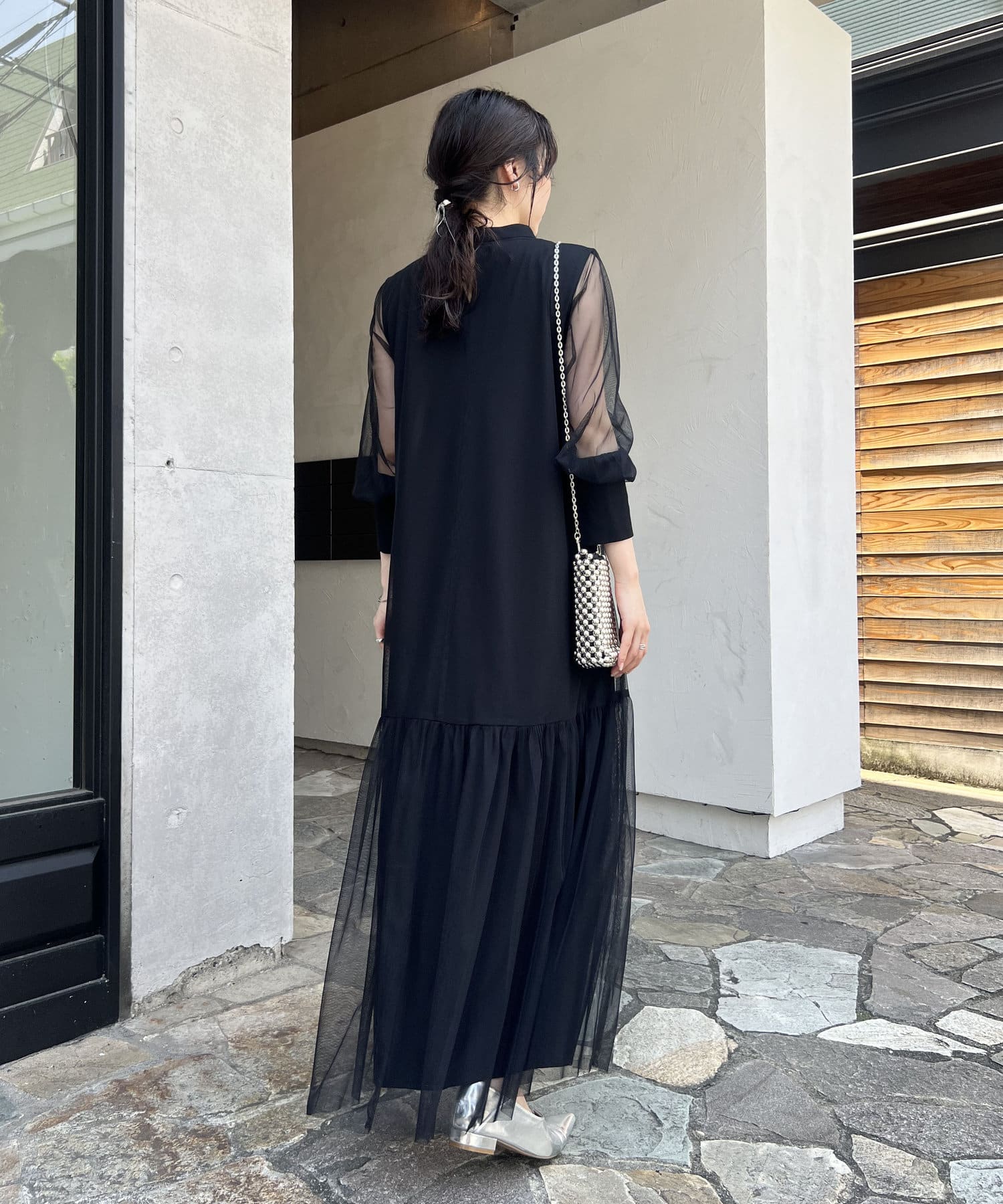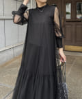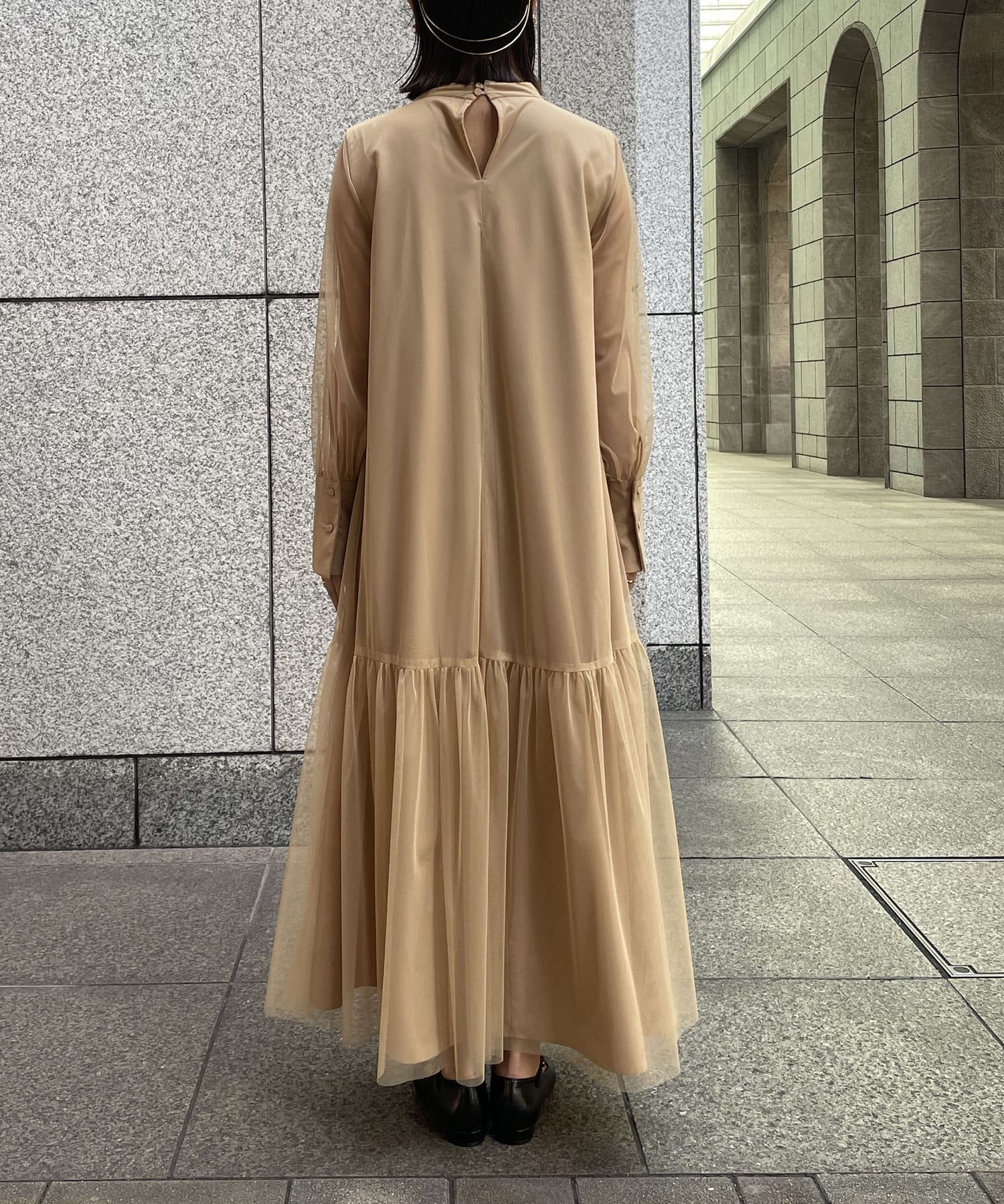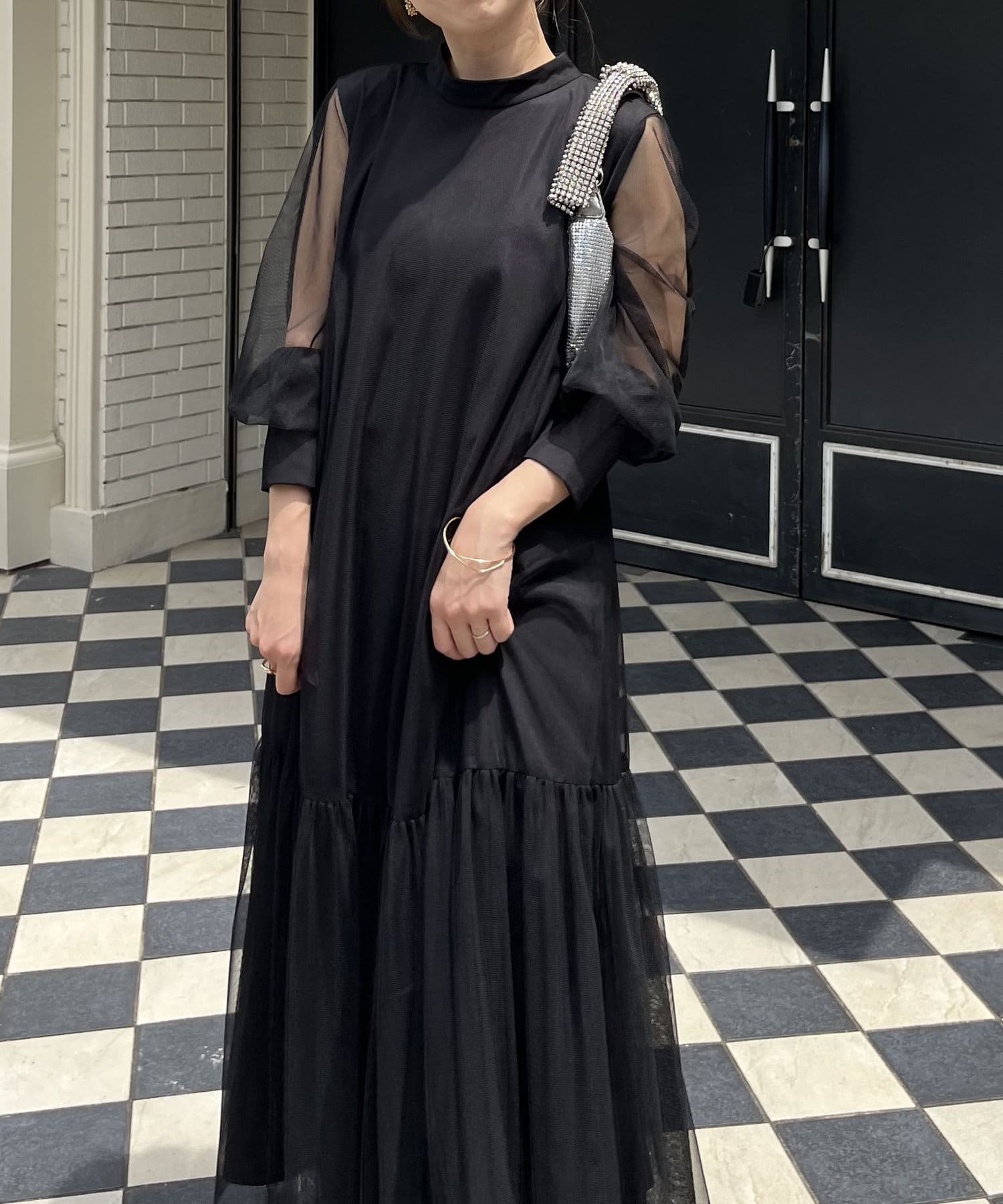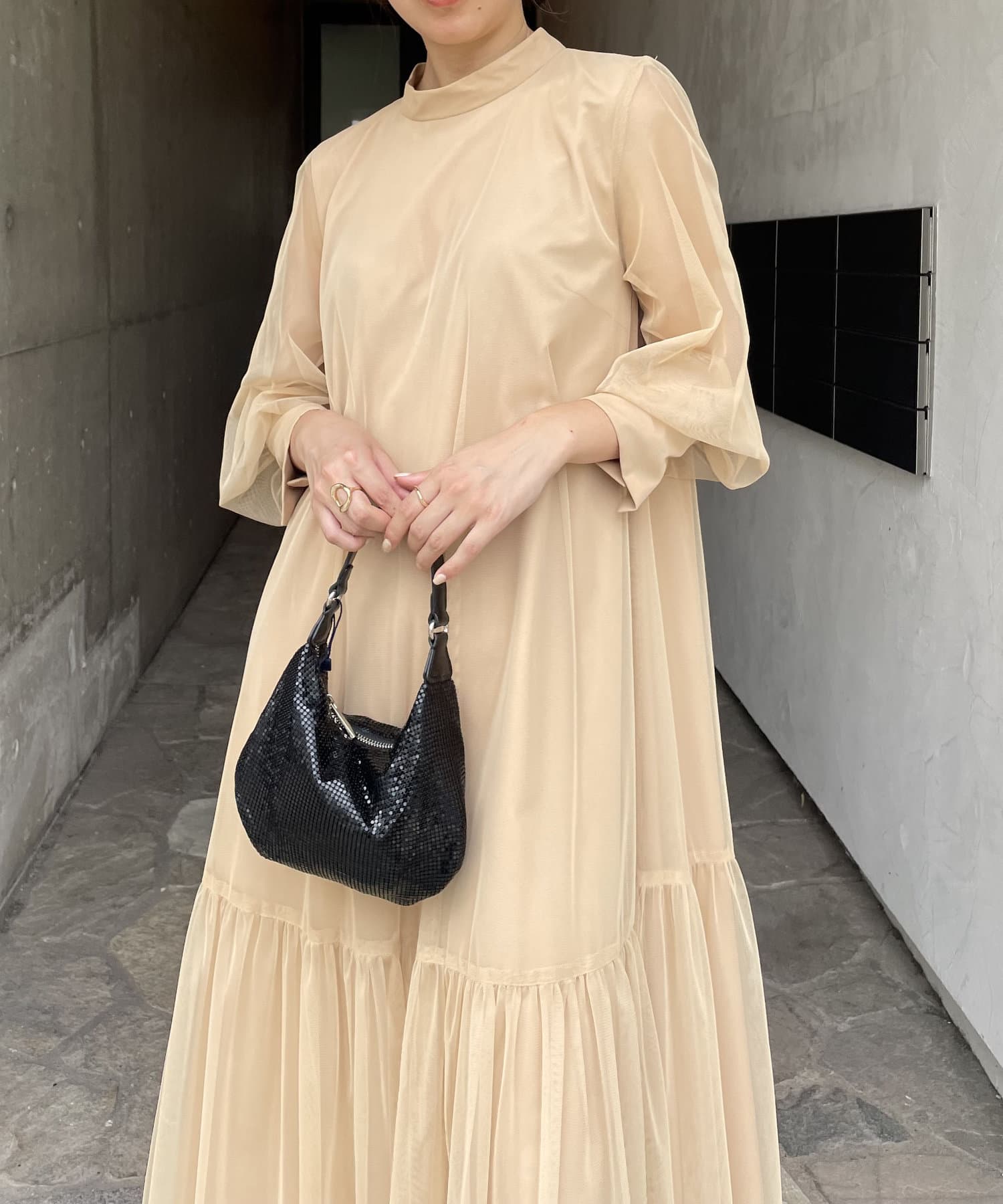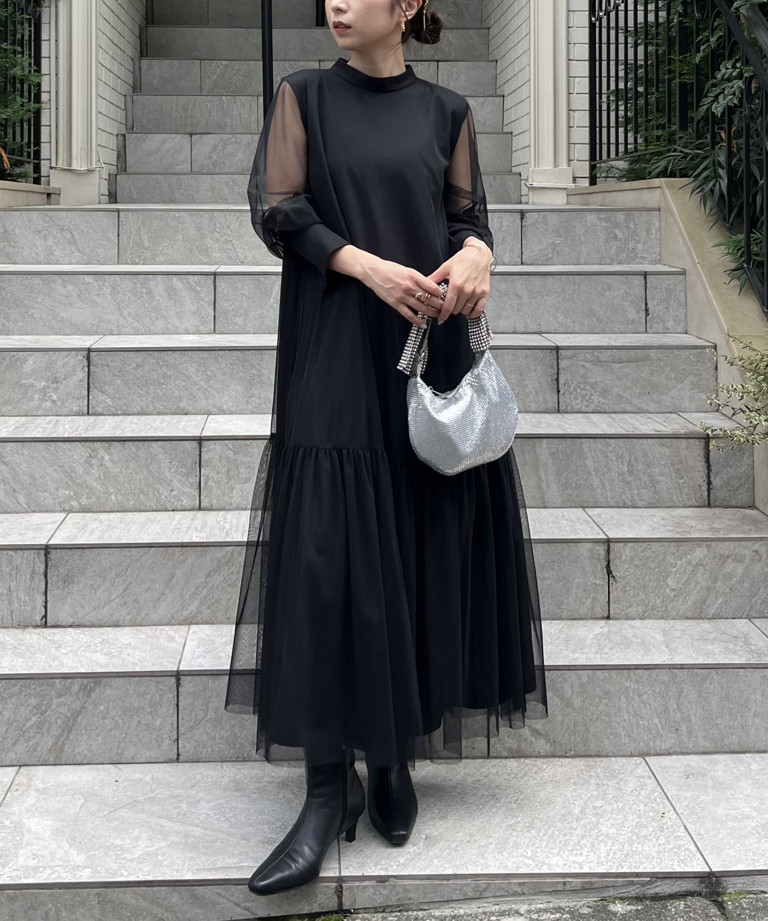 【オケージョン】【サイズ展開あり】チュールハイネックワンピース