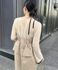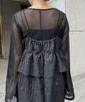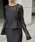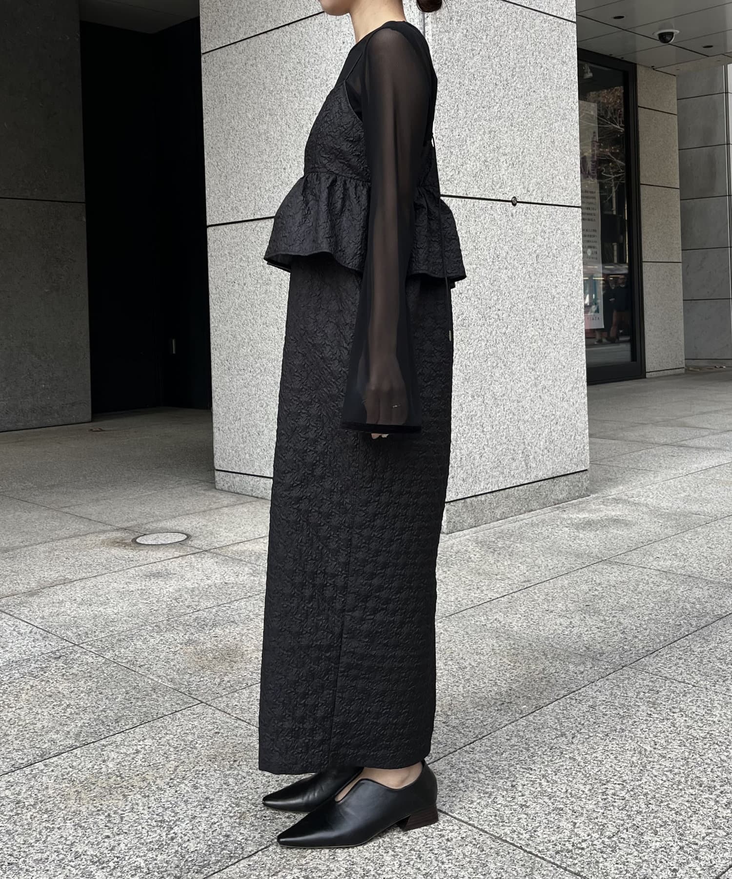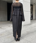 ・胸下の切替から付いたペプラムシルエットのフリルで、スタイルアップ効果抜群