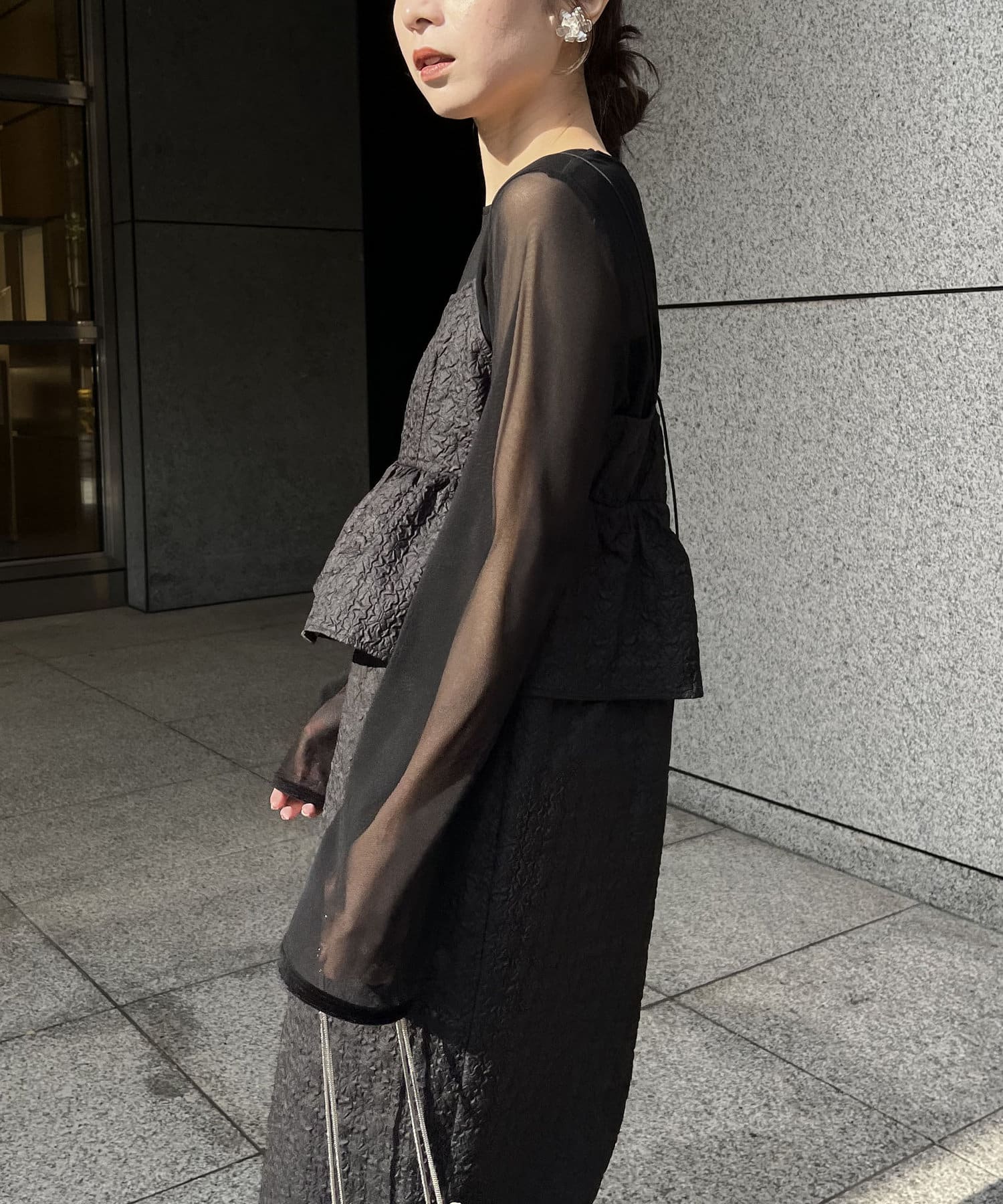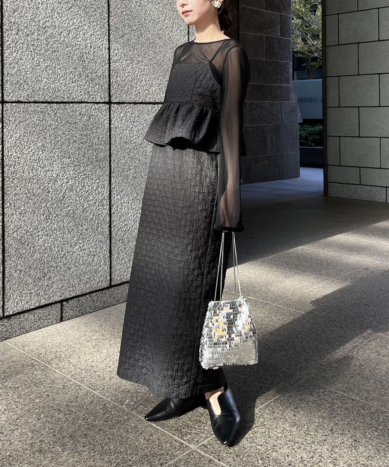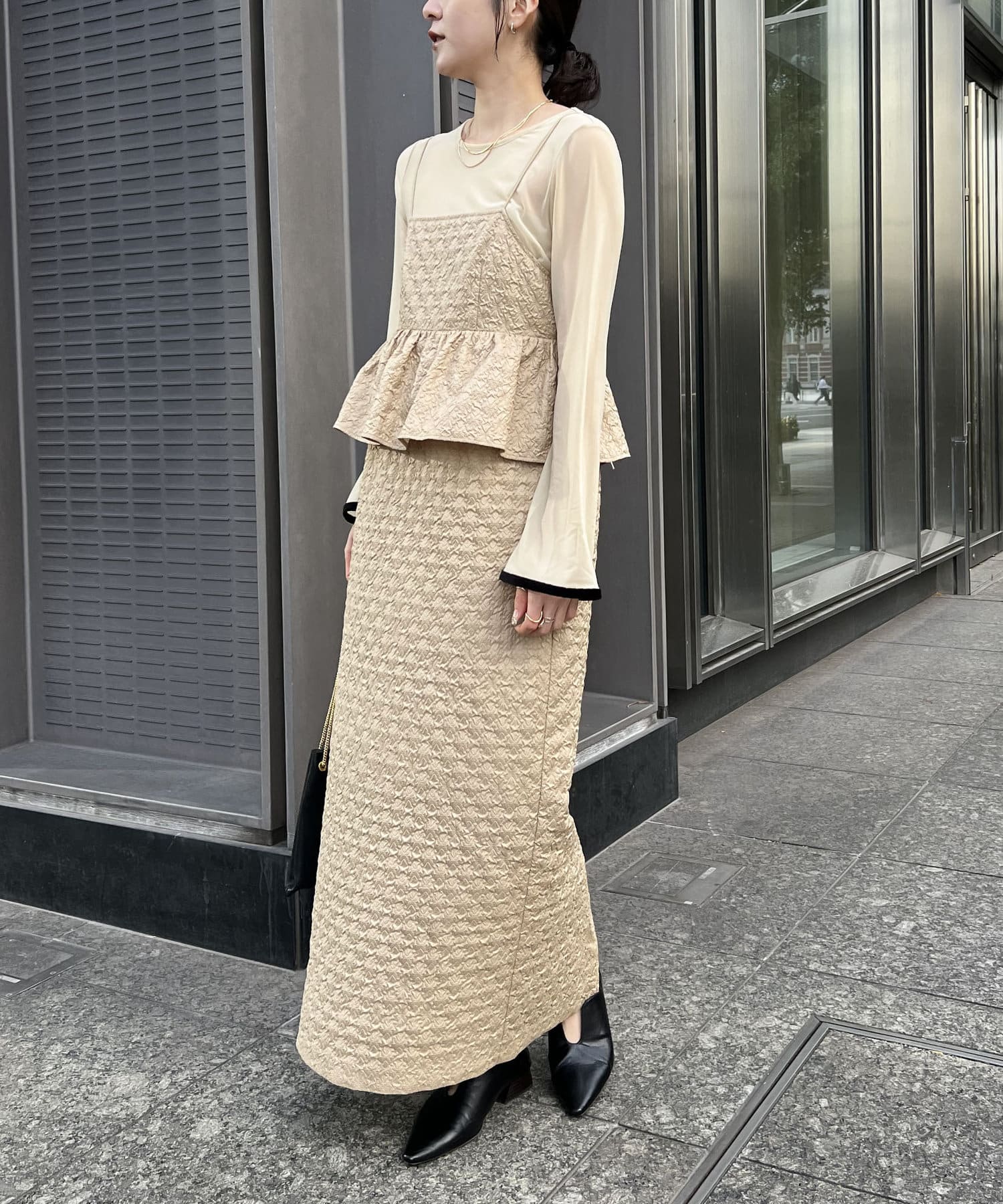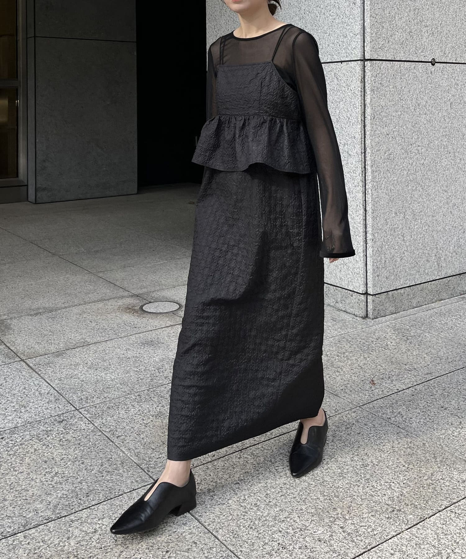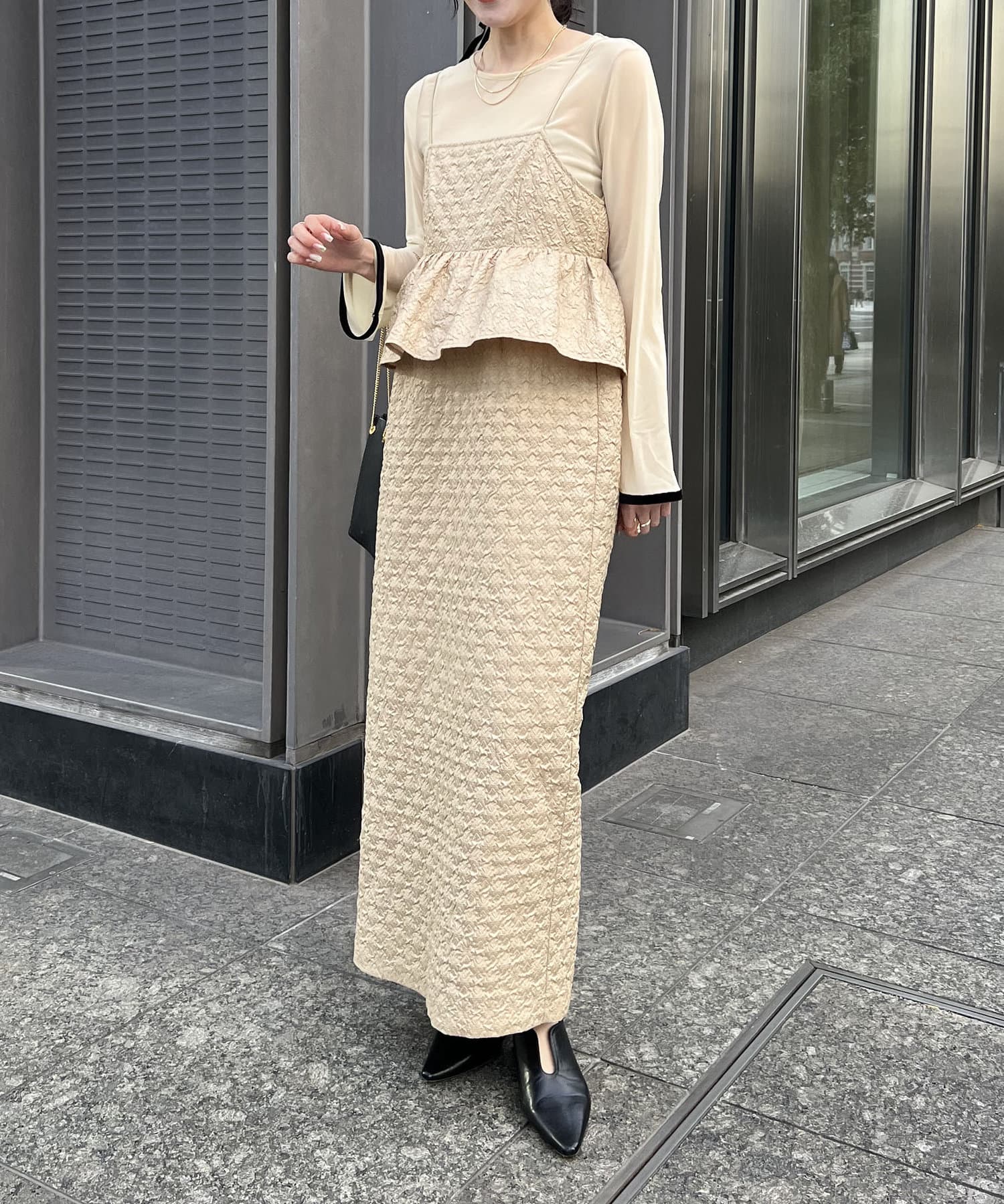 インナーがセットの凹凸感のあるエンボス加工を施したキャミワンピース