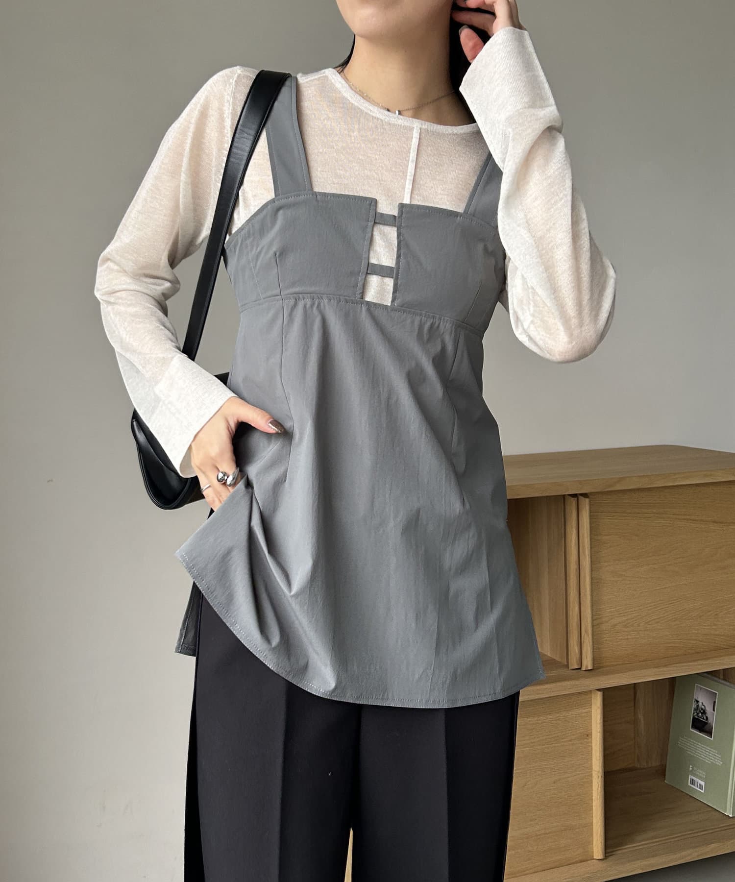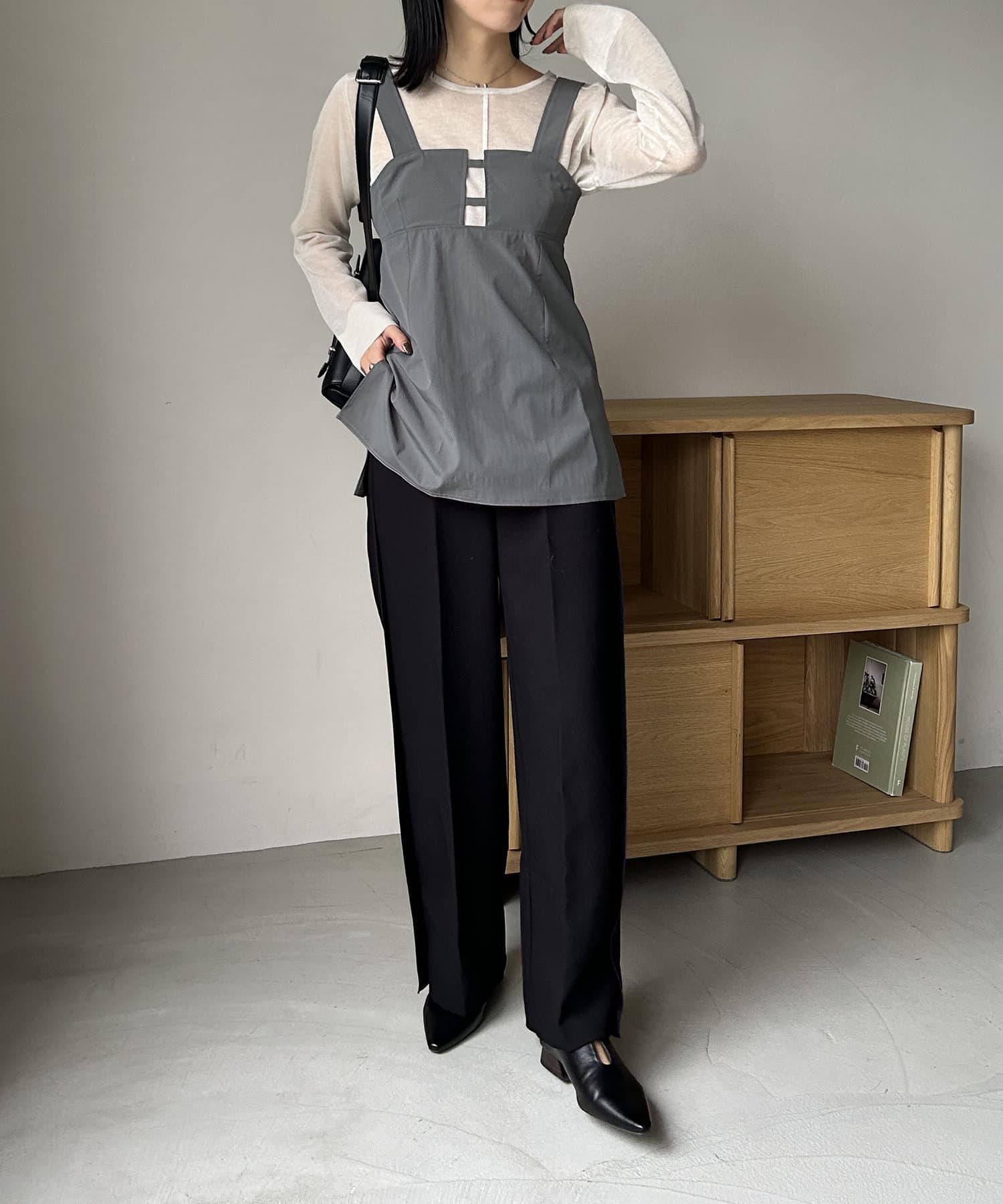 ・シアーインナーやTシャツなどレイヤードアイテムで雰囲気を変えて