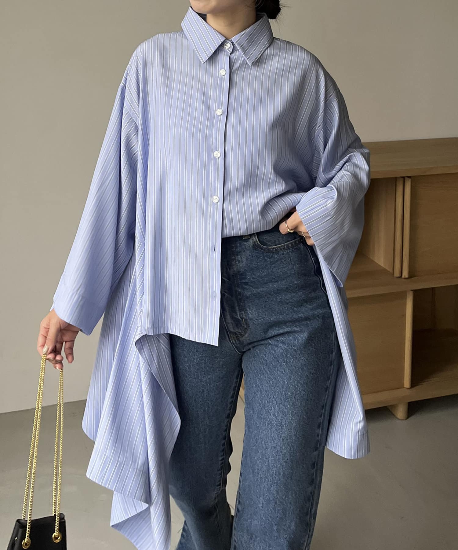 裾のヘムカットが目を惹くデザインシャツ