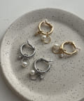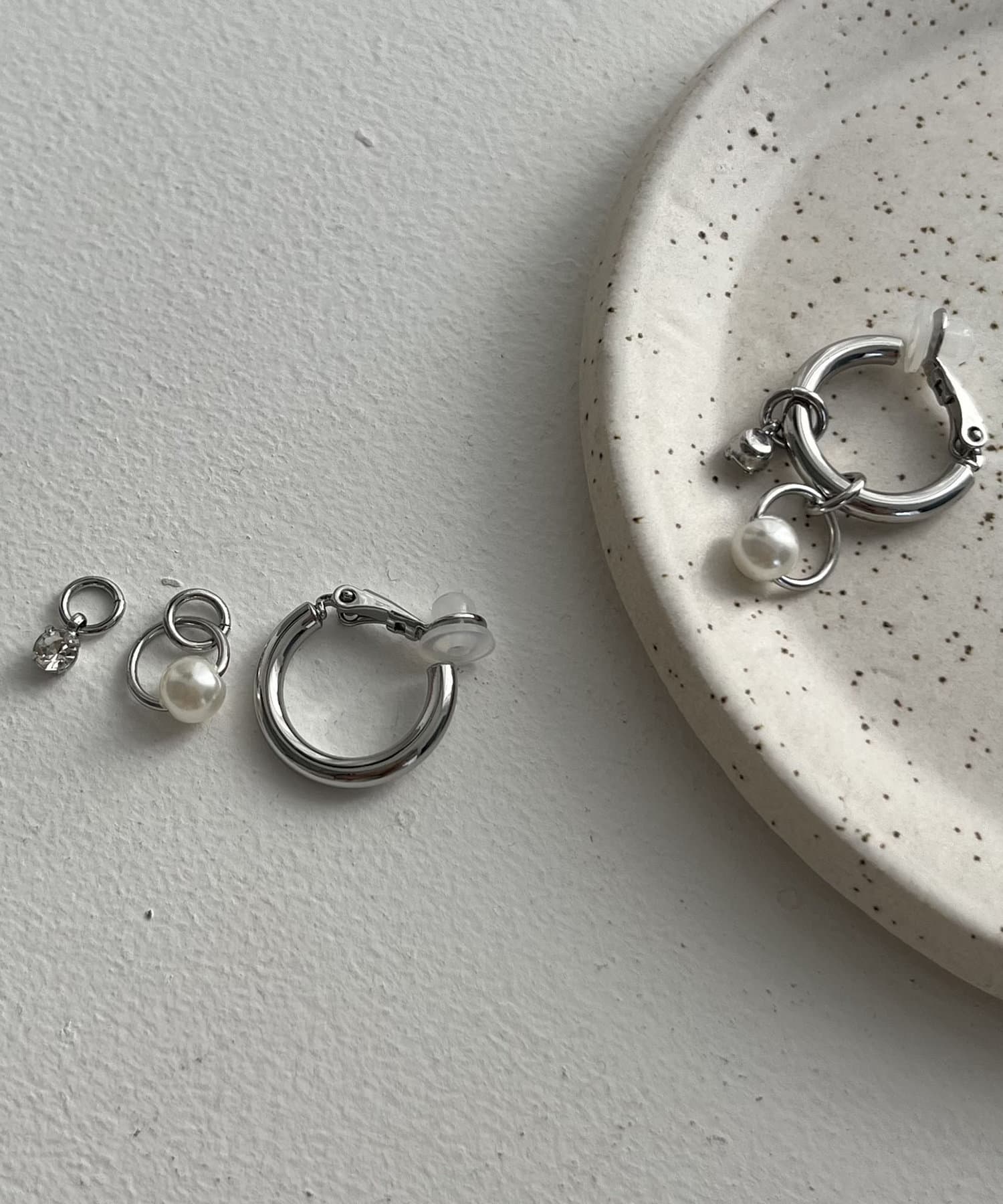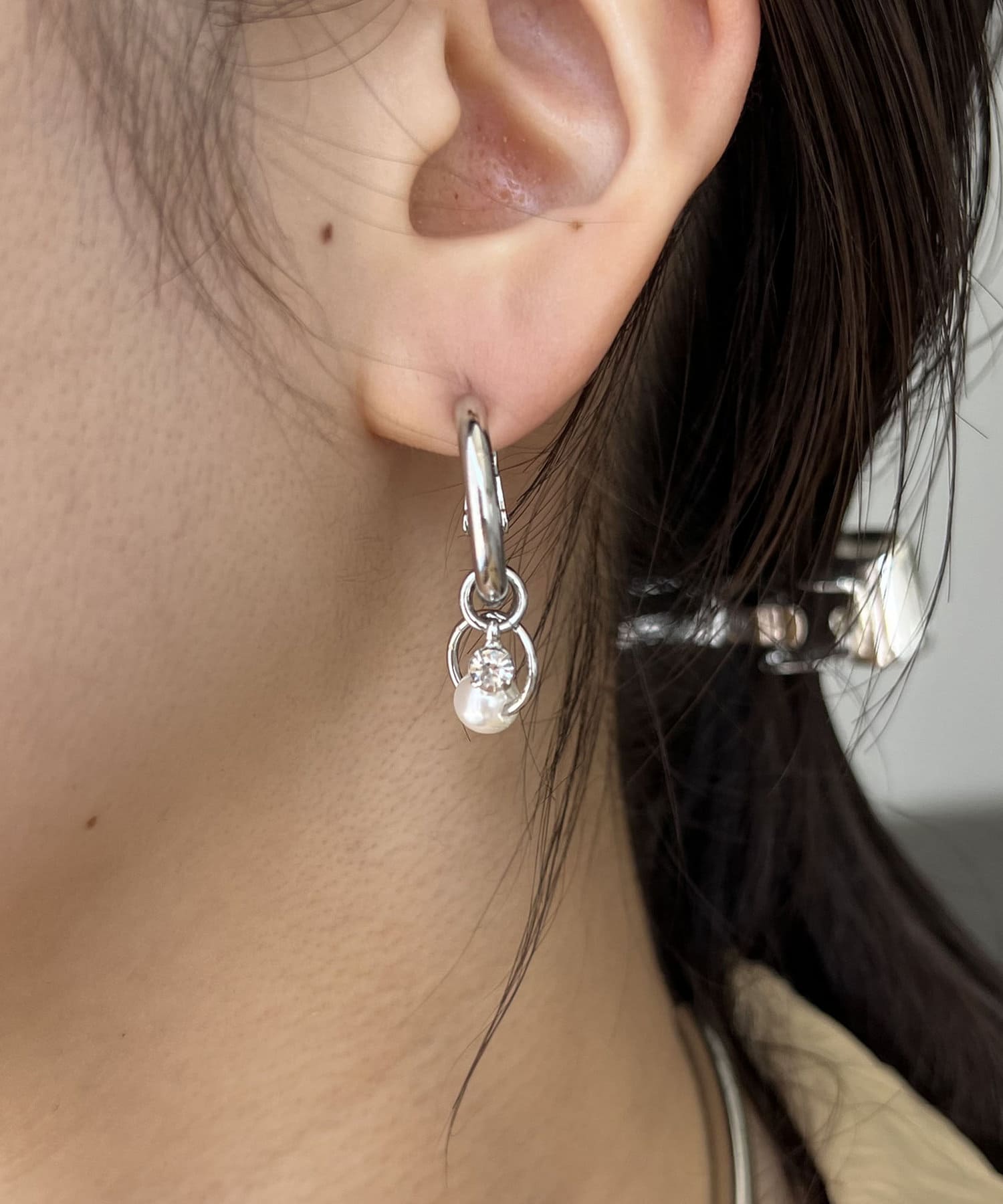 パールやビジューのチャームをフープに通して組み合わせたデザイン。