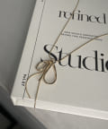 ニュアンス感のあるフォルムのリボンモチーフと、華奢なチェーンを組み合わせたデザイン。