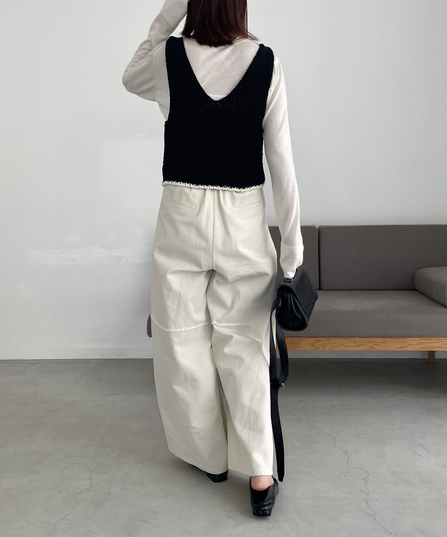 ・ワントーンでまとめたスタイリングにポイントでビスチェをプラスするのがおすすめ