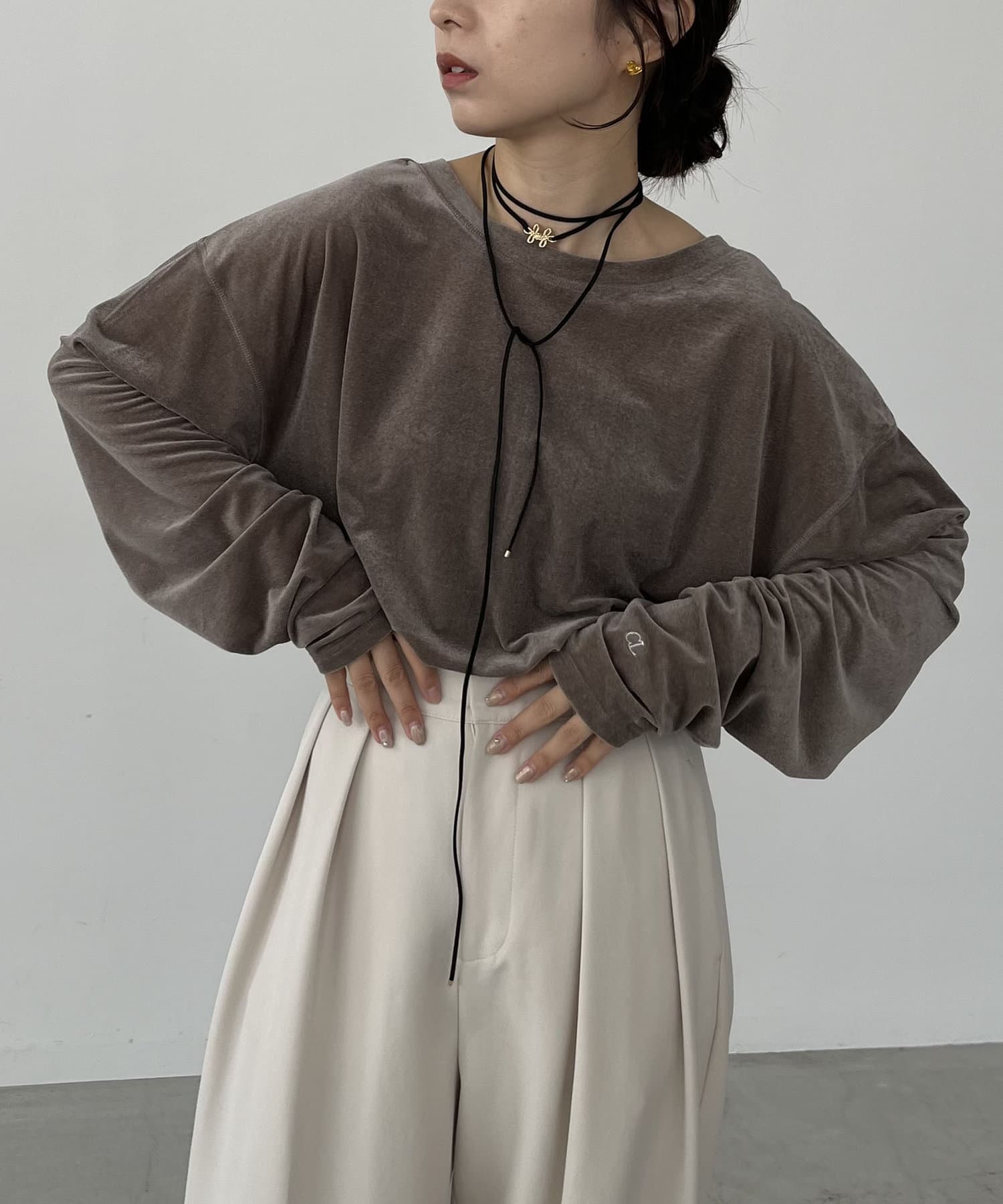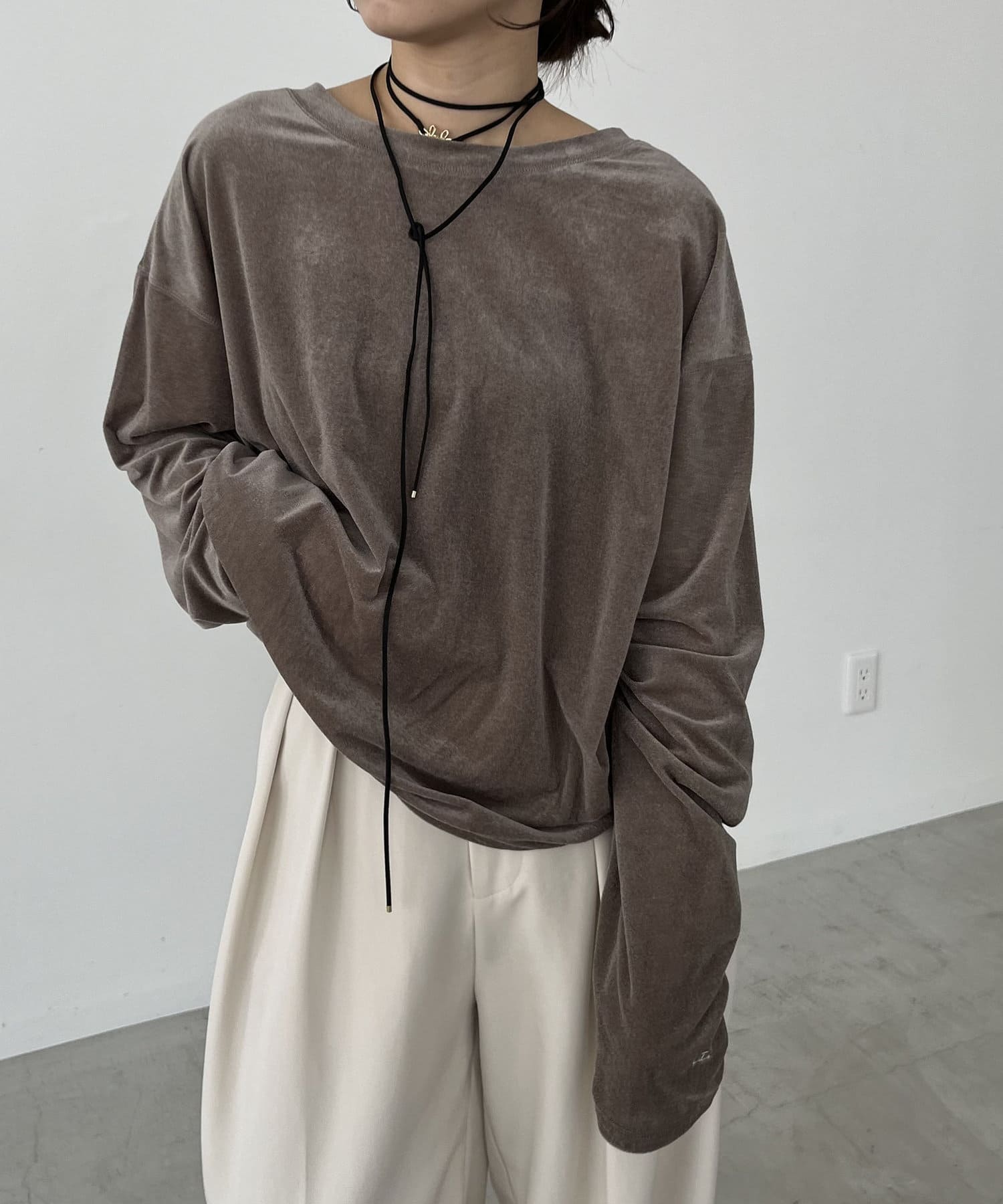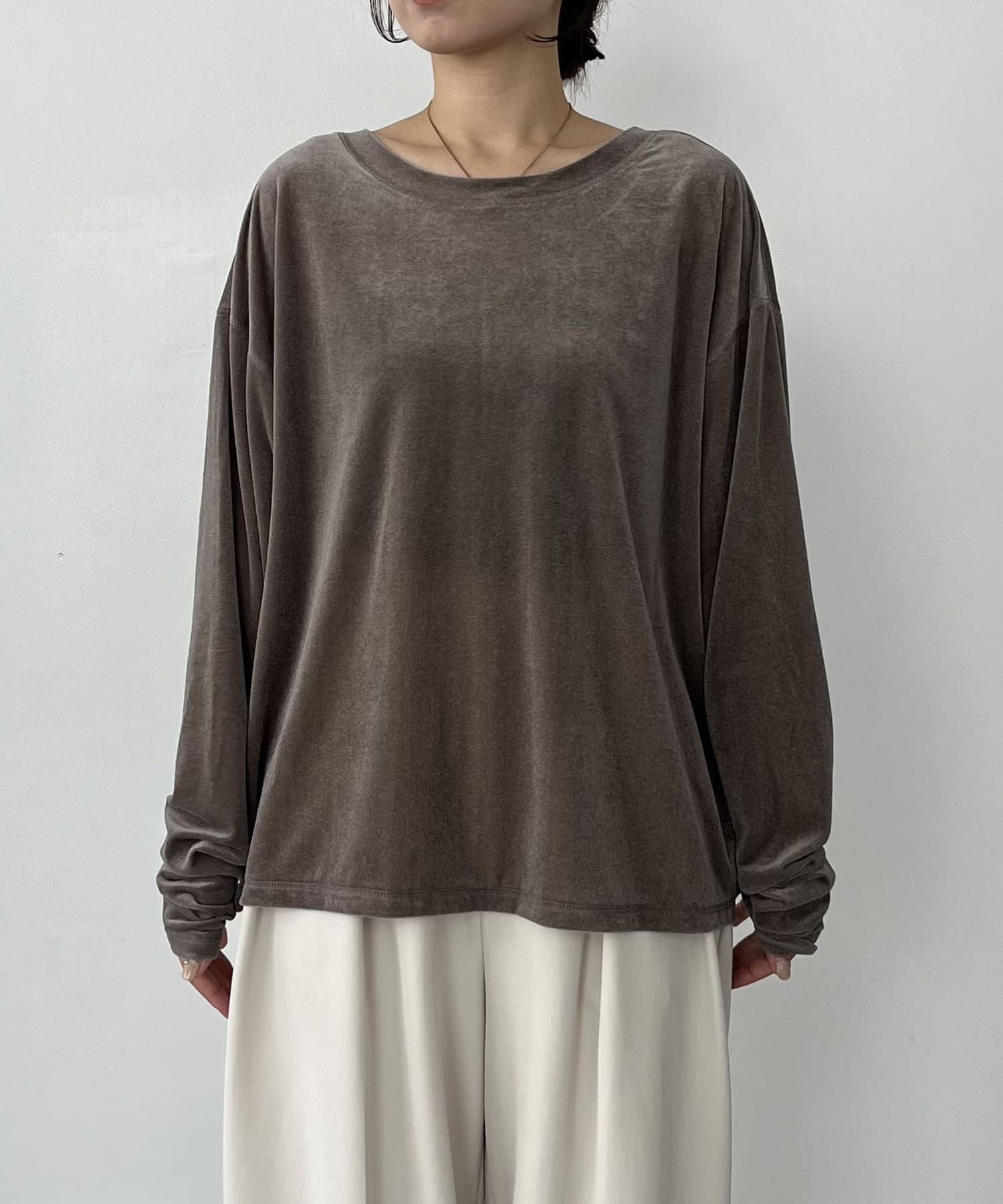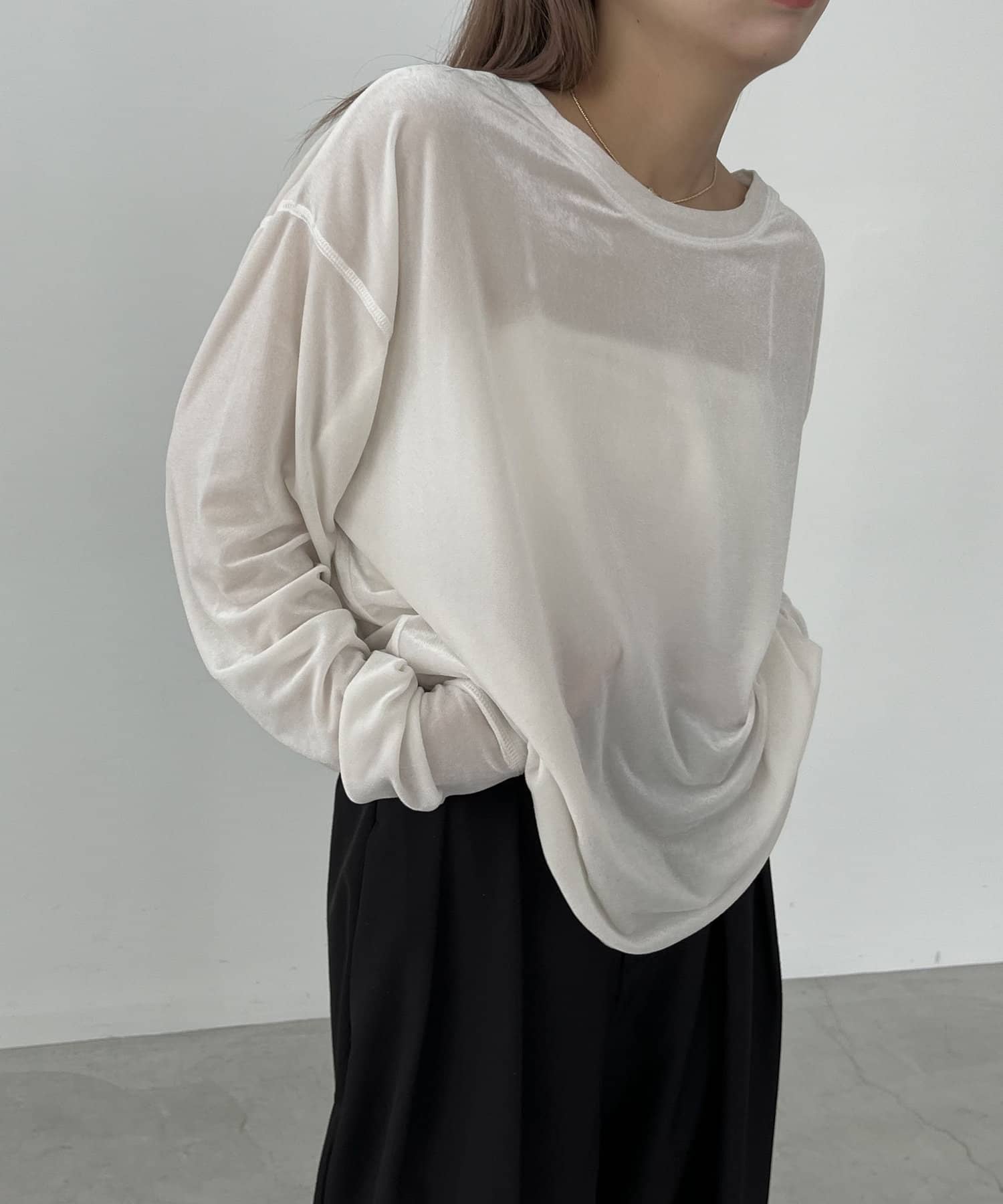 上品な質感が大人な印象のベロアロンT