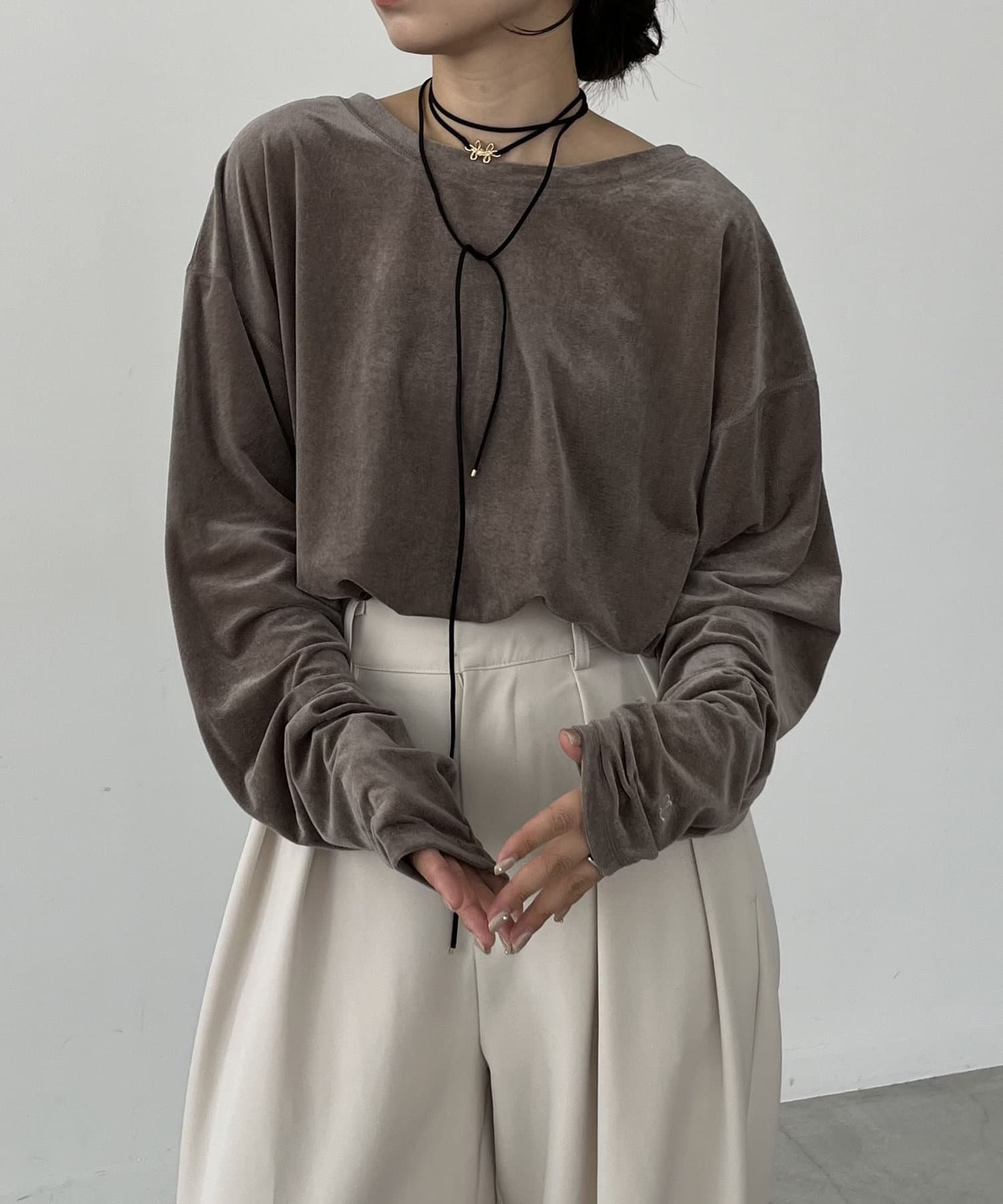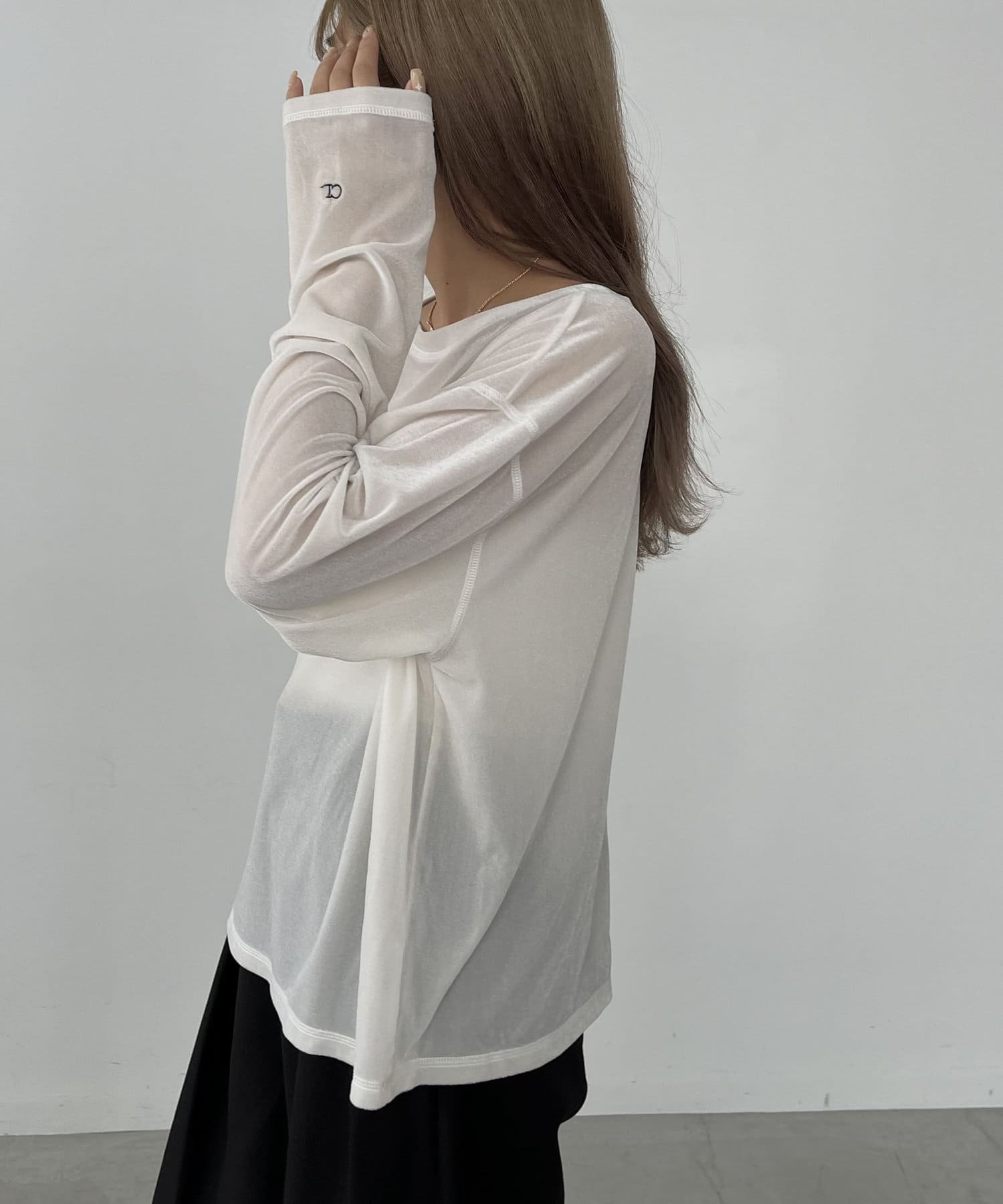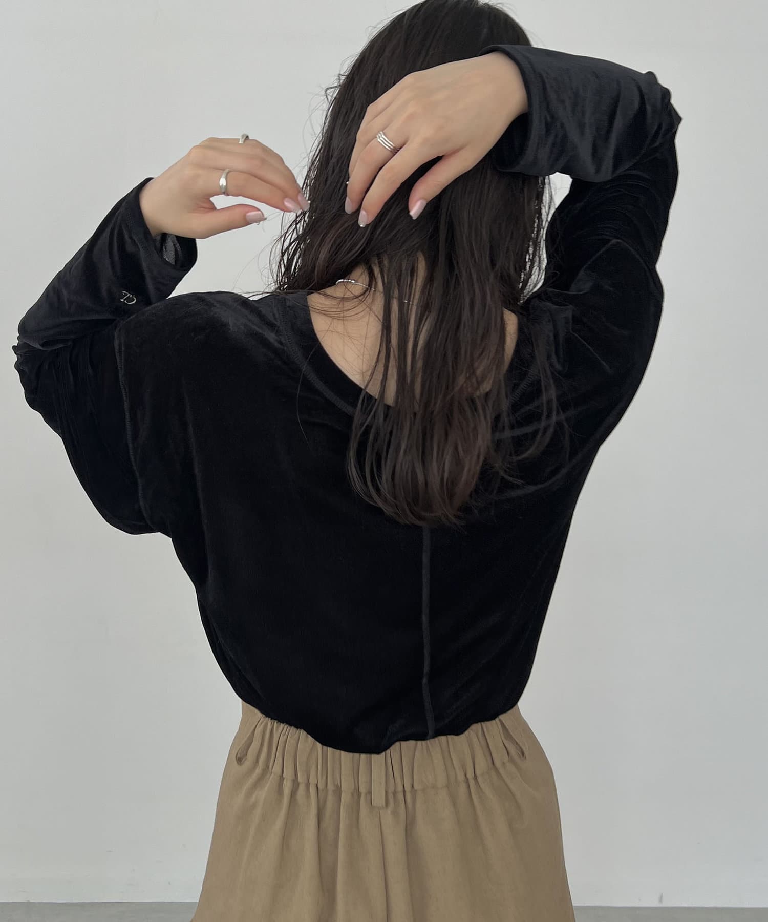 上品な質感が大人な印象のベロアロンT