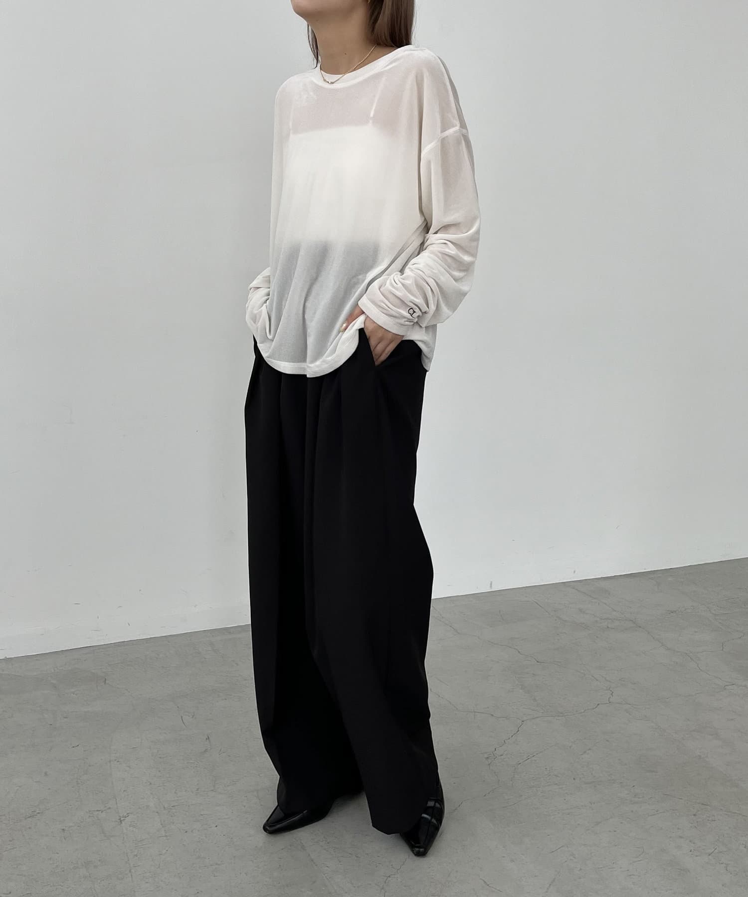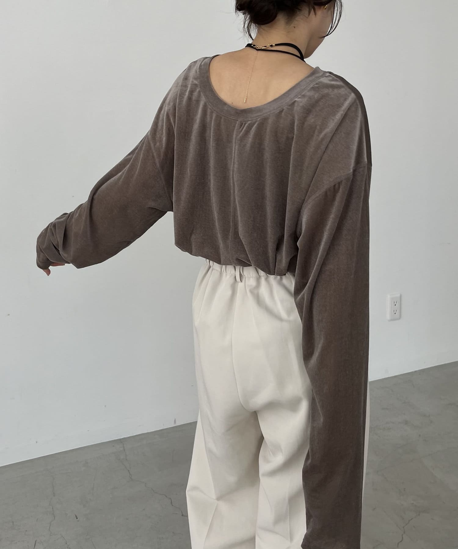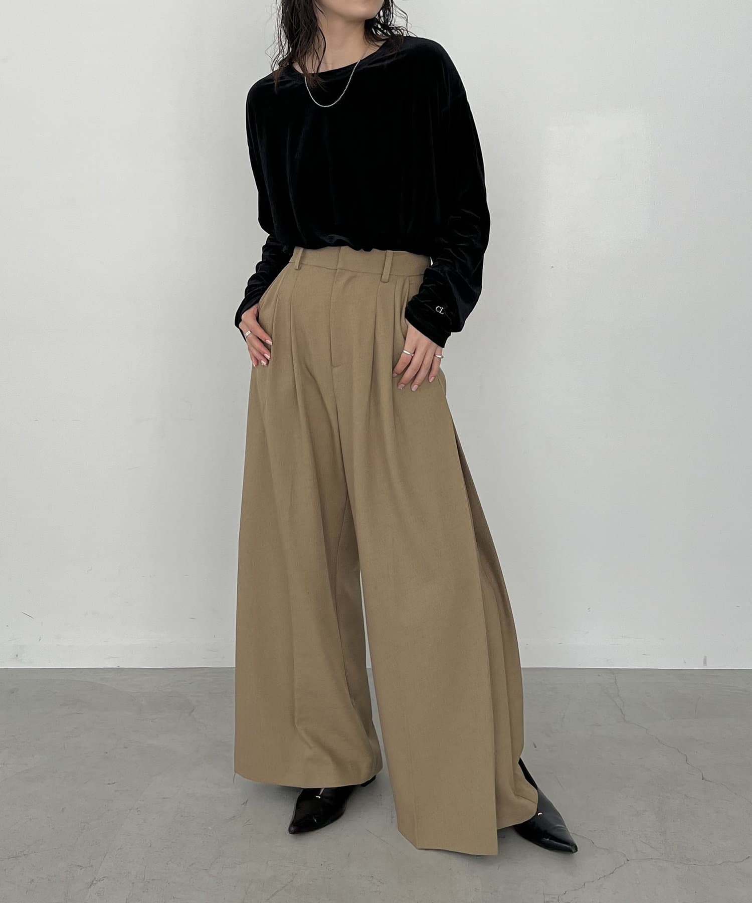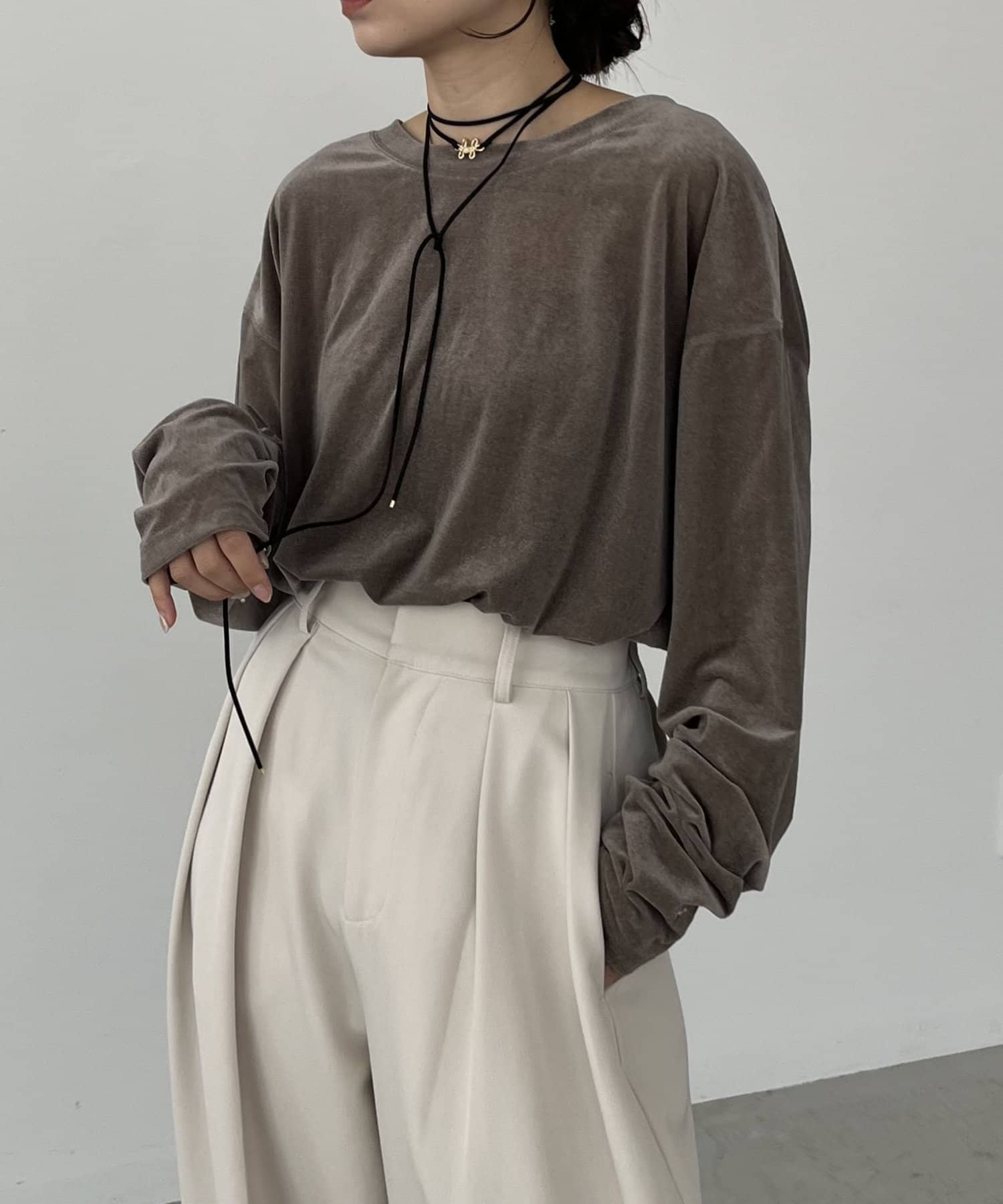 上品な質感が大人な印象のベロアロンT